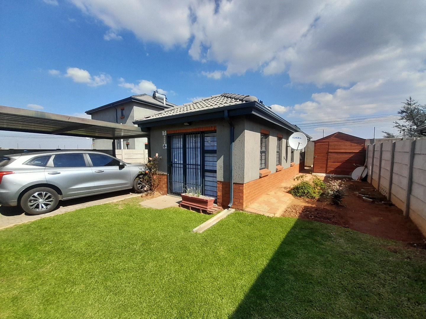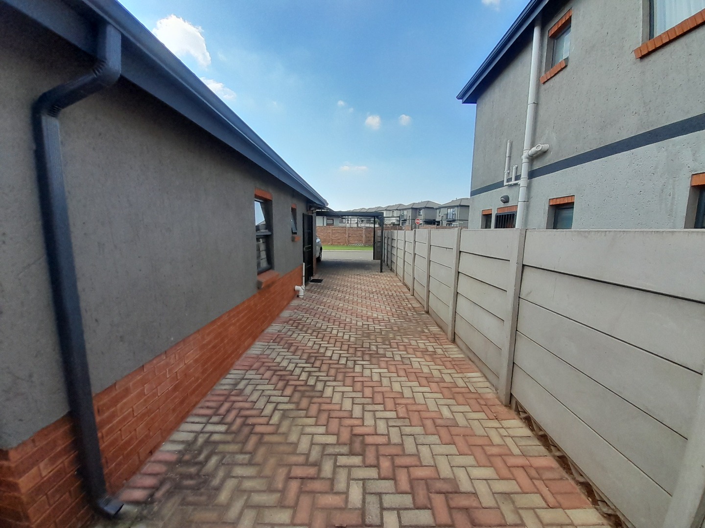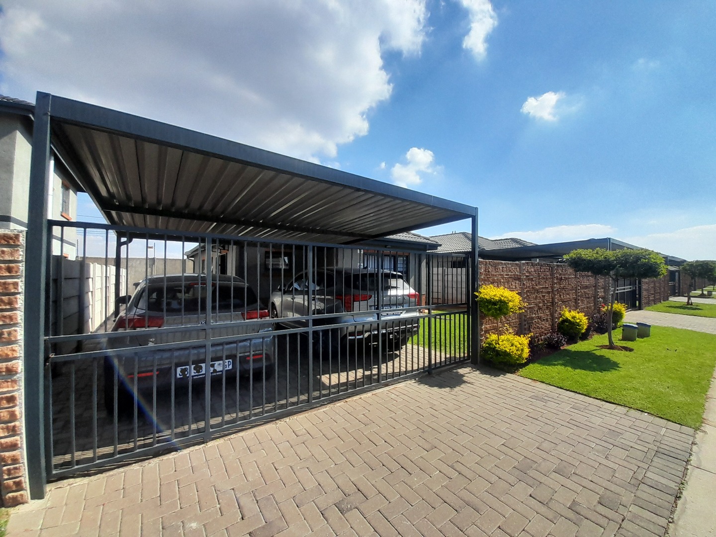 Discover this modern 3-bedroom, 2-bathroom home situated within a secure gated community in Albertsdal, Alberton. Boasting excellent kerb appeal, the property features a contemporary exterior, a secure gated entrance, and a paved driveway leading to a spacious covered carport with parking for three vehicles. The well-maintained front garden and sturdy perimeter walls enhance both privacy and security, setting a welcoming tone for this delightful residence. Step inside to find a comfortable lounge area, complete with durable tiled flooring and ample natural light, perfect for relaxation or entertaining. The modern kitchen is a highlight, equipped with sleek light wood-look cabinetry, light countertops, a built-in oven and hob, and space for a large refrigerator. This functional space ensures a seamless culinary experience. The home offers three well-proportioned bedrooms, providing comfortable private retreats. Two bathrooms serve the household, including a convenient en-suite bathroom, ensuring privacy and ease for residents. Each space is designed for practicality and comfort. Outside, enjoy a private, manageable garden with a paved patio area, ideal for outdoor seating and leisure. Additional storage is provided by a separate wooden shed. For enhanced energy efficiency, the property includes a solar water heater, contributing to lower utility costs. Located in the desirable Albertsdal area of Alberton, this home benefits from being part of a security estate with 24-hour security, offering peace of mind. The convenient location provides easy access to local amenities and transport routes. Key Features: * 3 Bedrooms, 2 Bathrooms (1 En-suite) * Modern Kitchen with Built-in Oven & Hob * Spacious Lounge Area * Covered Carport for 3 Vehicles * Private, Manageable Garden with Paved Patio * Secure Gated Community with 24-Hour Security * Solar Water Heater for Energy Efficiency * Additional Storage Shed