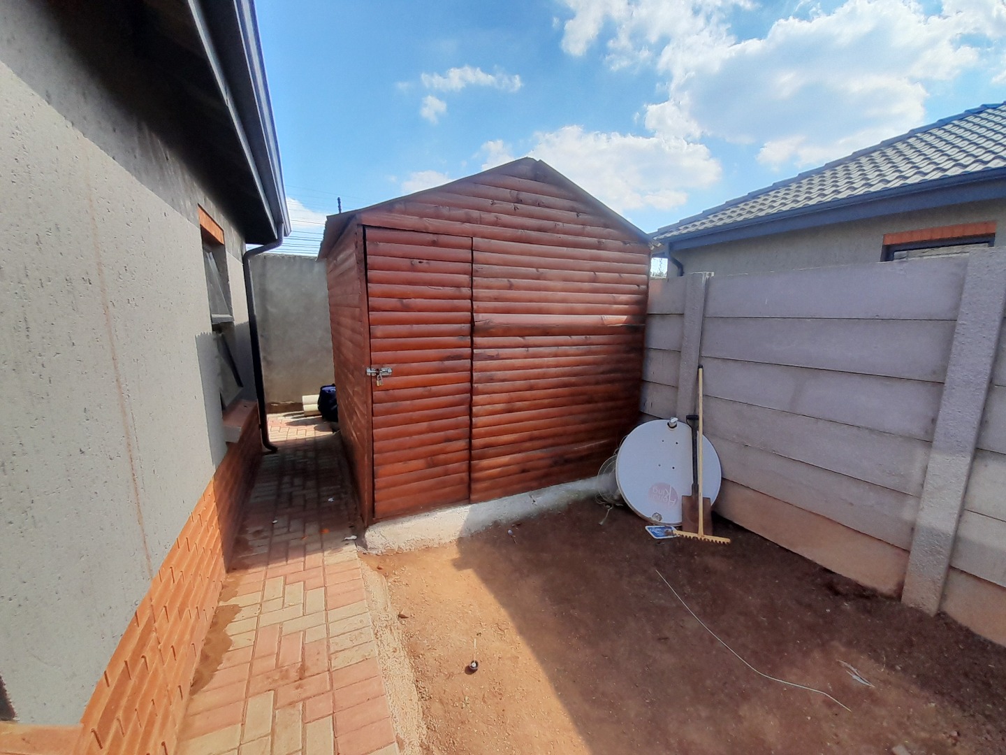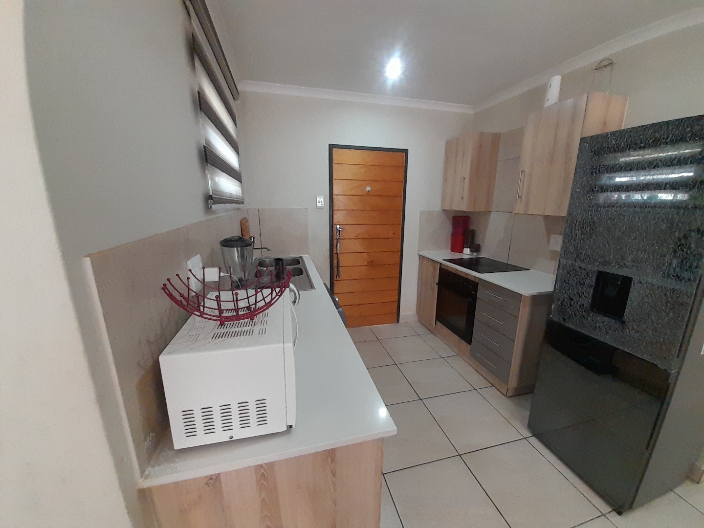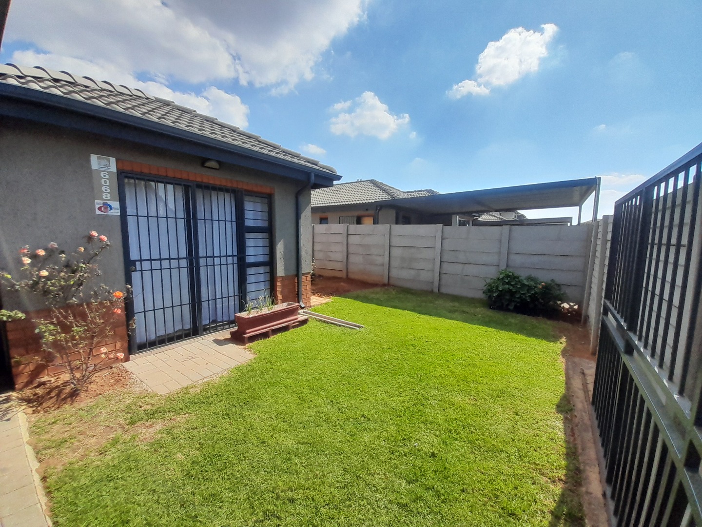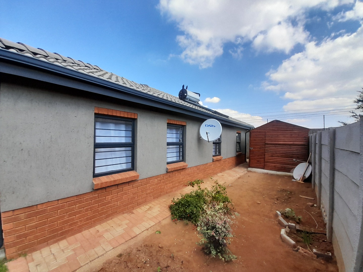 Discover this modern 3-bedroom, 2-bathroom home situated within a secure gated community in Albertsdal, Alberton. Boasting excellent kerb appeal, the property features a contemporary exterior, a secure gated entrance, and a paved driveway leading to a spacious covered carport with parking for three vehicles. The well-maintained front garden and sturdy perimeter walls enhance both privacy and security, setting a welcoming tone for this delightful residence. Step inside to find a comfortable lounge area, complete with durable tiled flooring and ample natural light, perfect for relaxation or entertaining. The modern kitchen is a highlight, equipped with sleek light wood-look cabinetry, light countertops, a built-in oven and hob, and space for a large refrigerator. This functional space ensures a seamless culinary experience. The home offers three well-proportioned bedrooms, providing comfortable private retreats. Two bathrooms serve the household, including a convenient en-suite bathroom, ensuring privacy and ease for residents. Each space is designed for practicality and comfort. Outside, enjoy a private, manageable garden with a paved patio area, ideal for outdoor seating and leisure. Additional storage is provided by a separate wooden shed. For enhanced energy efficiency, the property includes a solar water heater, contributing to lower utility costs. Located in the desirable Albertsdal area of Alberton, this home benefits from being part of a security estate with 24-hour security, offering peace of mind. The convenient location provides easy access to local amenities and transport routes. Key Features: * 3 Bedrooms, 2 Bathrooms (1 En-suite) * Modern Kitchen with Built-in Oven & Hob * Spacious Lounge Area * Covered Carport for 3 Vehicles * Private, Manageable Garden with Paved Patio * Secure Gated Community with 24-Hour Security * Solar Water Heater for Energy Efficiency * Additional Storage Shed