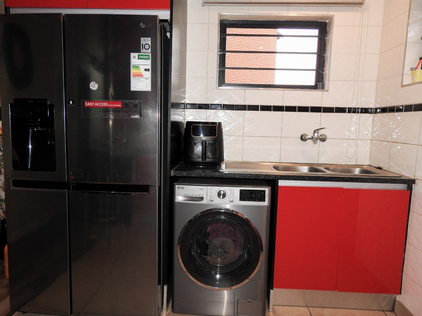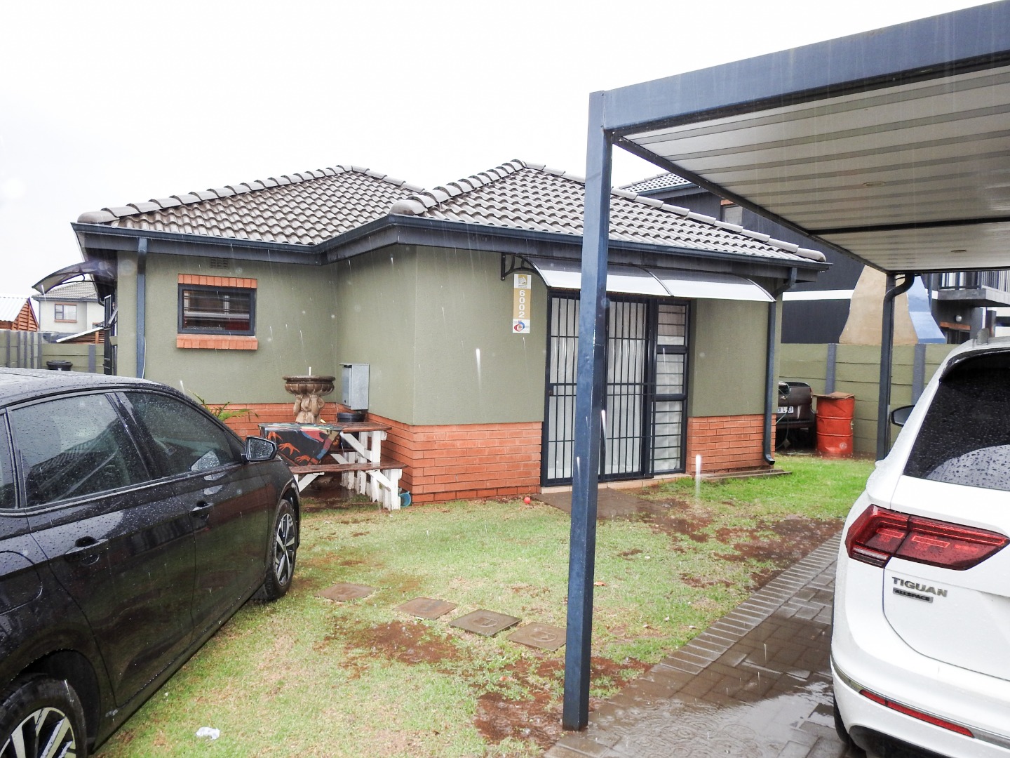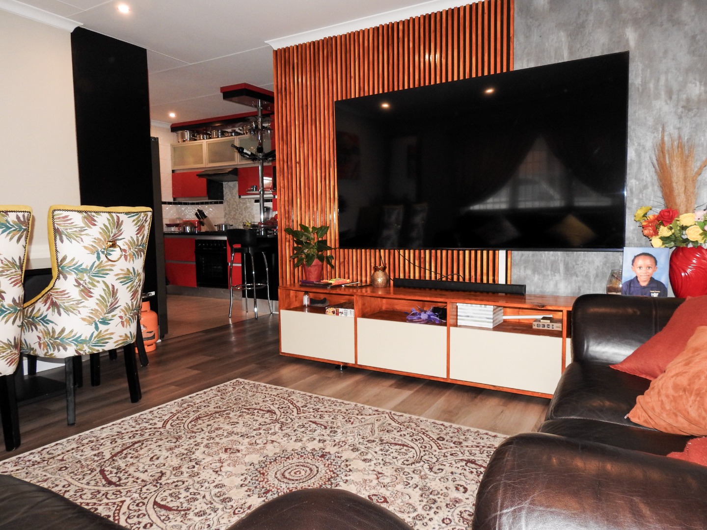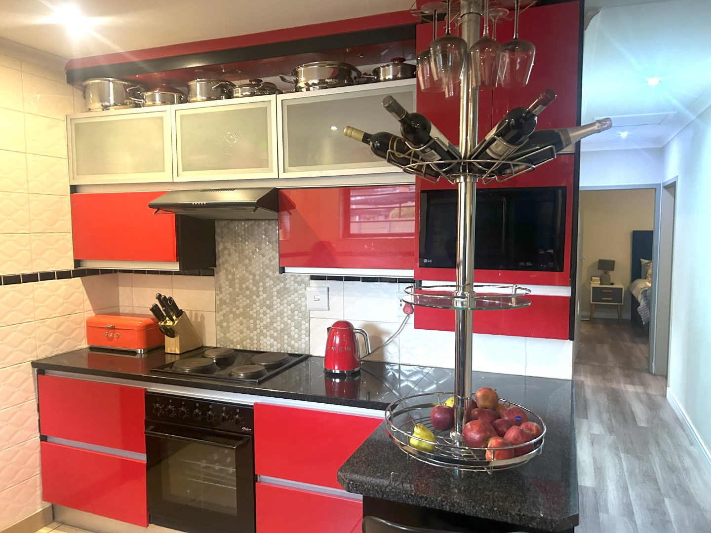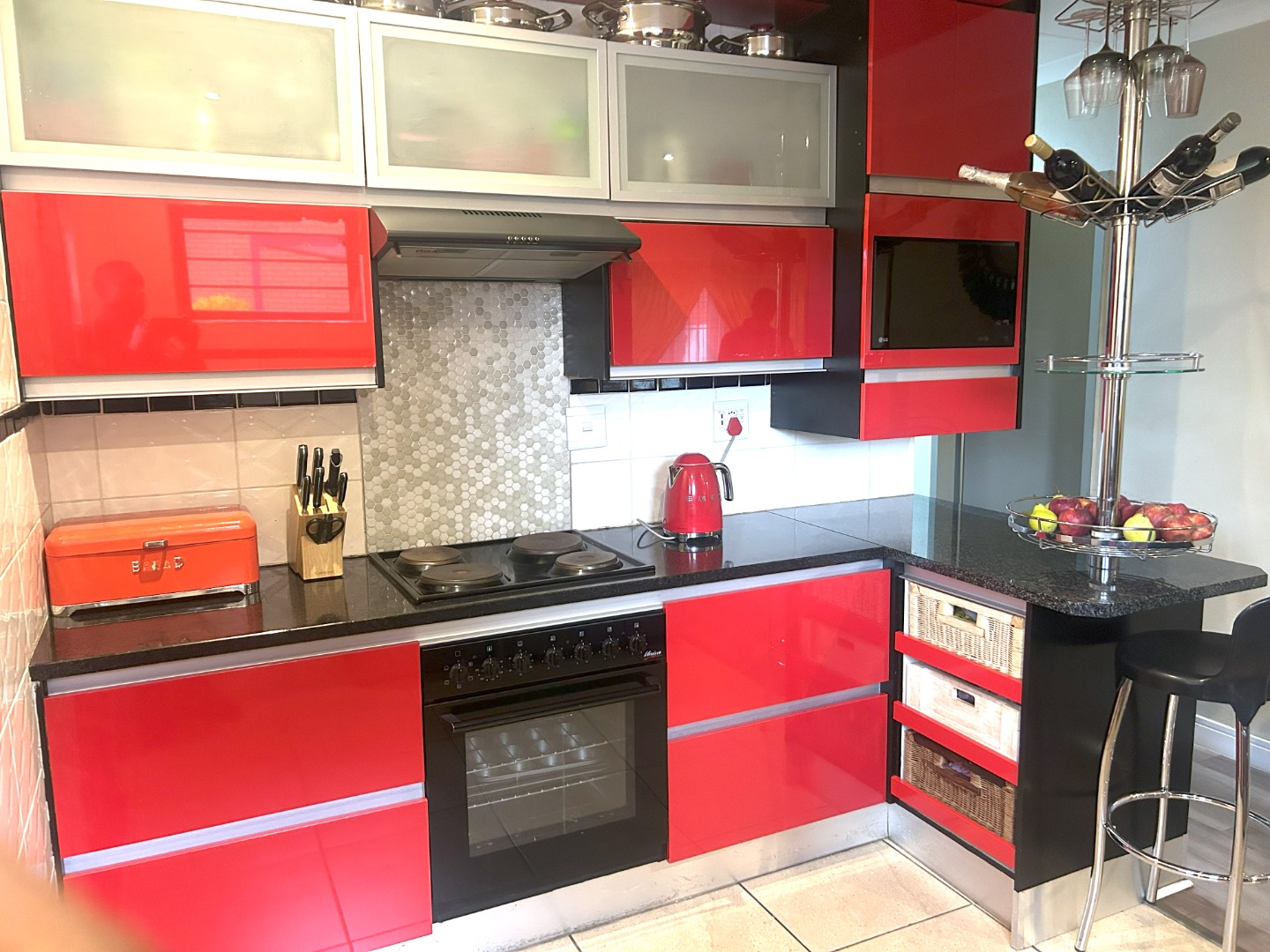 Discover modern living in this inviting 4-bedroom, 2.5-bathroom home, ideally situated within a secure estate in Albertsdal, Alberton. This property offers a contemporary lifestyle with a focus on comfort and security, perfect for families seeking a well-appointed residence in a desirable South African suburb. The kerb appeal is enhanced by its presence within a well-maintained security estate, providing peace of mind. The heart of this home is its vibrant, modern kitchen, designed for both functionality and style. It features striking red high-gloss cabinetry, complemented by sleek black granite countertops and a stylish mosaic tile backsplash. Integrated appliances, including an oven, hob, and extractor fan, ensure a streamlined cooking experience. The kitchen also boasts frosted glass upper cabinets, practical pull-out basket storage, a double sink, and accommodates a large side-by-side refrigerator and a washing machine, as seen in the photos. A comfortable lounge provides a dedicated space for relaxation and entertainment. Accommodation comprises four well-proportioned bedrooms, offering ample space for family members or guests. The master bedroom benefits from a private en-suite bathroom, providing a personal sanctuary. An additional 1.5 bathrooms serve the remaining bedrooms and guests, ensuring convenience for all residents. Externally, the property features a generous Erf size of 373 sqm and a floor size of 120 sqm, with ample paved parking for up to four vehicles. Security is paramount within this estate, offering 24-hour security, a security post, access gate, and a security gate, with the property itself being totally walled. Furthermore, this home embraces sustainability with the inclusion of a battery inverter and solar panels, contributing to energy efficiency and reduced utility costs. Albertsdal, located in Alberton, is a growing residential area known for its community feel and convenient access to local amenities, schools, and major transport routes, making it an attractive location for homeowners. Key Features: * 4 Bedrooms, 2.5 Bathrooms (1 En-suite) * Modern Kitchen with Red High-Gloss Cabinetry * Granite Countertops & Built-in Appliances * Spacious Lounge Area * 4 Parking Spaces * Security Estate with 24-Hour Security * Battery Inverter and Solar Panels * Erf Size: 373 sqm, Floor Size: 120 sqm * Totally Walled Property