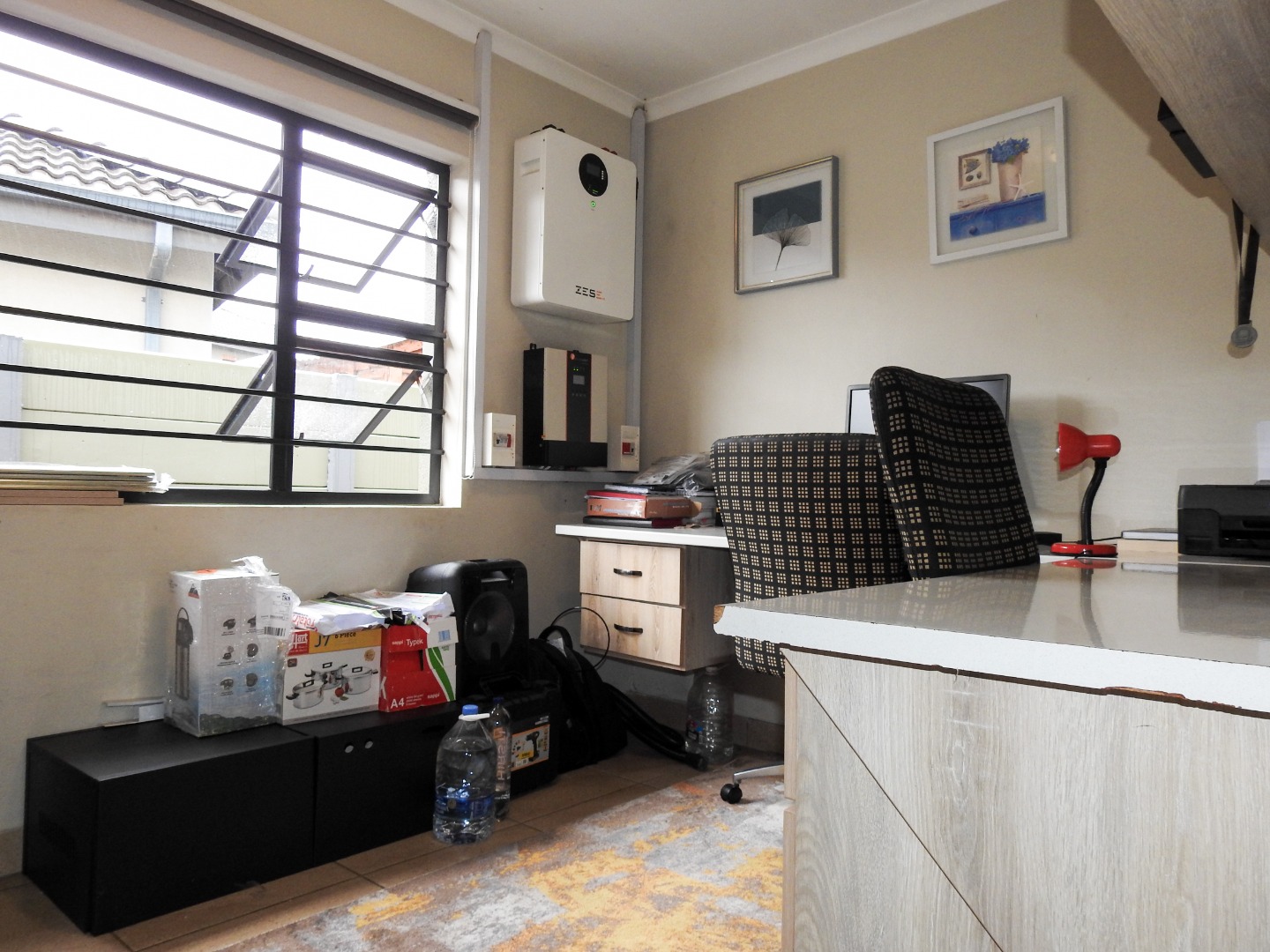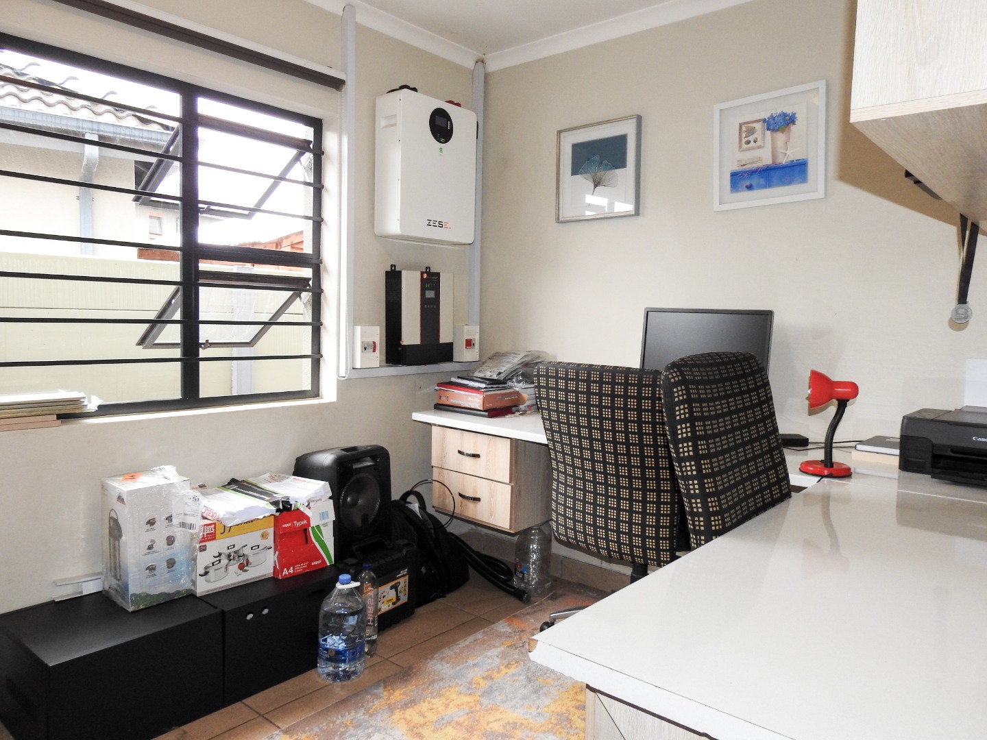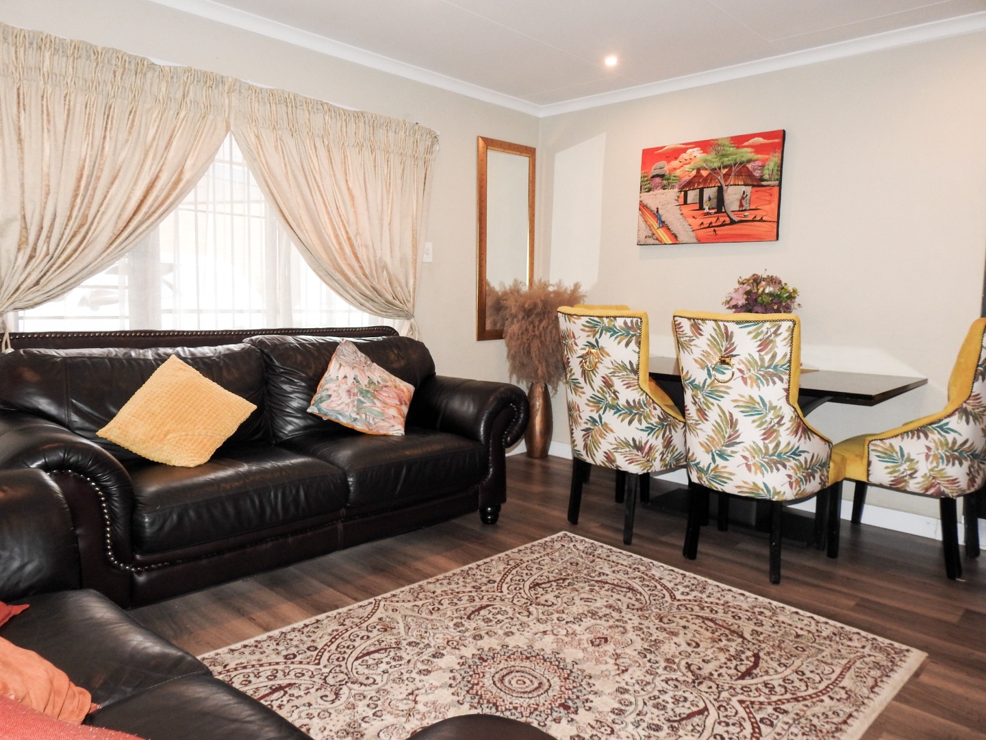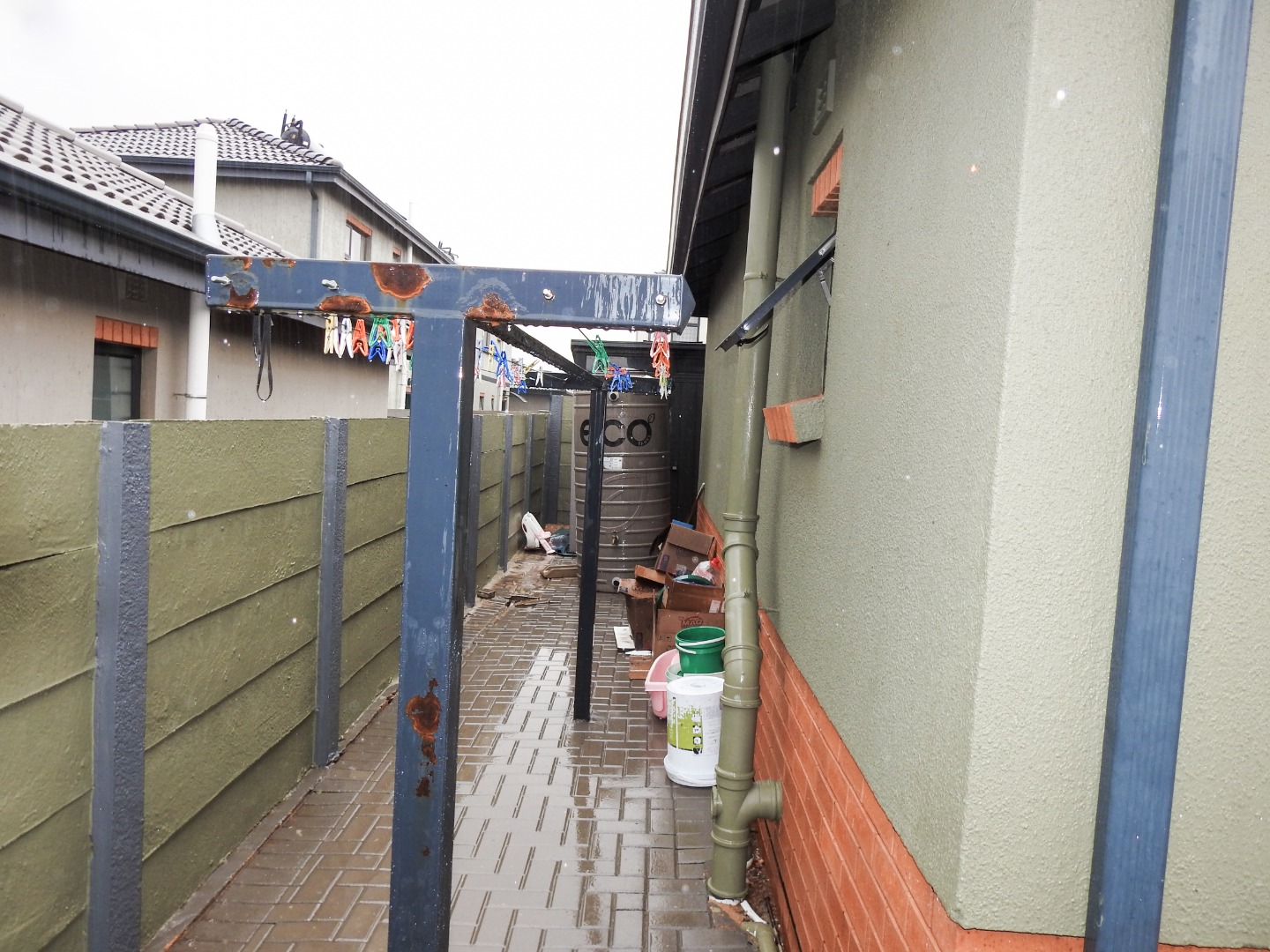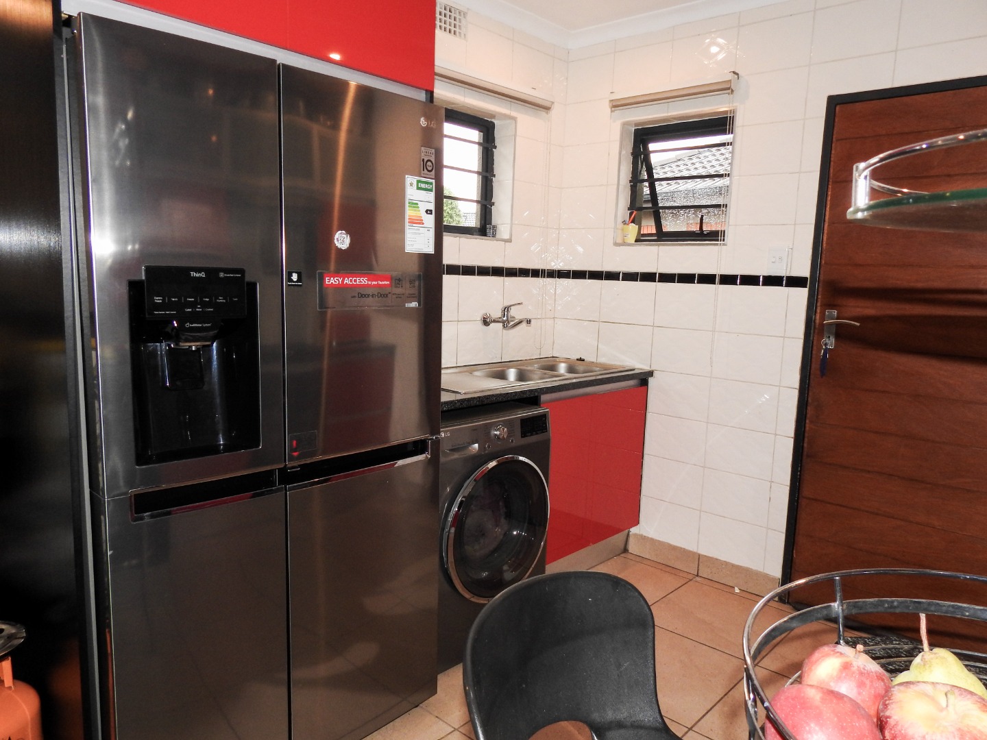 Discover modern living in this inviting 4-bedroom, 2.5-bathroom home, ideally situated within a secure estate in Albertsdal, Alberton. This property offers a contemporary lifestyle with a focus on comfort and security, perfect for families seeking a well-appointed residence in a desirable South African suburb. The kerb appeal is enhanced by its presence within a well-maintained security estate, providing peace of mind. The heart of this home is its vibrant, modern kitchen, designed for both functionality and style. It features striking red high-gloss cabinetry, complemented by sleek black granite countertops and a stylish mosaic tile backsplash. Integrated appliances, including an oven, hob, and extractor fan, ensure a streamlined cooking experience. The kitchen also boasts frosted glass upper cabinets, practical pull-out basket storage, a double sink, and accommodates a large side-by-side refrigerator and a washing machine, as seen in the photos. A comfortable lounge provides a dedicated space for relaxation and entertainment. Accommodation comprises four well-proportioned bedrooms, offering ample space for family members or guests. The master bedroom benefits from a private en-suite bathroom, providing a personal sanctuary. An additional 1.5 bathrooms serve the remaining bedrooms and guests, ensuring convenience for all residents. Externally, the property features a generous Erf size of 373 sqm and a floor size of 120 sqm, with ample paved parking for up to four vehicles. Security is paramount within this estate, offering 24-hour security, a security post, access gate, and a security gate, with the property itself being totally walled. Furthermore, this home embraces sustainability with the inclusion of a battery inverter and solar panels, contributing to energy efficiency and reduced utility costs. Albertsdal, located in Alberton, is a growing residential area known for its community feel and convenient access to local amenities, schools, and major transport routes, making it an attractive location for homeowners. Key Features: * 4 Bedrooms, 2.5 Bathrooms (1 En-suite) * Modern Kitchen with Red High-Gloss Cabinetry * Granite Countertops & Built-in Appliances * Spacious Lounge Area * 4 Parking Spaces * Security Estate with 24-Hour Security * Battery Inverter and Solar Panels * Erf Size: 373 sqm, Floor Size: 120 sqm * Totally Walled Property