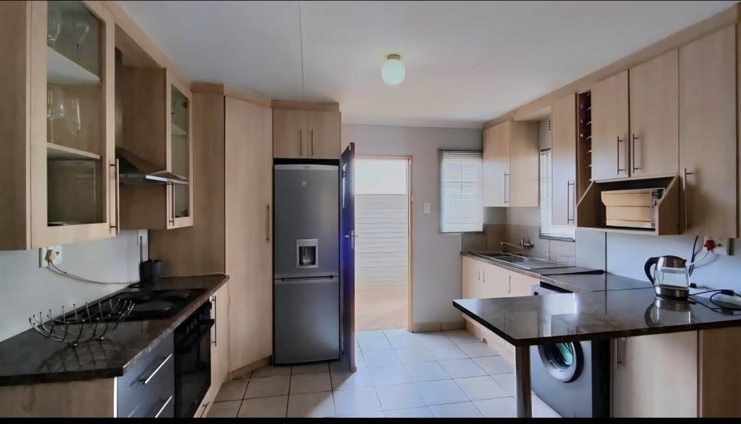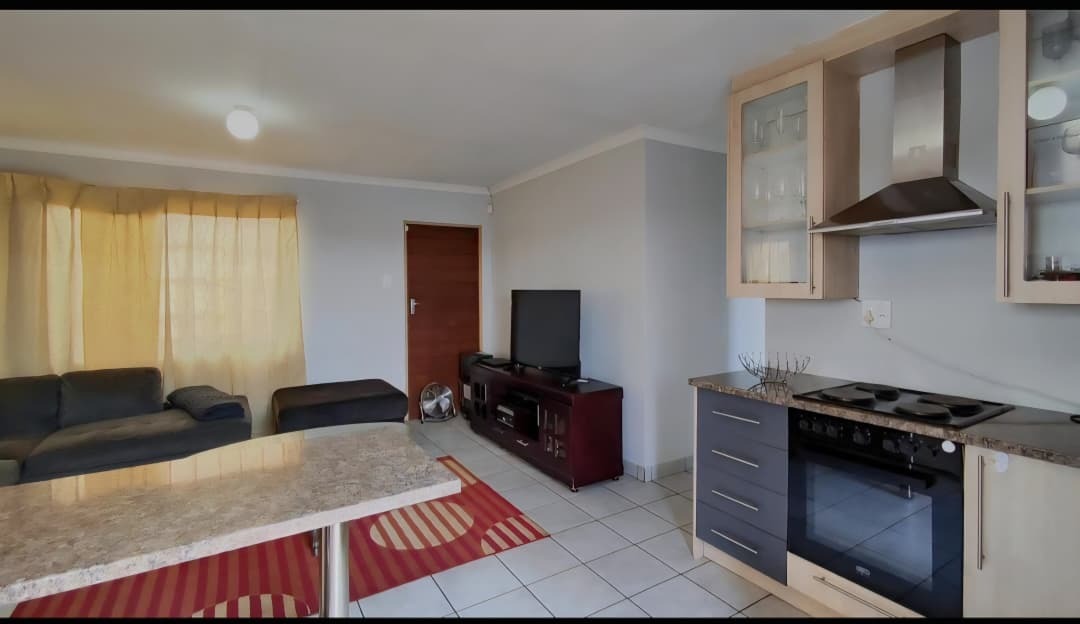 Discover modern living in this charming 3-bedroom, 2-bathroom residence located in the vibrant suburban community of Sky City, Alberton. This property immediately impresses with its contemporary olive green exterior, complemented by crisp white trim, and a fully fenced perimeter ensuring privacy and security. Extensive paving provides ample low-maintenance outdoor space and convenient parking for two vehicles, enhancing the home's kerb appeal.