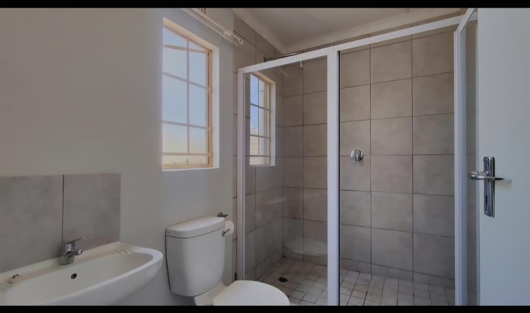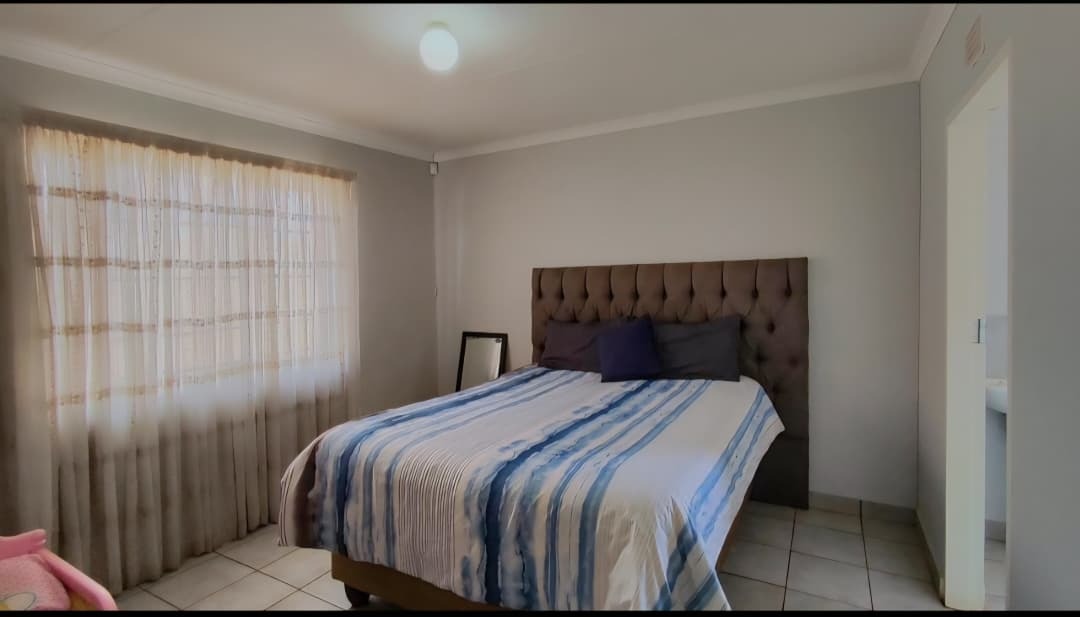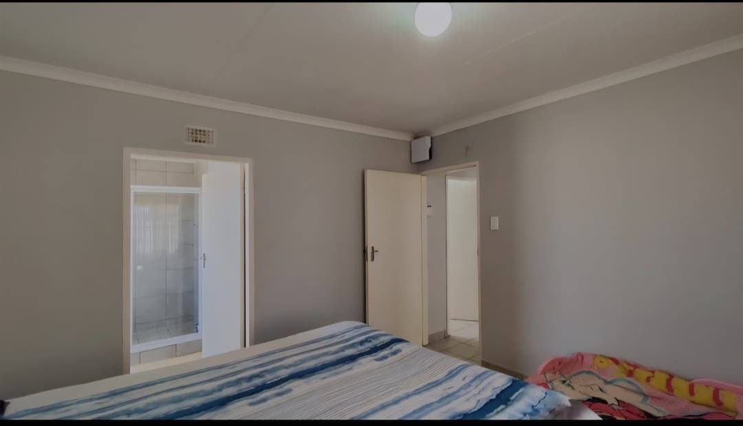The home offers three comfortable bedrooms, each featuring neutral light grey walls, tiled flooring, and good natural light, creating serene personal spaces. Security bars on the windows provide peace of mind. The two well-appointed bathrooms include one with a modern pedestal sink and wall-mounted storage, and another with a clean white bathtub, both designed for practicality and comfort. Further enhancing this property's appeal are its security features, including security bars on doors and windows, and a satellite dish for entertainment. The inclusion of solar panels and fibre connectivity speaks to modern convenience and potential energy efficiency. Pets are allowed, making this a welcoming home for the entire family.