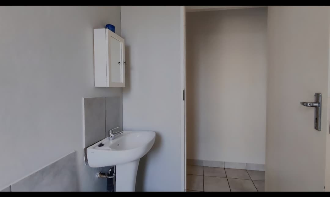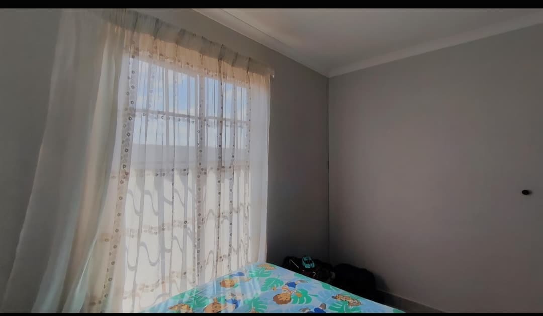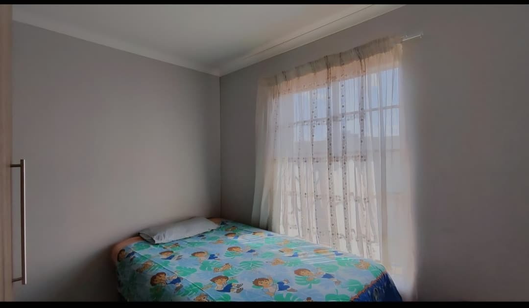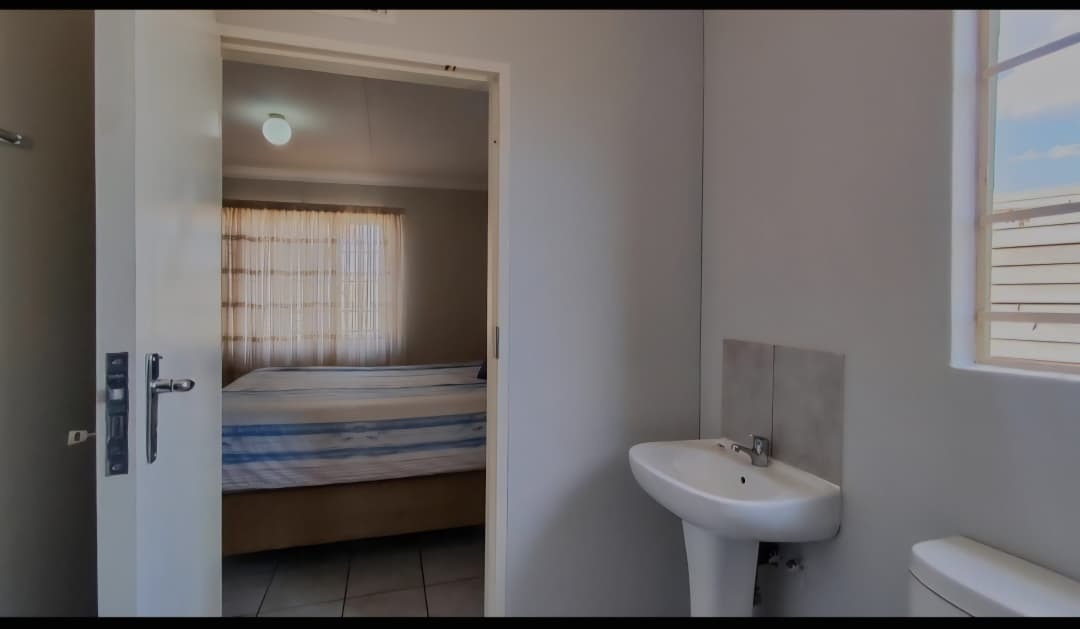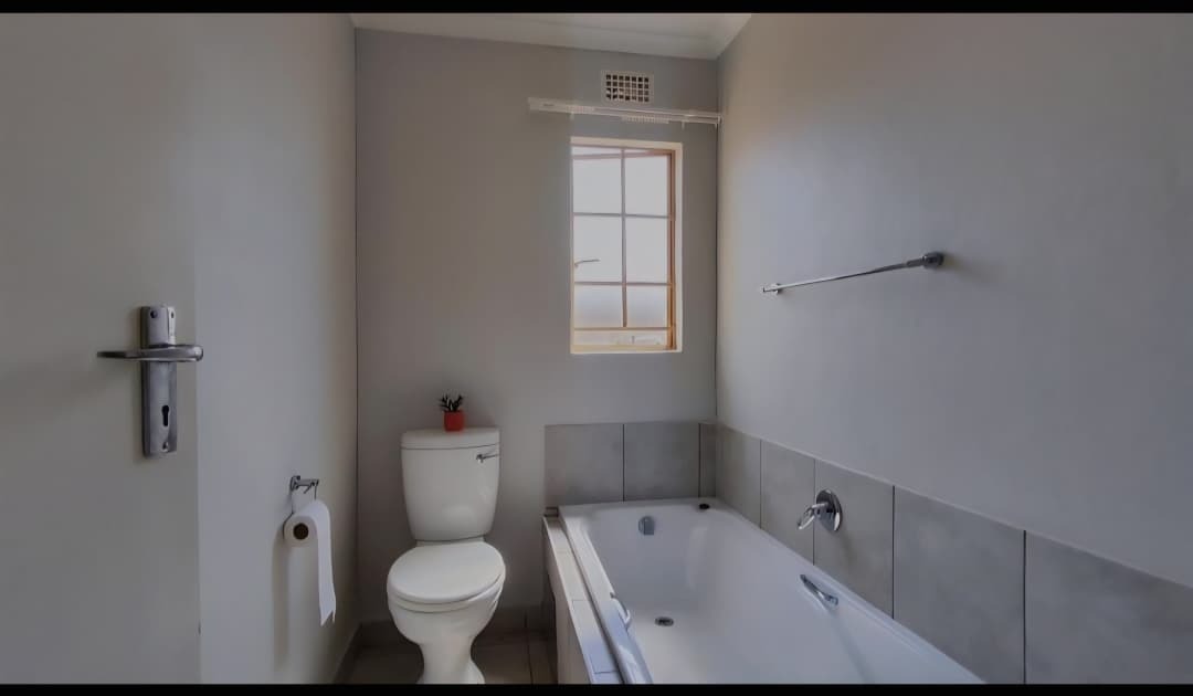 The home offers three comfortable bedrooms, each featuring neutral light grey walls, tiled flooring, and good natural light, creating serene personal spaces. Security bars on the windows provide peace of mind. The two well-appointed bathrooms include one with a modern pedestal sink and wall-mounted storage, and another with a clean white bathtub, both designed for practicality and comfort. Further enhancing this property's appeal are its security features, including security bars on doors and windows, and a satellite dish for entertainment. The inclusion of solar panels and fibre connectivity speaks to modern convenience and potential energy efficiency. Pets are allowed, making this a welcoming home for the entire family.