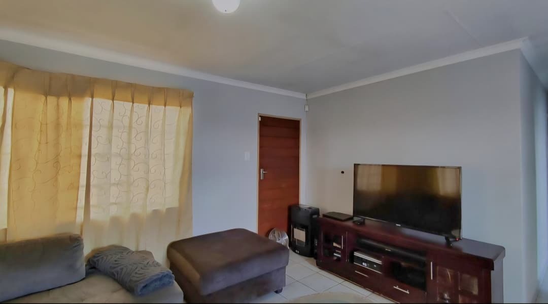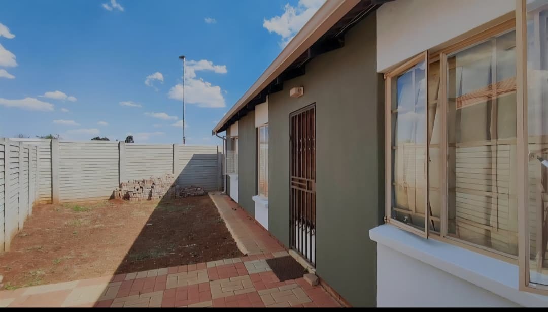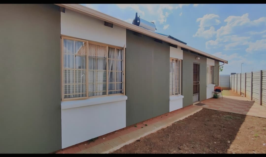 Discover modern living in this charming 3-bedroom, 2-bathroom residence located in the vibrant suburban community of Sky City, Alberton. This property immediately impresses with its contemporary olive green exterior, complemented by crisp white trim, and a fully fenced perimeter ensuring privacy and security. Extensive paving provides ample low-maintenance outdoor space and convenient parking for two vehicles, enhancing the home's kerb appeal.