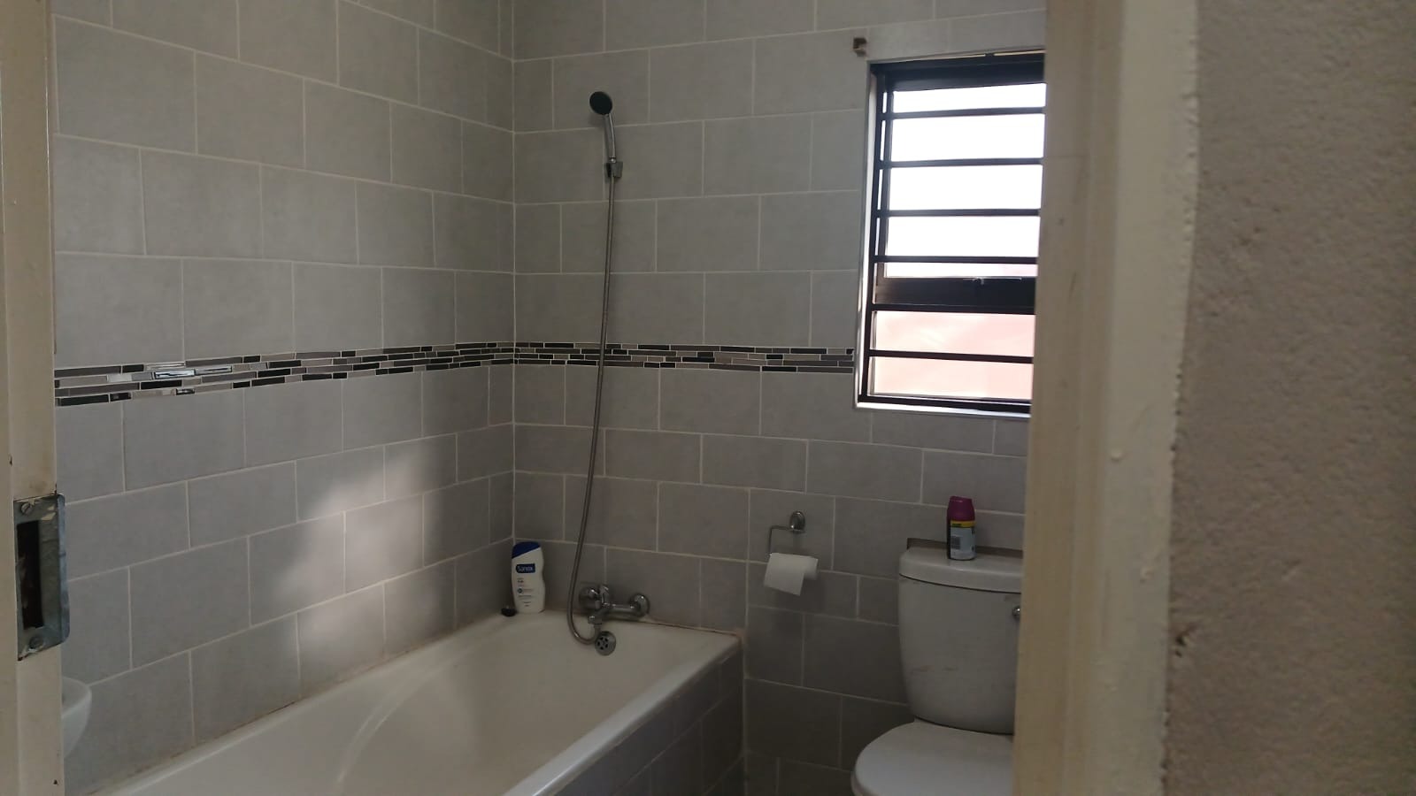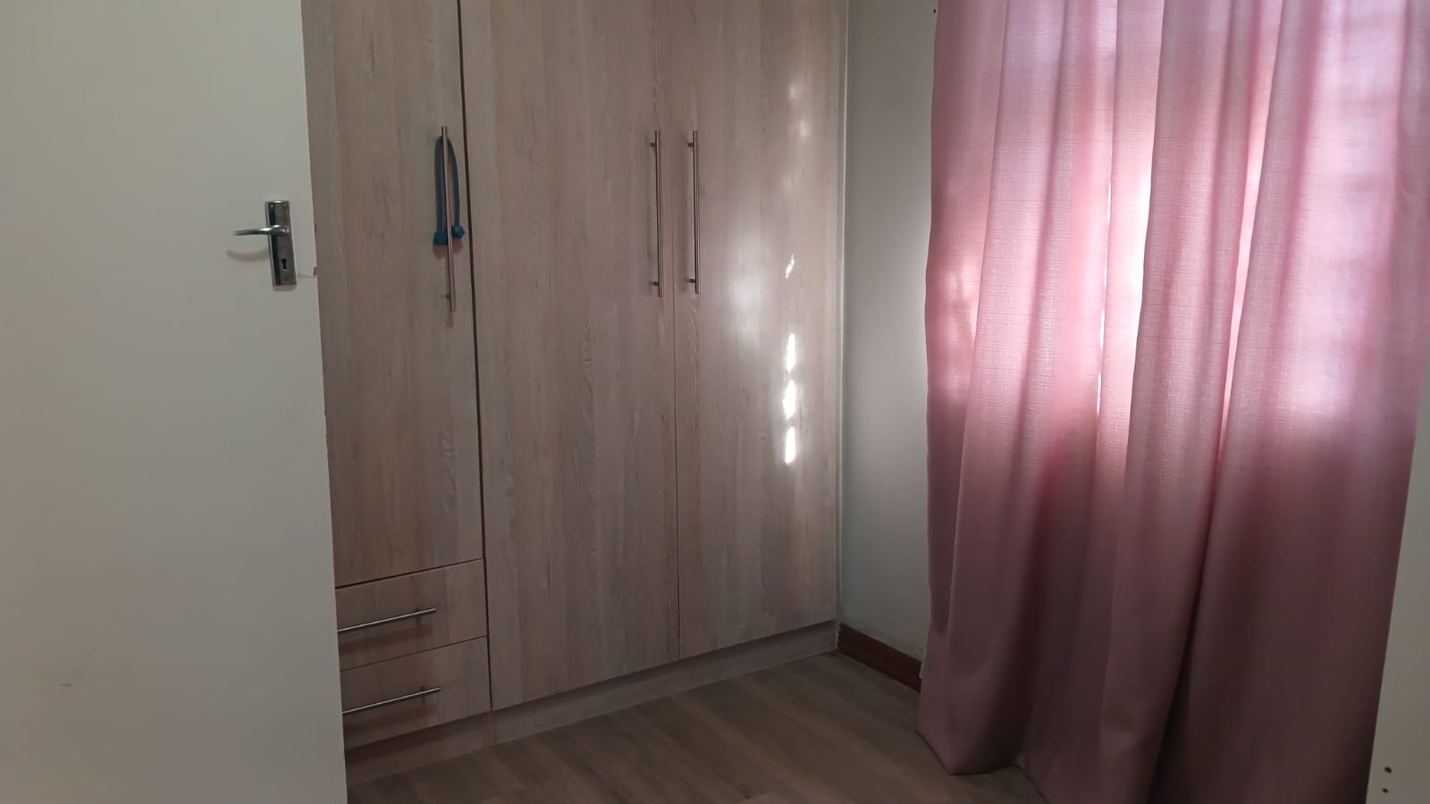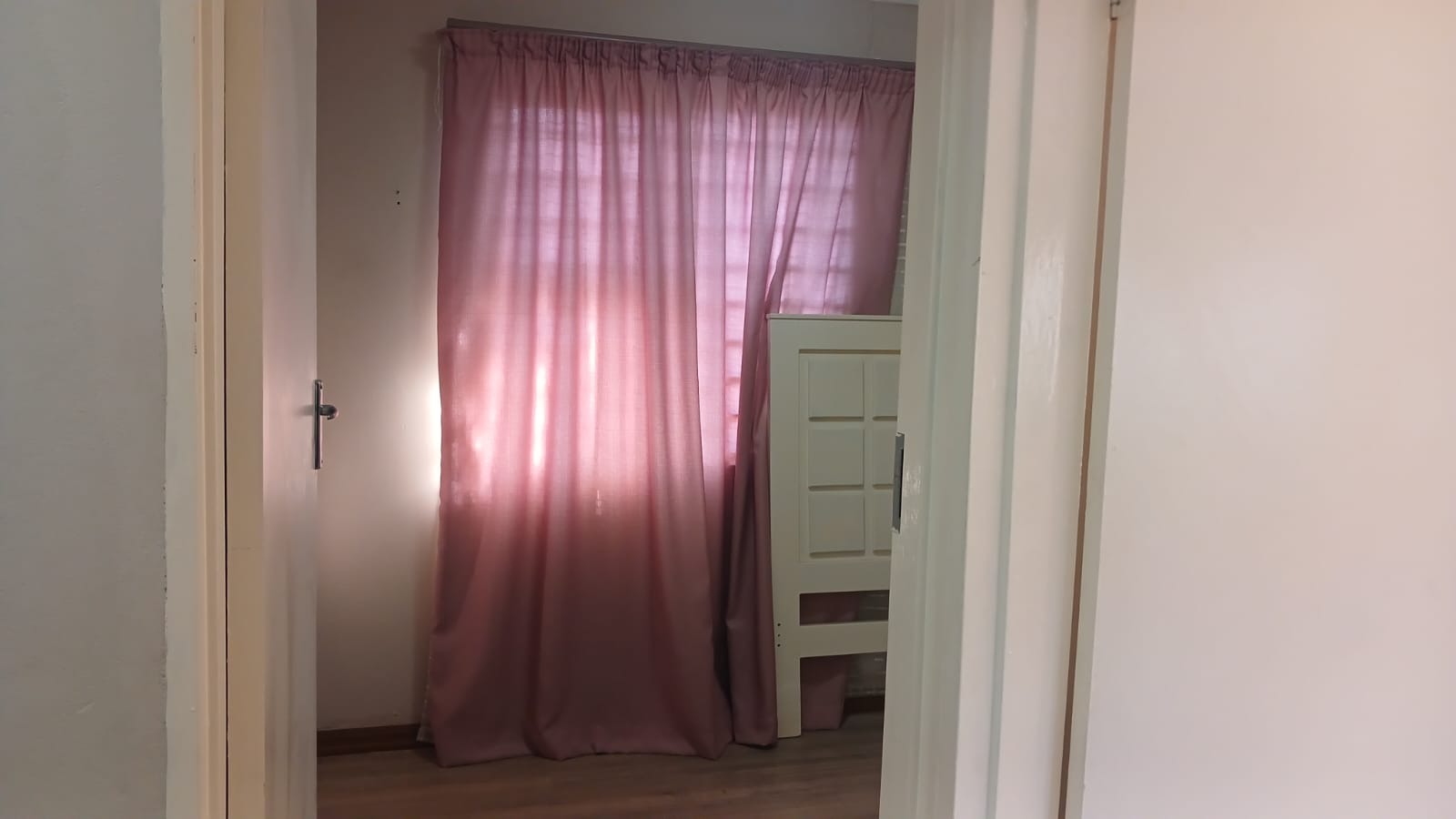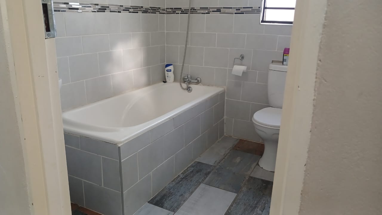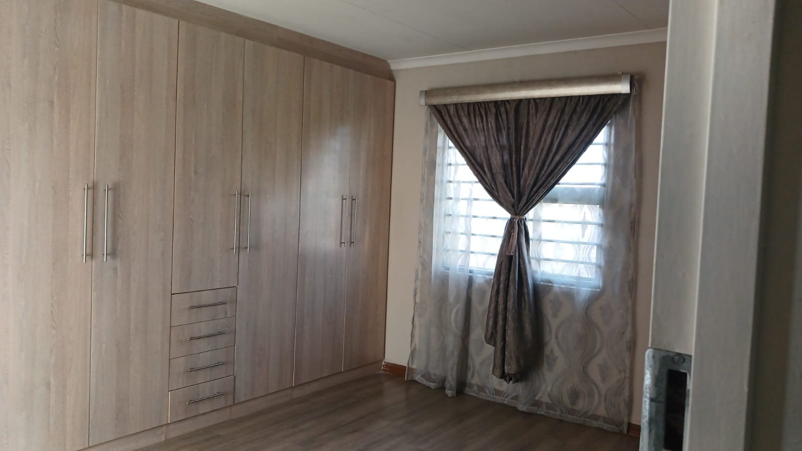 Inside, you'll find an open-plan kitchen with ample cupboard space, flowing seamlessly into a tiled dining area and lounge. The house boasts four bedrooms with wooden floors-three of which have built-in cupboards. There are two bathrooms: the first with a bath, basin, and toilet, the second, an en-suite in the main bedroom, with a shower, basin, and toilet.