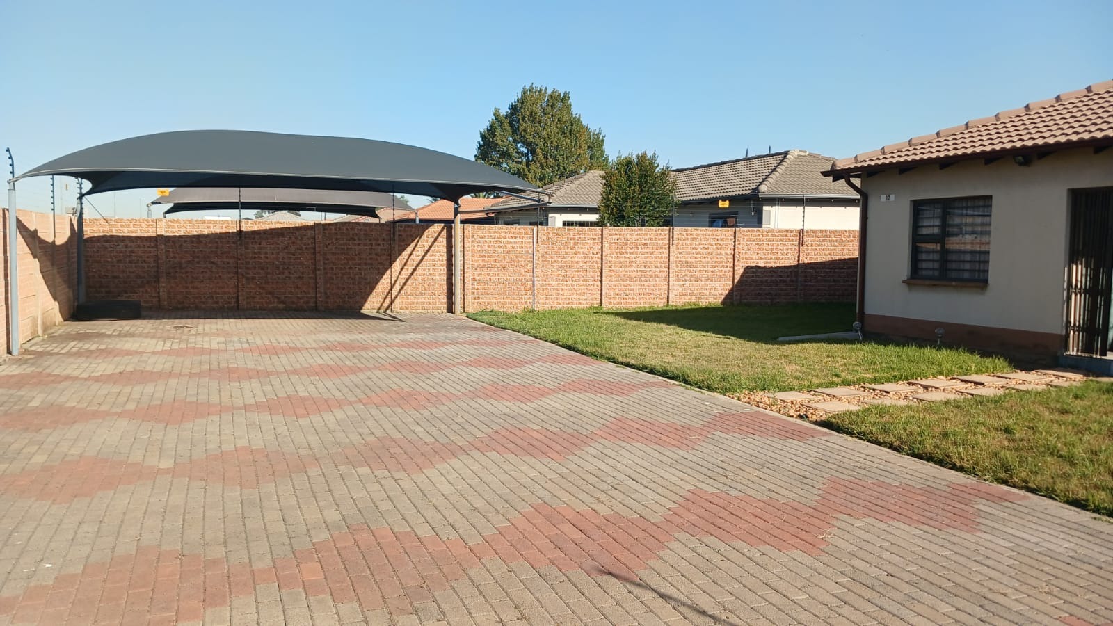 The home itself adds an extra layer of safety, featuring its own boundary wall, electric fence, security alarm system, and motorized gate. The property is paved and includes a well-maintained lawn, a double carport, and additional parking space for several vehicles.
