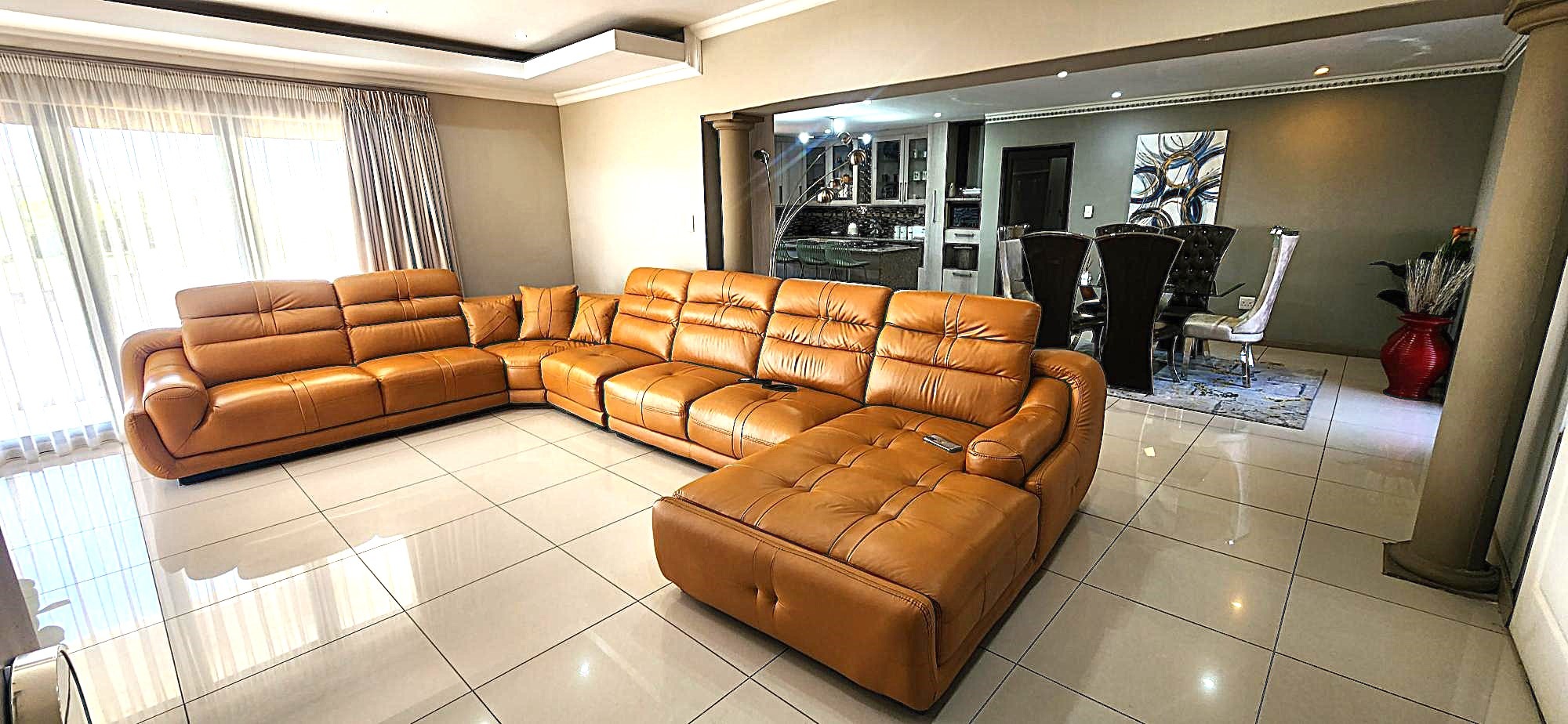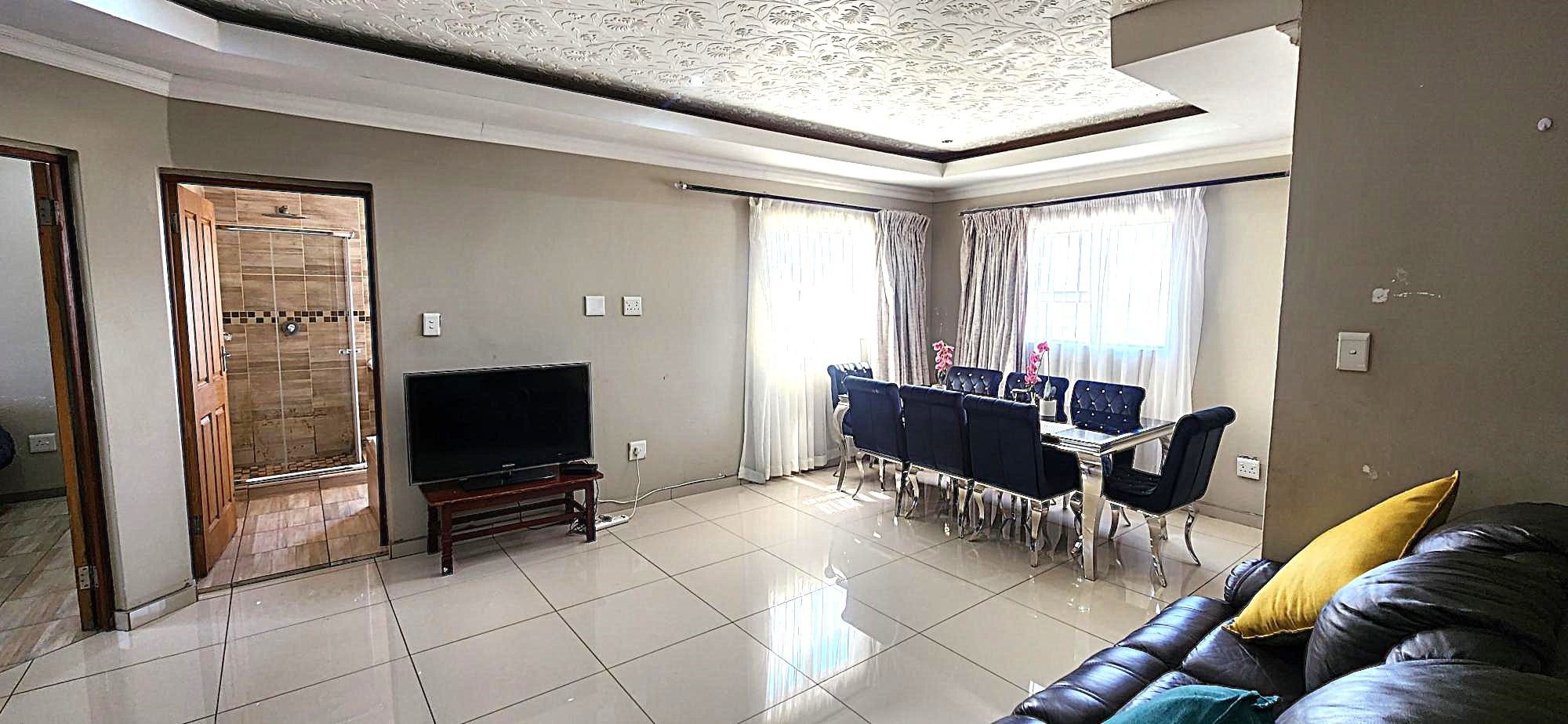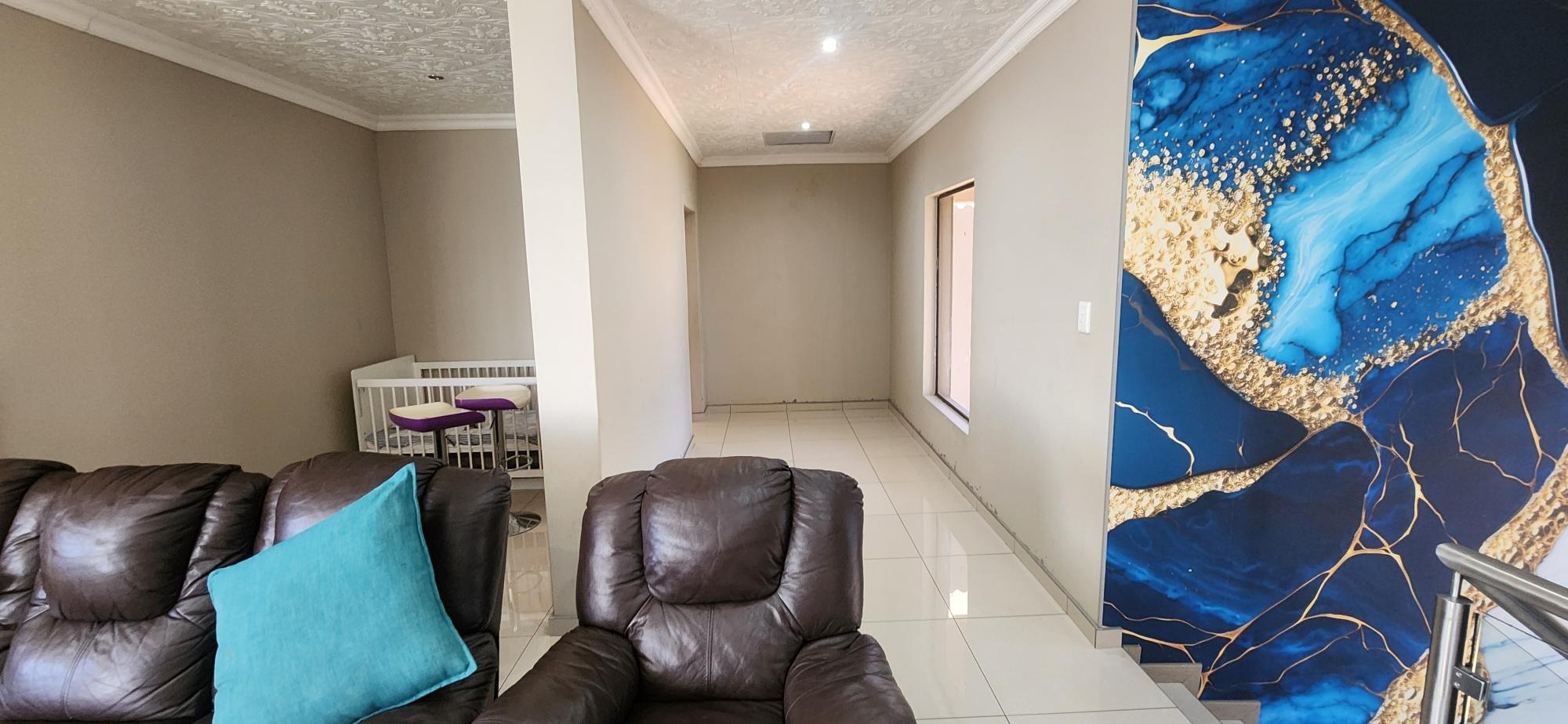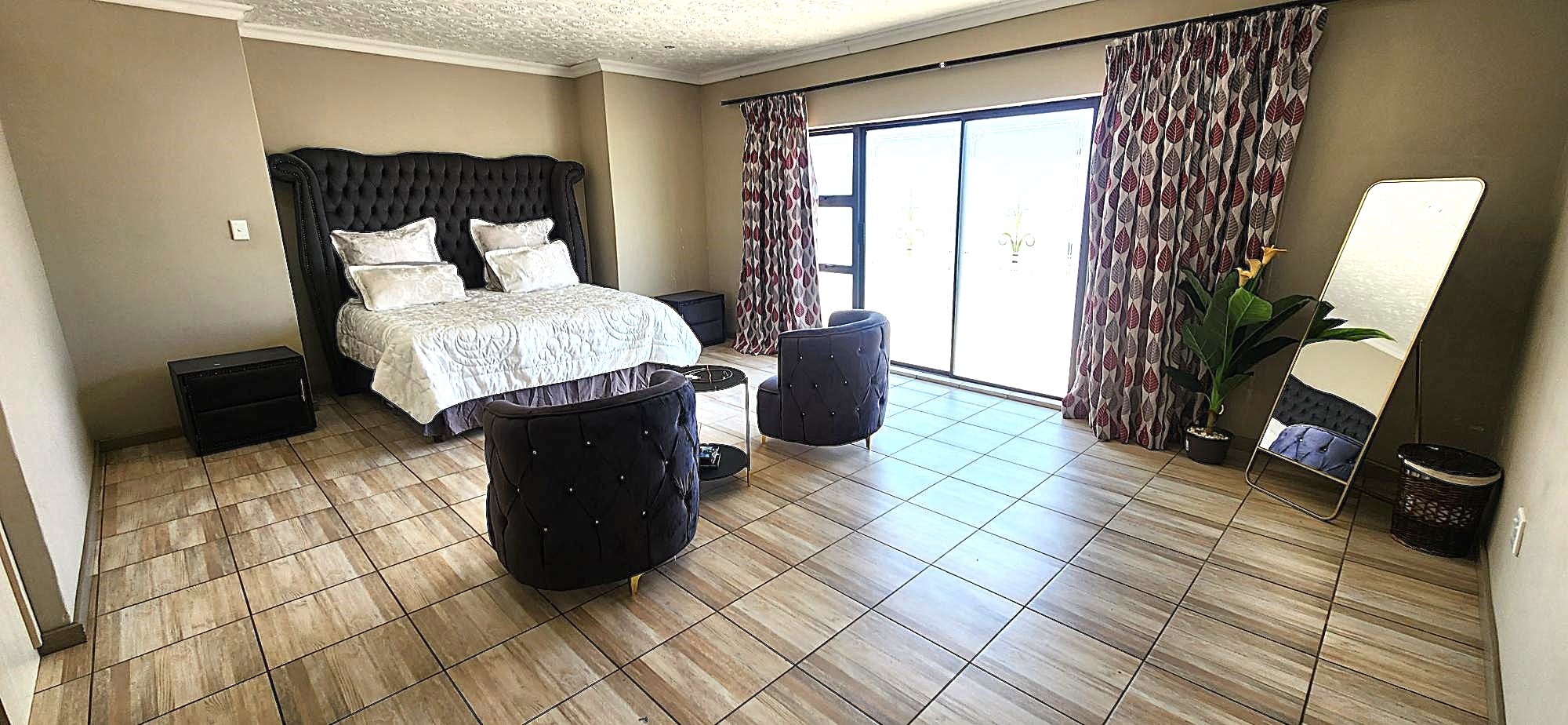 Discover an unparalleled lifestyle within this magnificent four-bedroom, three-bathroom residence, perfectly positioned in the esteemed Berg En Dal, Heidelberg. This modern, double-story architectural masterpiece immediately captivates with its striking kerb appeal, featuring a secure, decorative gated entrance, an expansive paved driveway, and a double garage with an attractive wooden door, offering ample parking for four vehicles. The elevated position promises breathtaking scenic views, enhancing the allure of this South African gem.