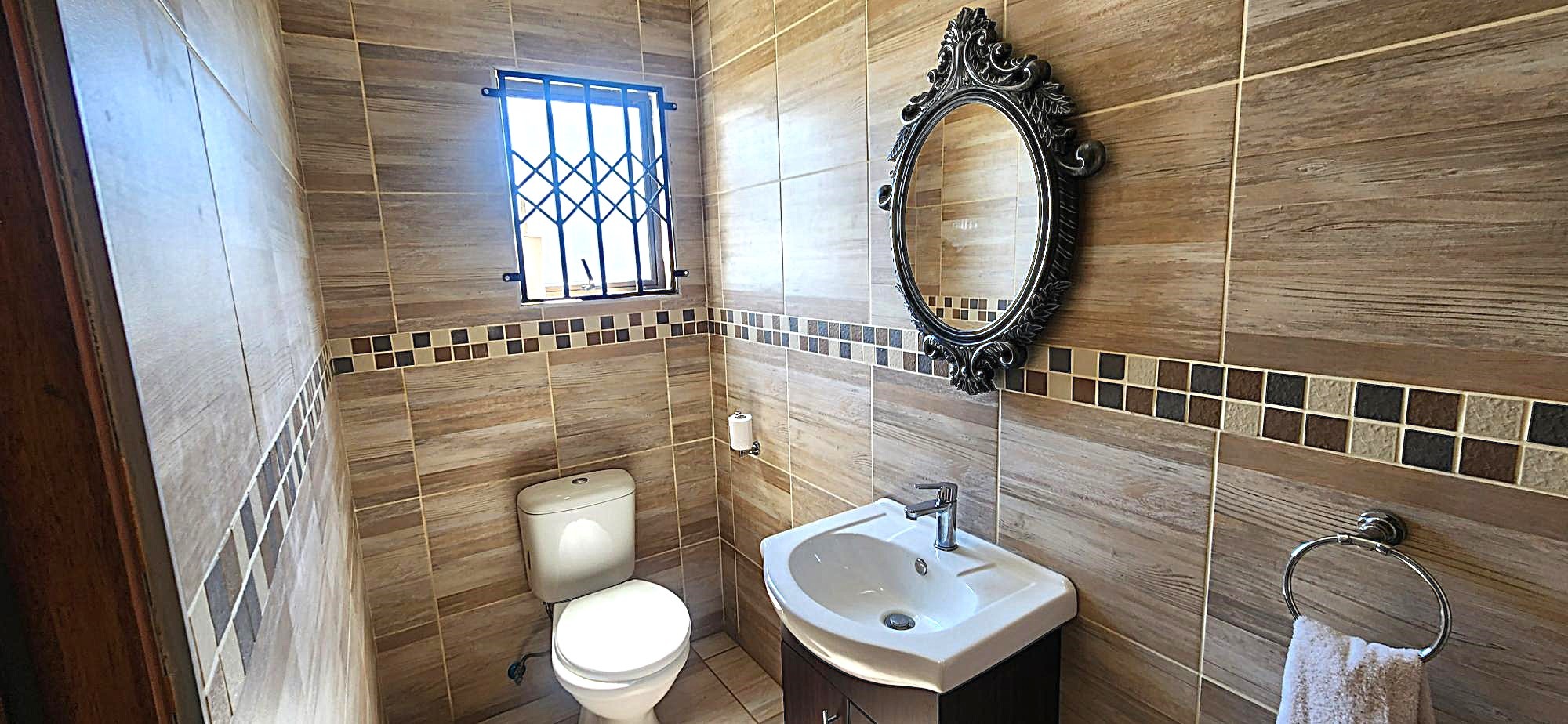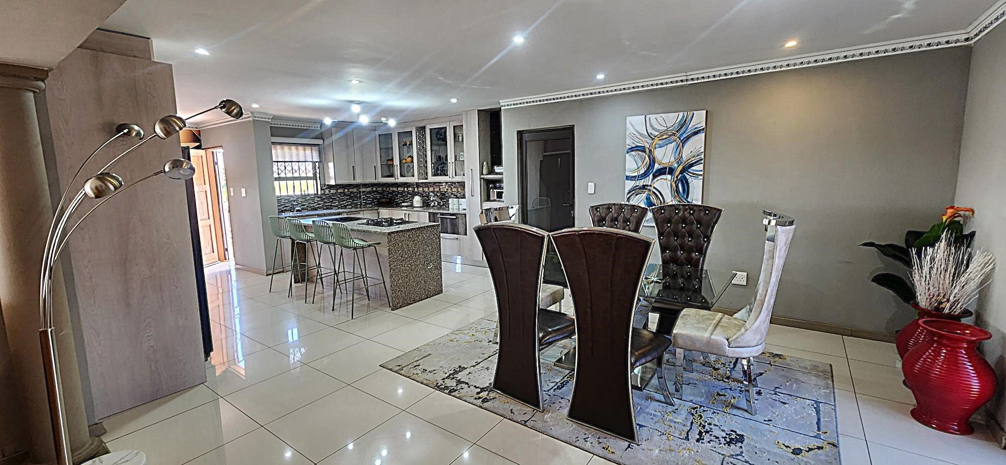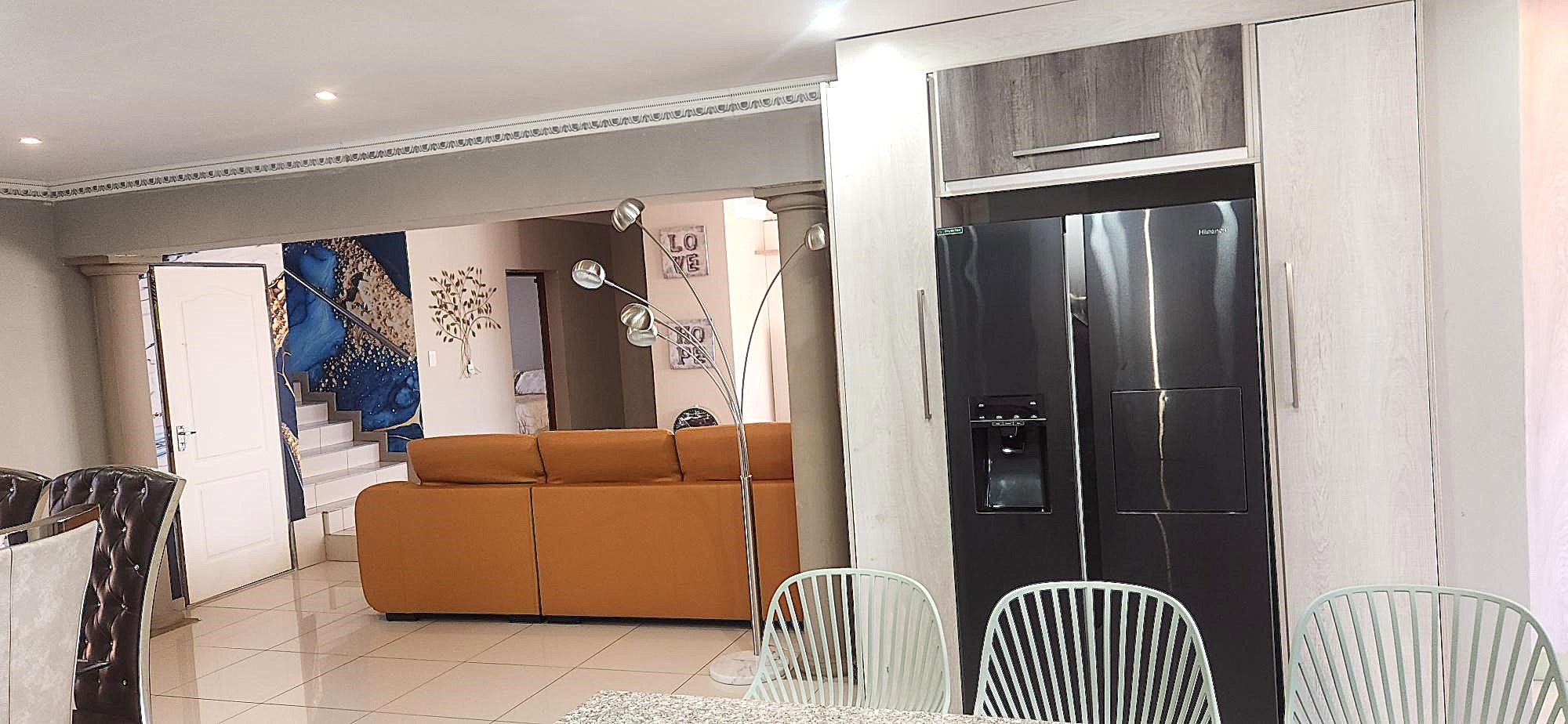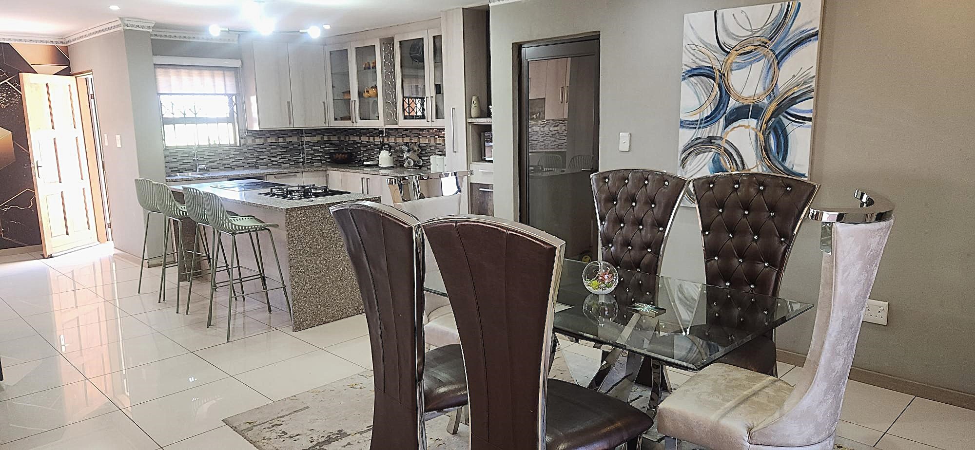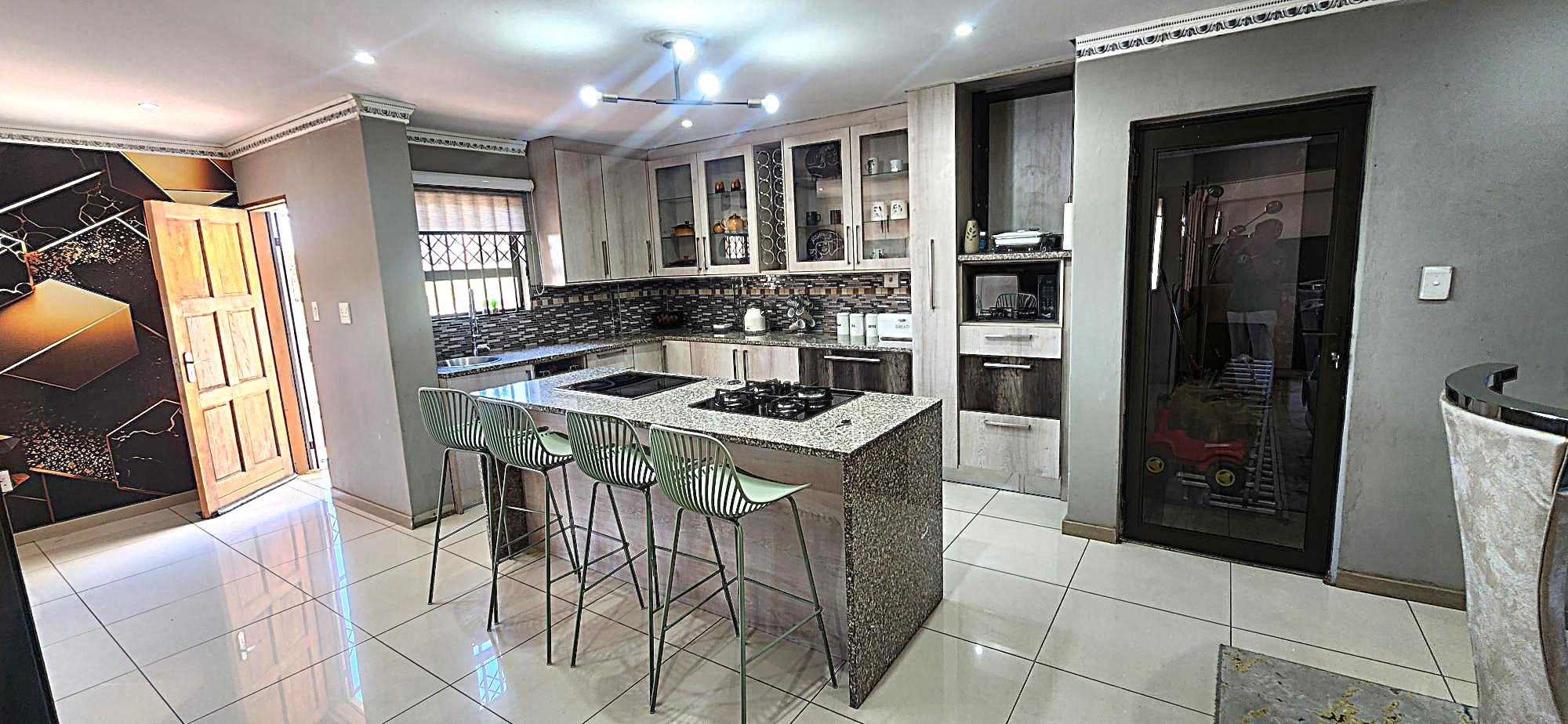 Outdoor living is equally refined, with a well-maintained garden providing a serene backdrop for relaxation. The property includes a built-in braai, perfect for entertaining, and domestic rooms for added convenience. Security is paramount within this gated community, offering peace of mind with 24-hour security, an intercom system, burglar bars, and security gates. Essential modern amenities include fibre connectivity and water tanks, ensuring a comfortable and connected lifestyle.