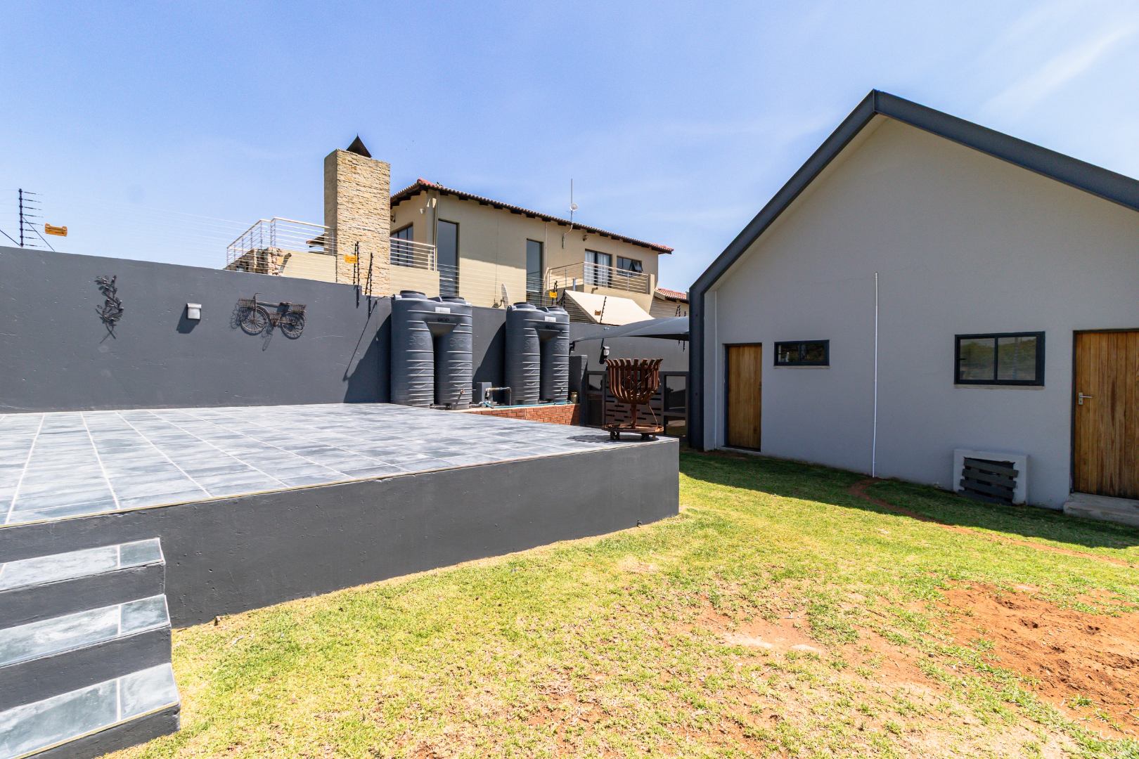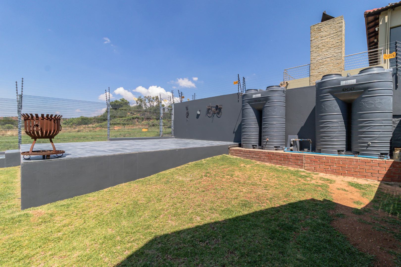 Security is paramount with 24-hour security, an access gate, alarm system, and electric fencing, ensuring peace of mind with walls on three sides and clear view to the nature reserve. With 4 garages and 6 additional parking spaces, this home combines sophisticated design with practical living. Pets are allowed. Back-up water storage tanks with preasure pump ensure uniterrupted water supply.