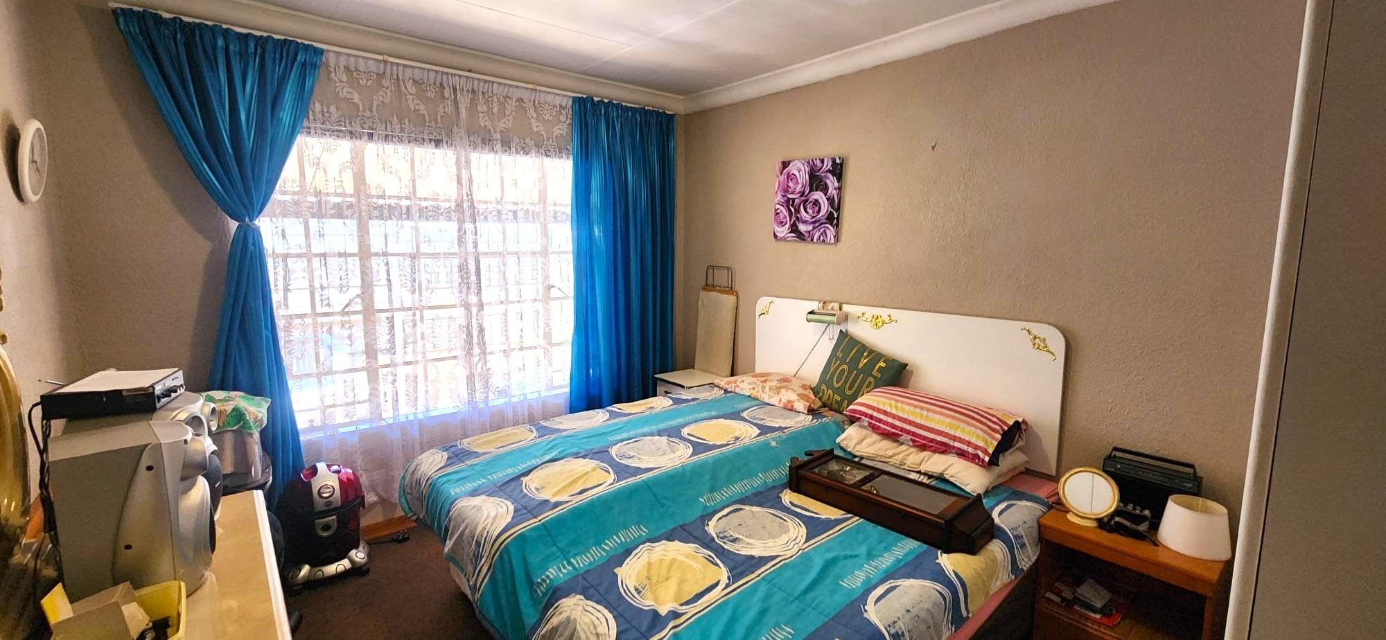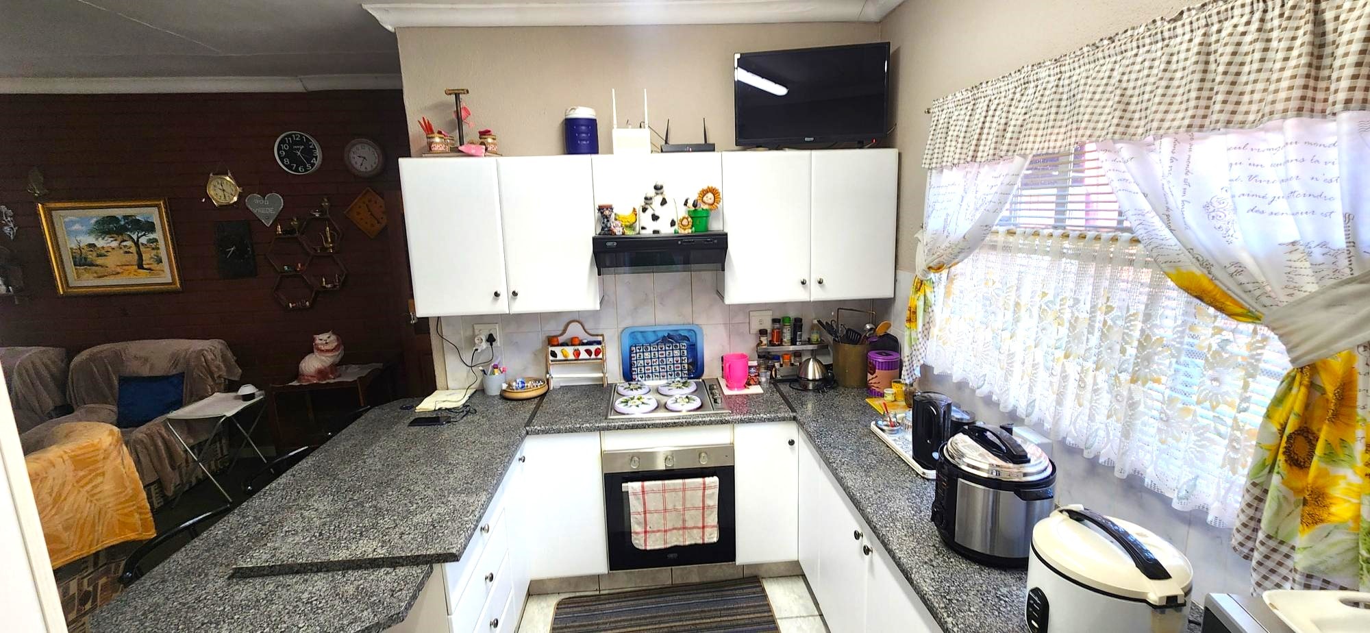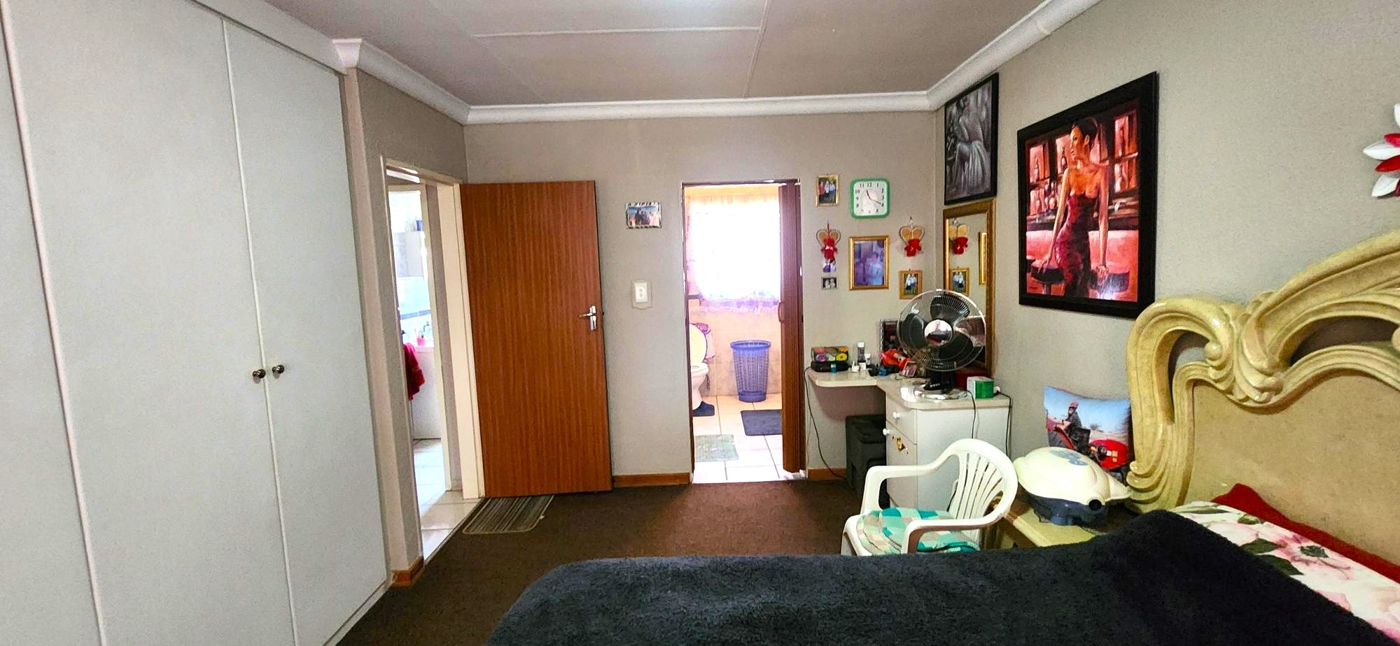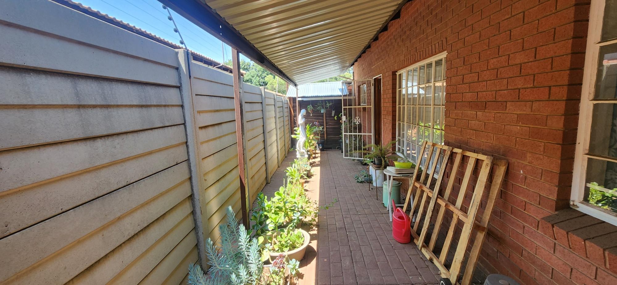 Externally, the property boasts a low-maintenance brick exterior, a paved driveway offering two parking spaces, and a single garage. Security is paramount with an alarm system, electric fencing, burglar bars, security gates, and access control within the totally walled complex. A garden and a Wendy house provide additional outdoor utility.
