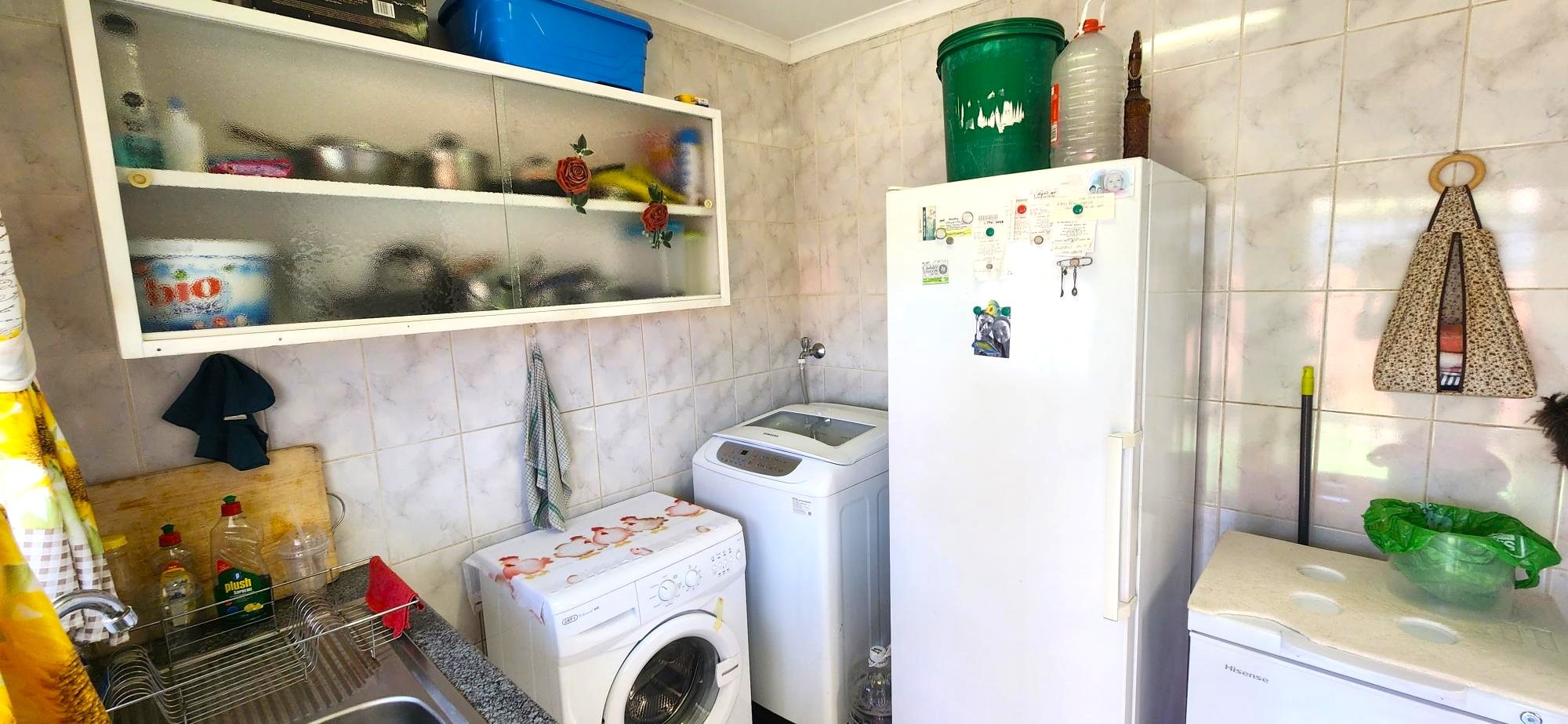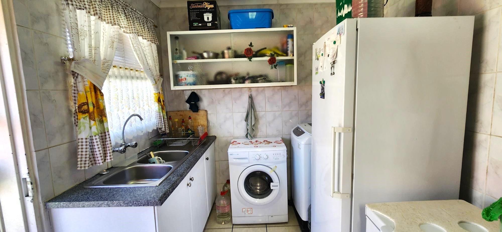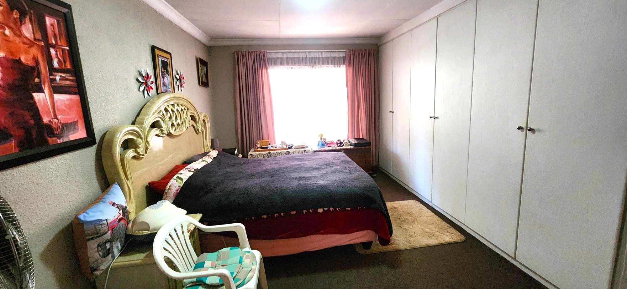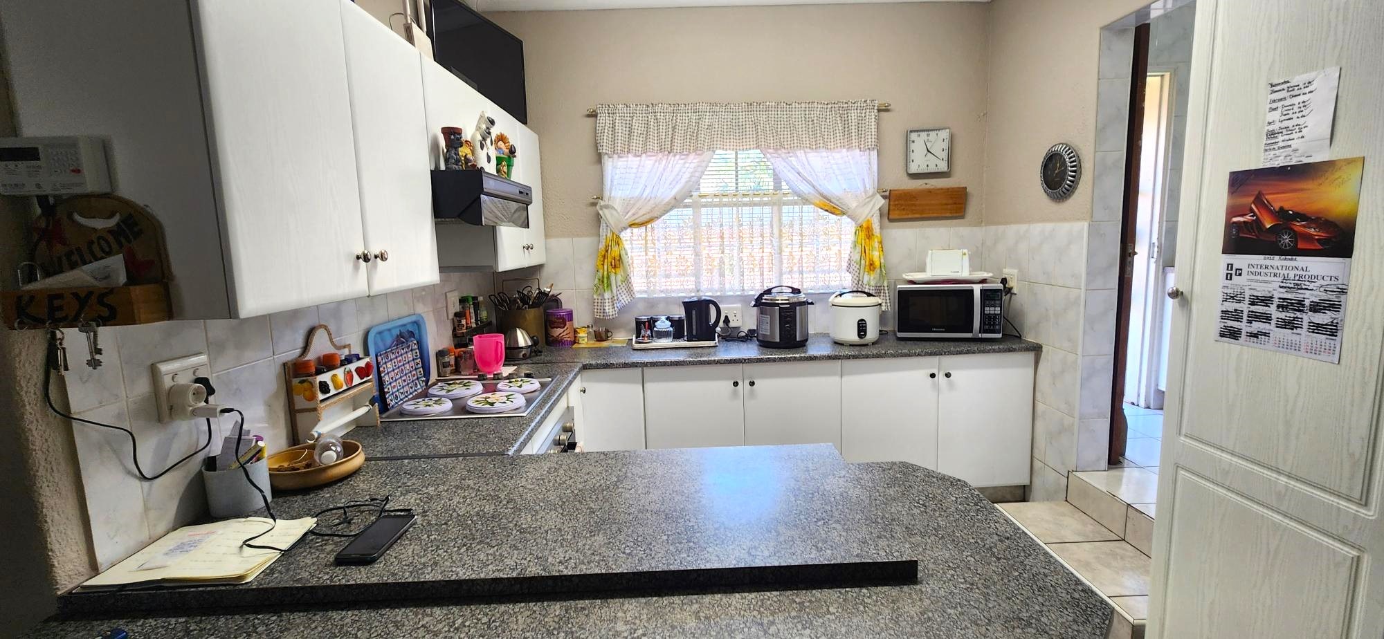 Externally, the property boasts a low-maintenance brick exterior, a paved driveway offering two parking spaces, and a single garage. Security is paramount with an alarm system, electric fencing, burglar bars, security gates, and access control within the totally walled complex. A garden and a Wendy house provide additional outdoor utility.
