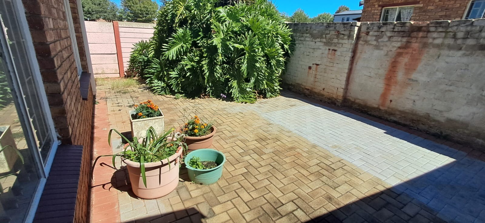 The property is fully tiled for easy maintenance and features a paved courtyard with low upkeep, perfect for those who prefer a garden-free lifestyle. Parking is well-catered for with a single garage, a carport, and an access gate. As the first unit in the complex, you benefit from easy access and added convenience.