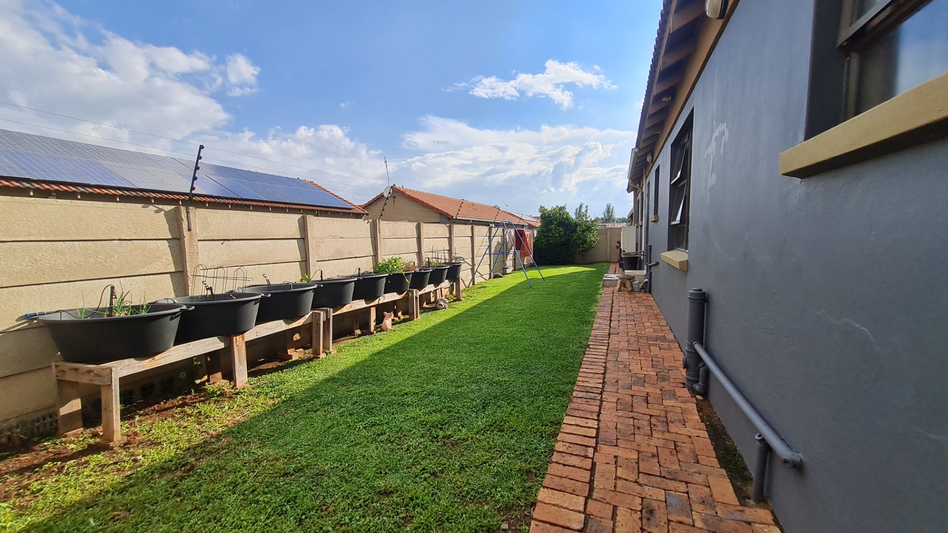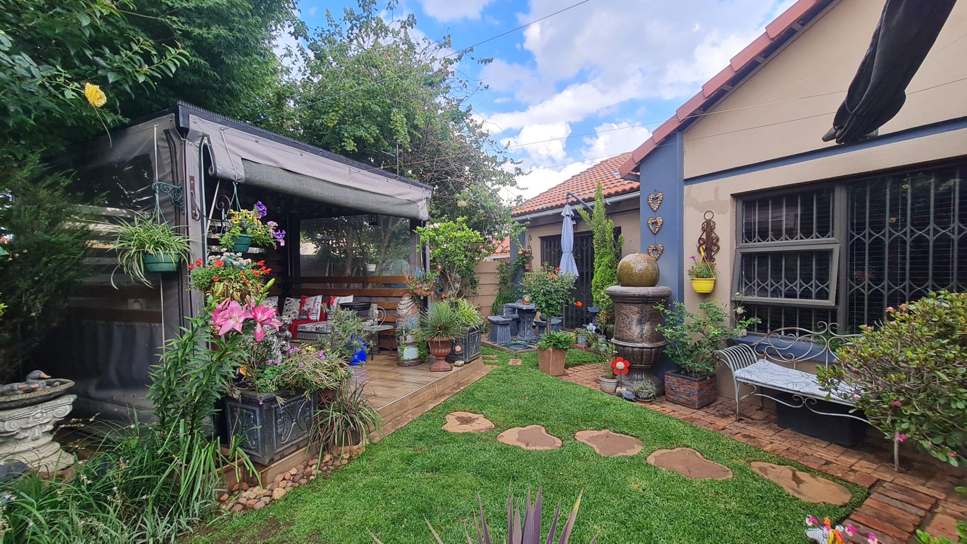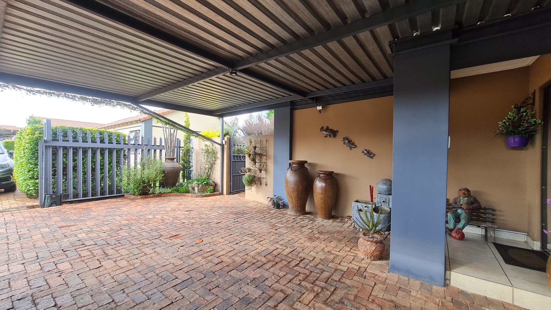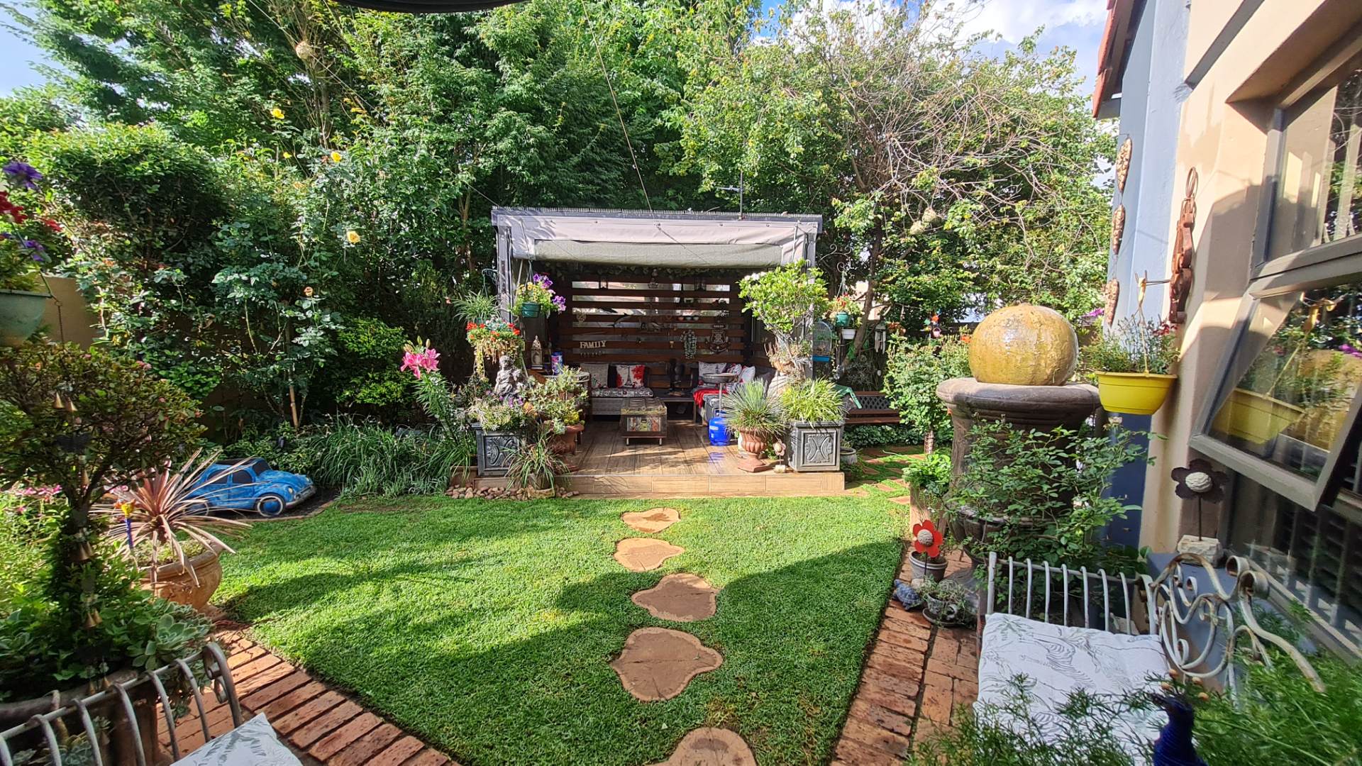 The meticulously curated outdoor spaces are a true highlight, featuring a lush, irrigated garden with diverse plantings and charming decor. Entertain with flair on the inviting patio, complete with a lapa, or enjoy the convenience of a spacious covered carport providing two dedicated parking bays. Sustainability is thoughtfully integrated with water tanks, while robust security features, including an alarm system, electric fencing, burglar bars, and an access gate within a secure complex, ensure peace of mind. This distinguished property promises a lifestyle of comfort and sophistication.