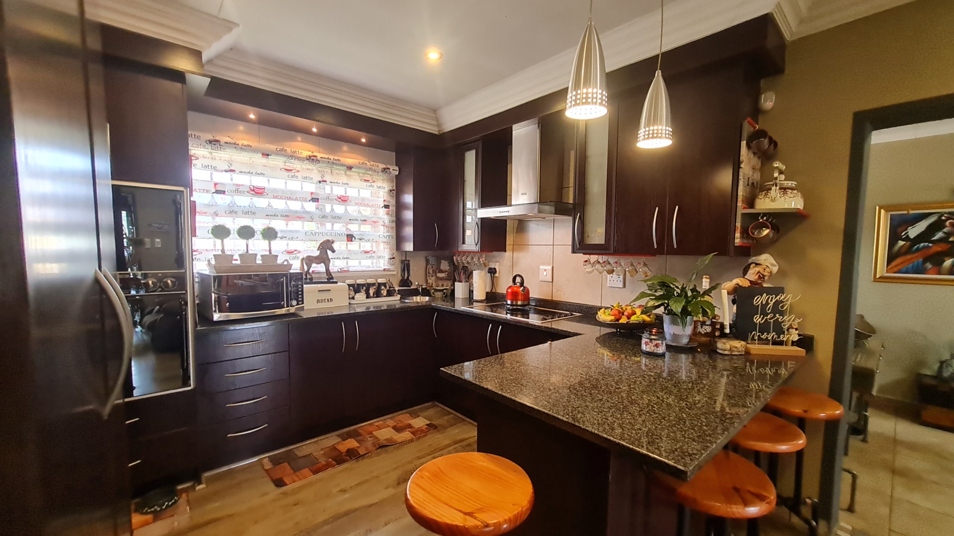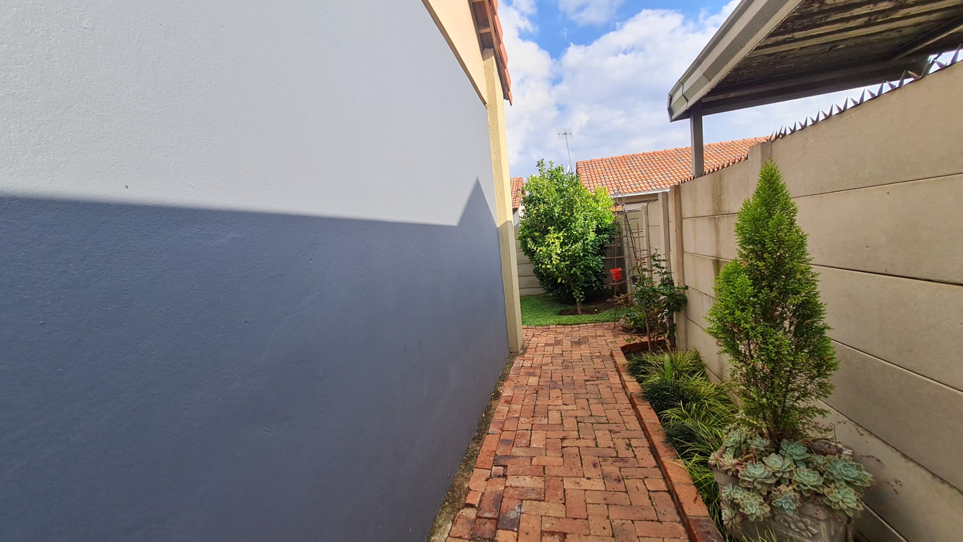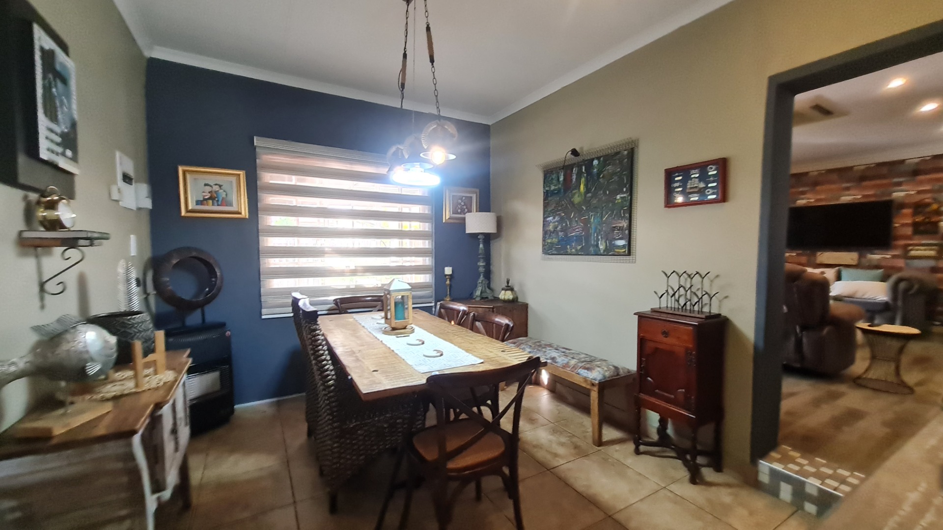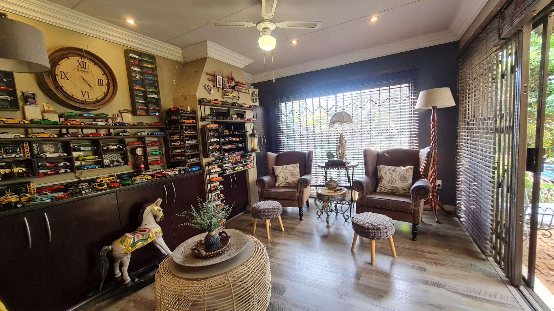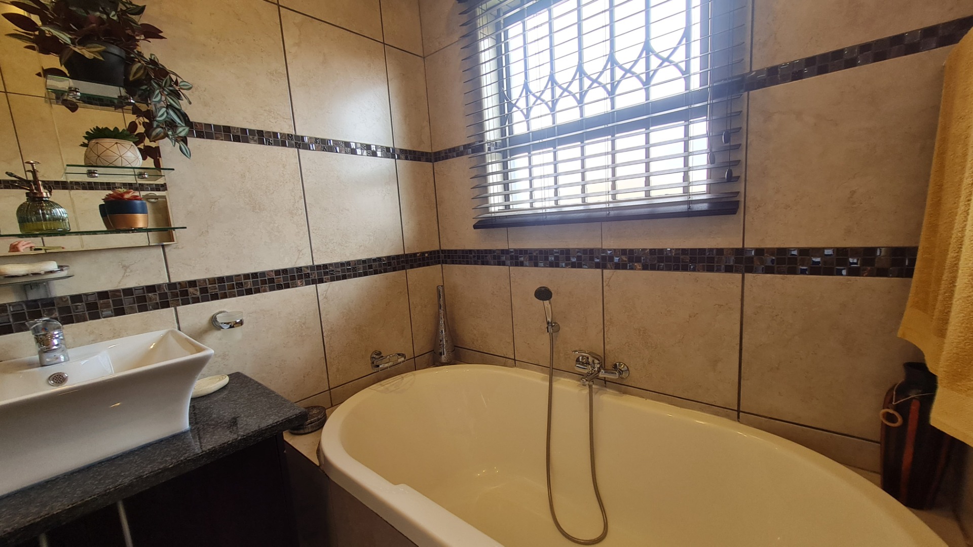 The meticulously curated outdoor spaces are a true highlight, featuring a lush, irrigated garden with diverse plantings and charming decor. Entertain with flair on the inviting patio, complete with a lapa, or enjoy the convenience of a spacious covered carport providing two dedicated parking bays. Sustainability is thoughtfully integrated with water tanks, while robust security features, including an alarm system, electric fencing, burglar bars, and an access gate within a secure complex, ensure peace of mind. This distinguished property promises a lifestyle of comfort and sophistication.