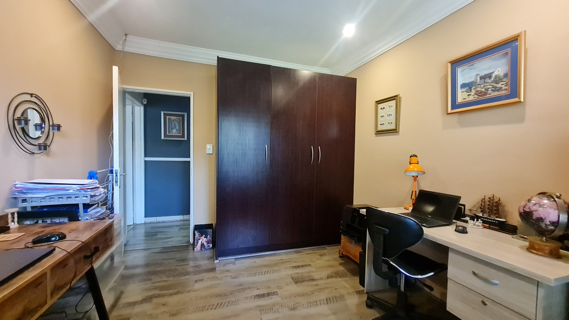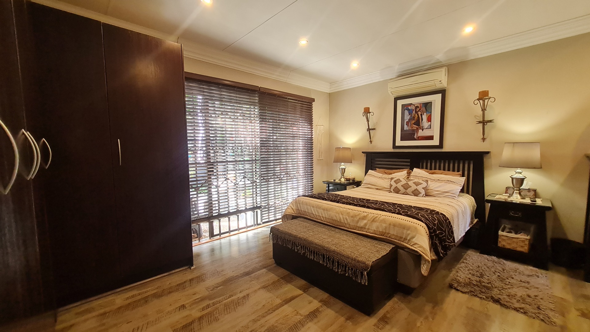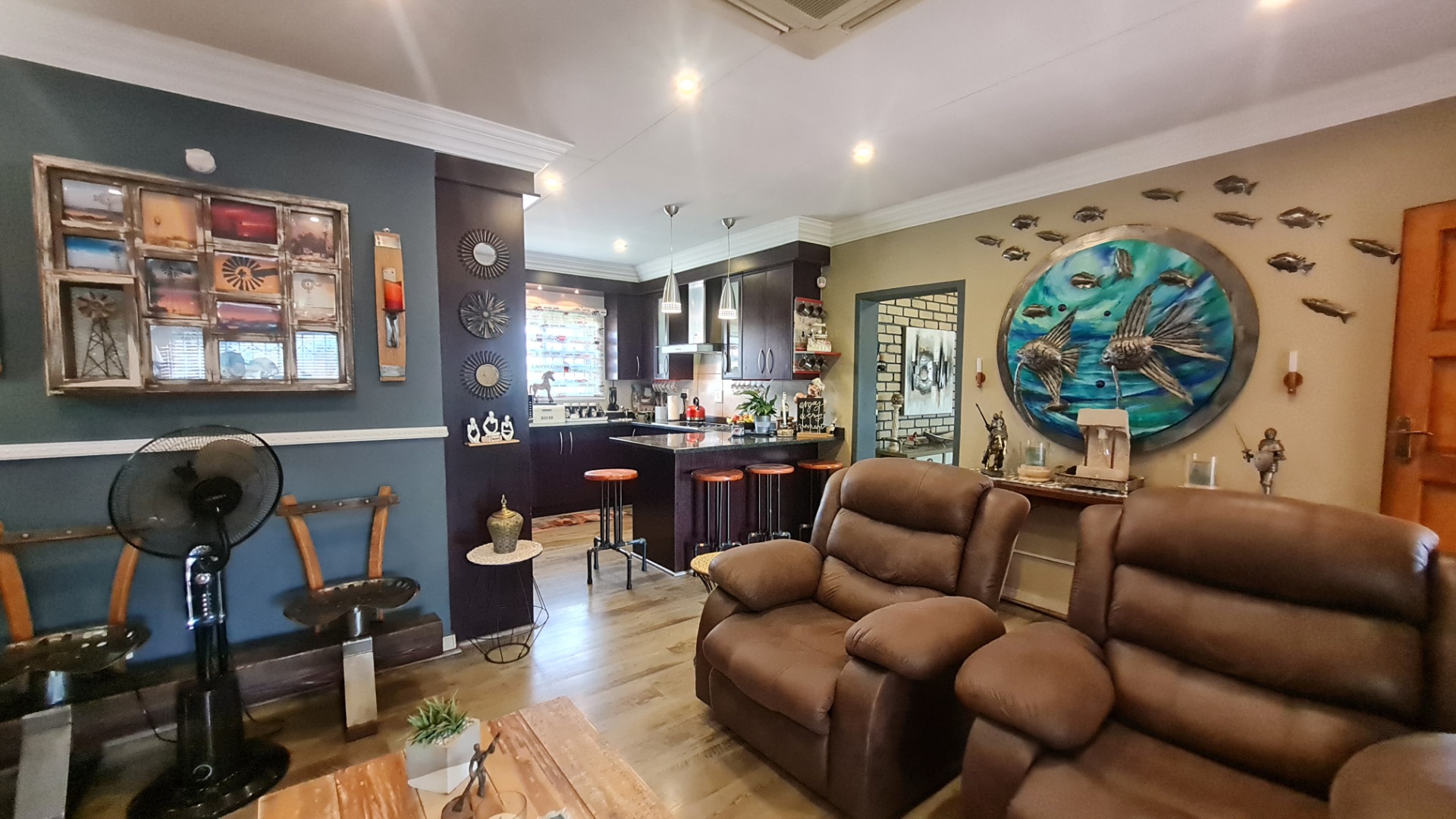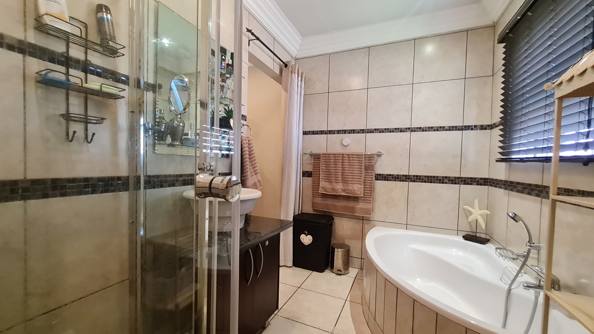 The meticulously curated outdoor spaces are a true highlight, featuring a lush, irrigated garden with diverse plantings and charming decor. Entertain with flair on the inviting patio, complete with a lapa, or enjoy the convenience of a spacious covered carport providing two dedicated parking bays. Sustainability is thoughtfully integrated with water tanks, while robust security features, including an alarm system, electric fencing, burglar bars, and an access gate within a secure complex, ensure peace of mind. This distinguished property promises a lifestyle of comfort and sophistication.