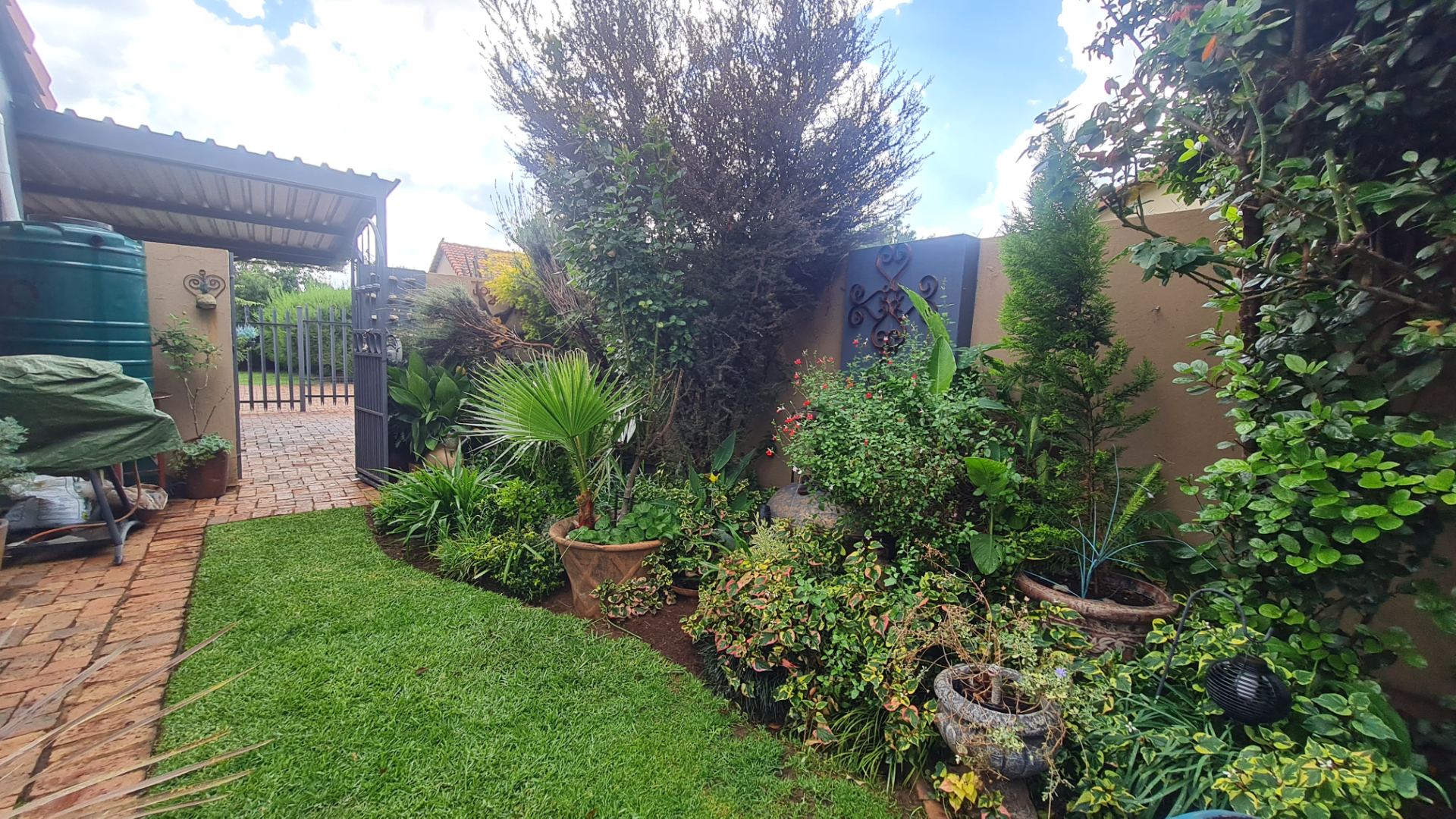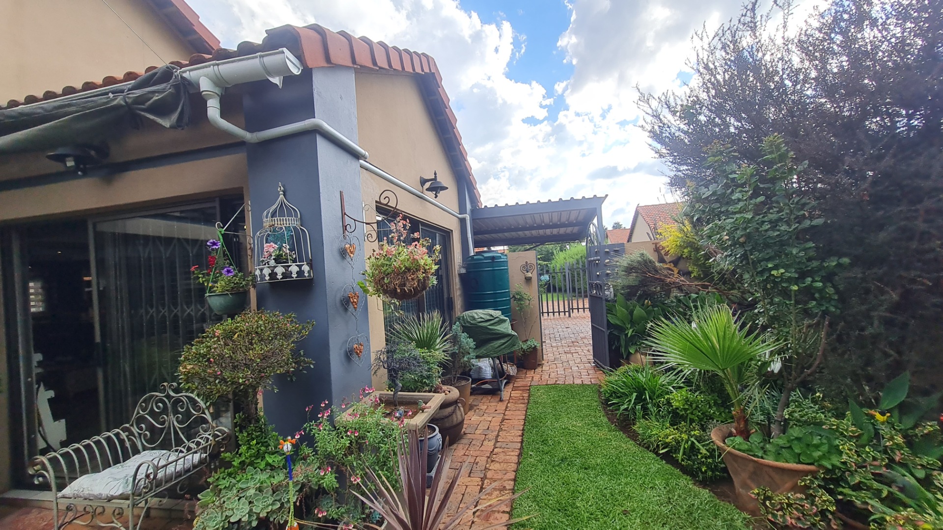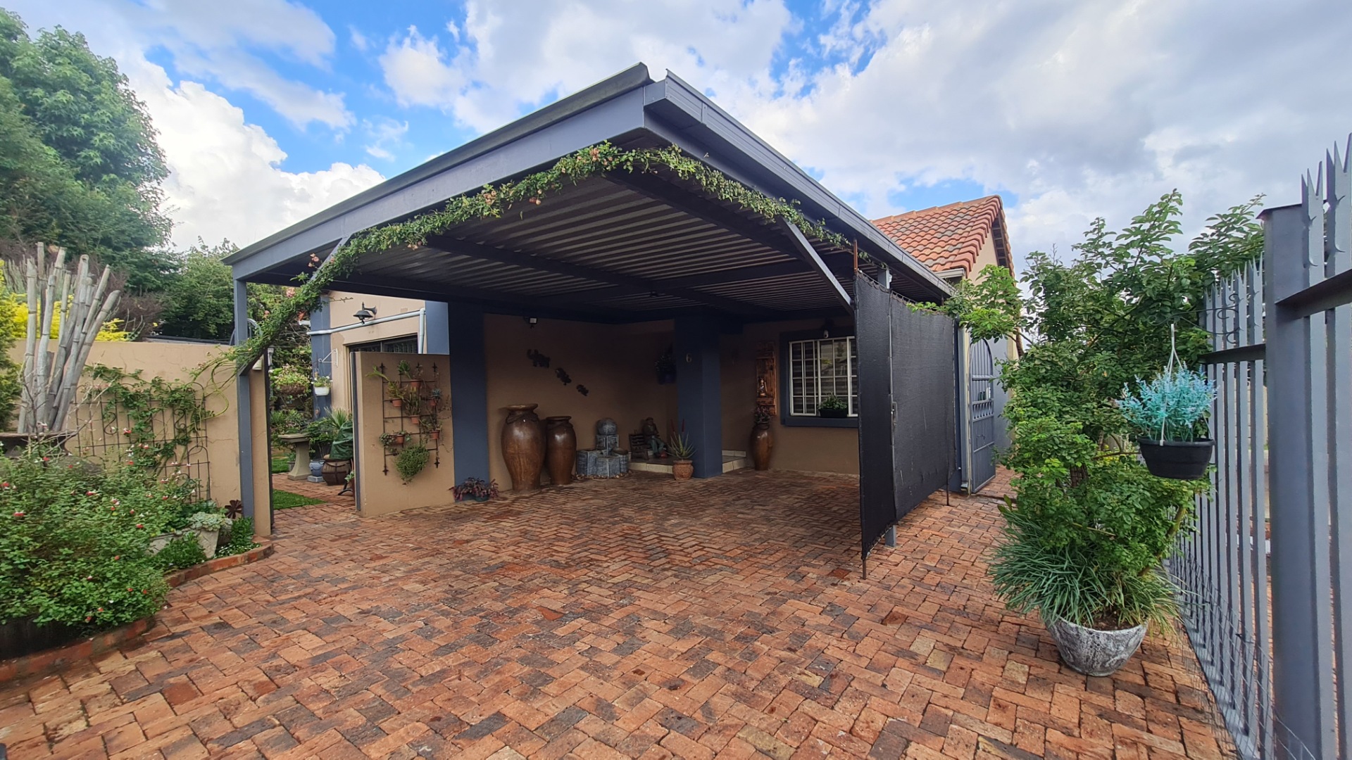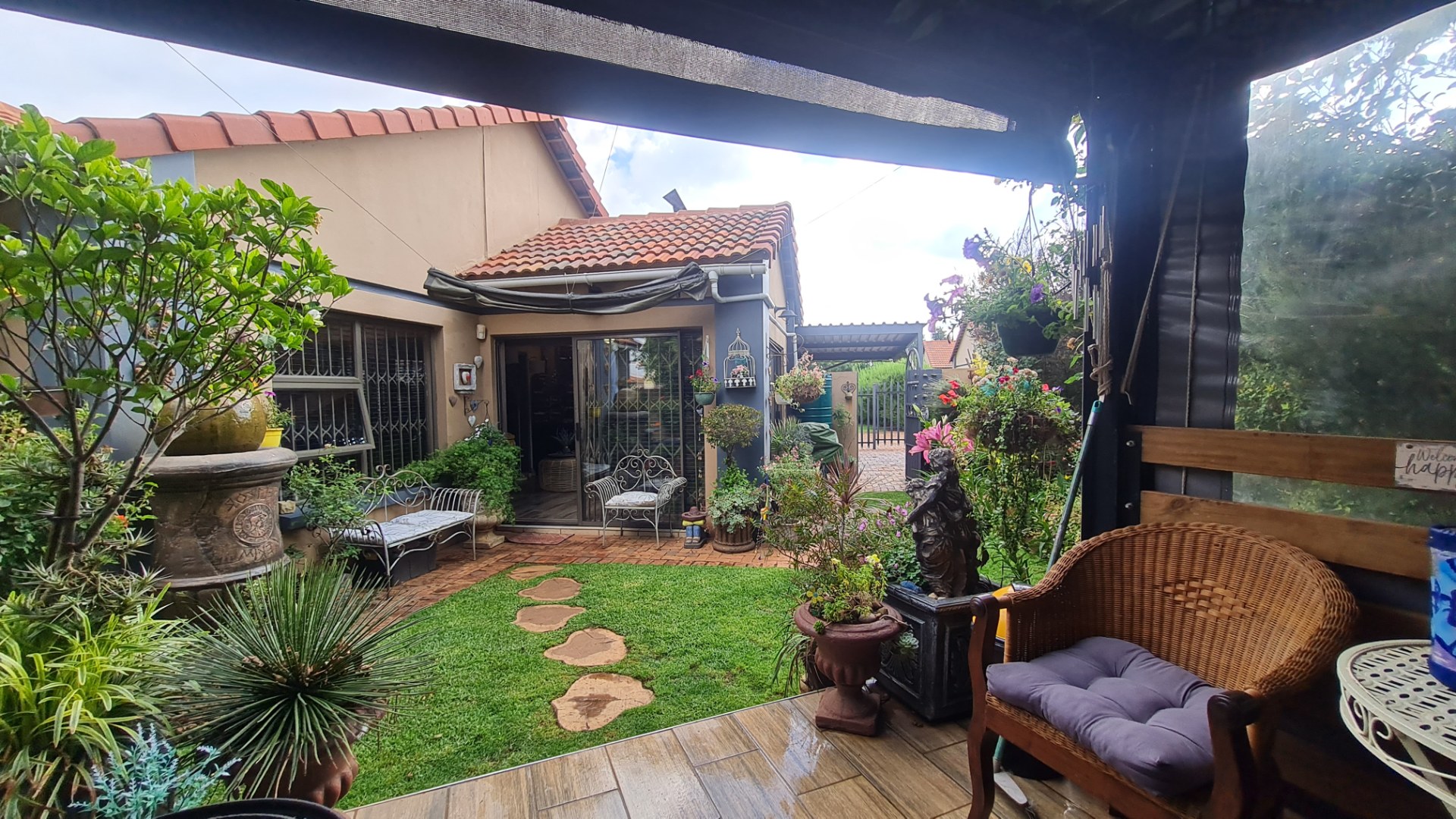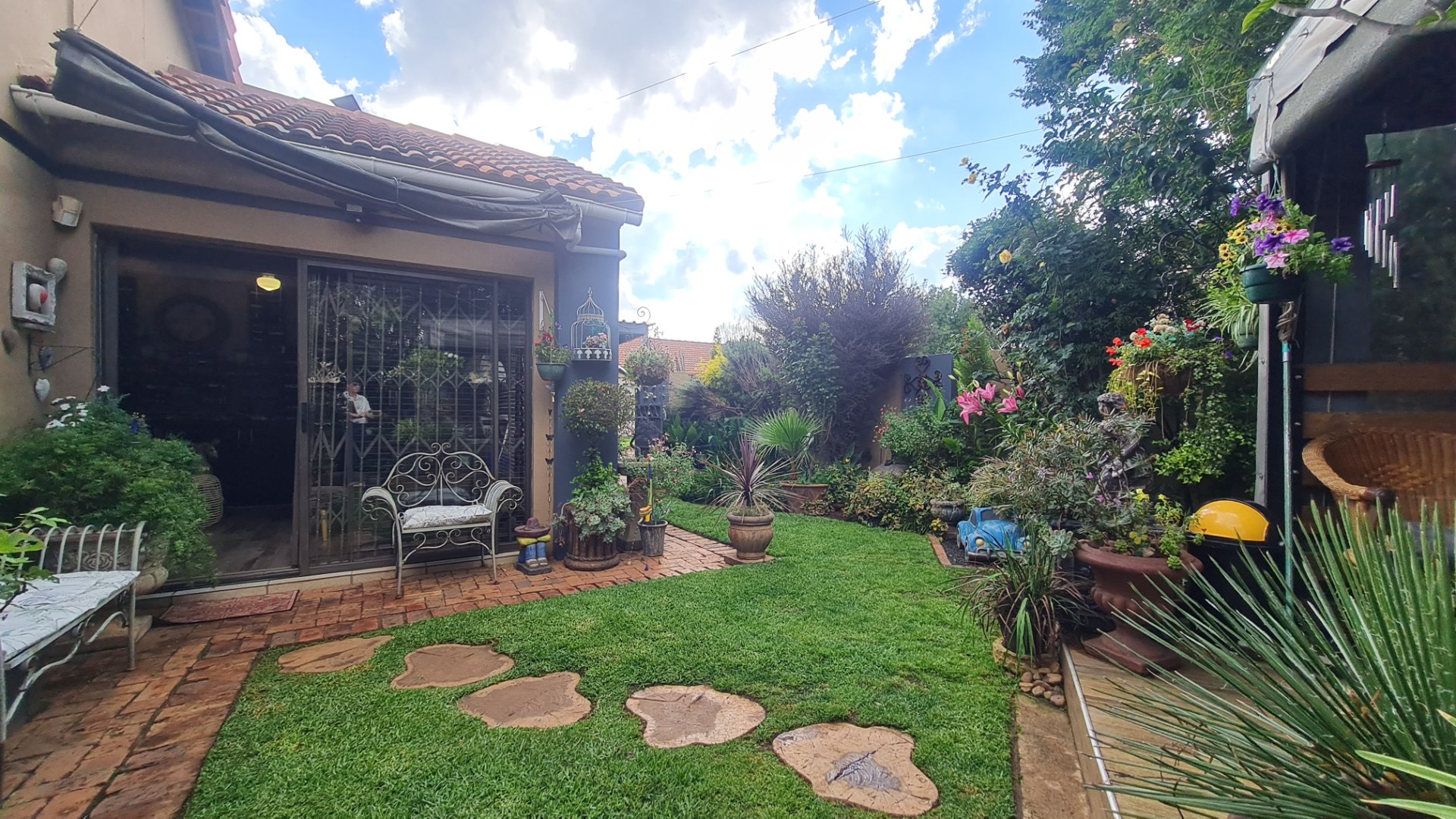 The meticulously curated outdoor spaces are a true highlight, featuring a lush, irrigated garden with diverse plantings and charming decor. Entertain with flair on the inviting patio, complete with a lapa, or enjoy the convenience of a spacious covered carport providing two dedicated parking bays. Sustainability is thoughtfully integrated with water tanks, while robust security features, including an alarm system, electric fencing, burglar bars, and an access gate within a secure complex, ensure peace of mind. This distinguished property promises a lifestyle of comfort and sophistication.