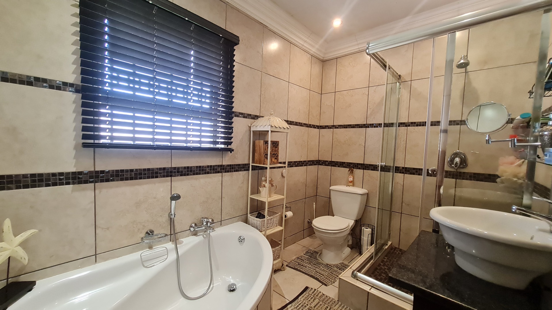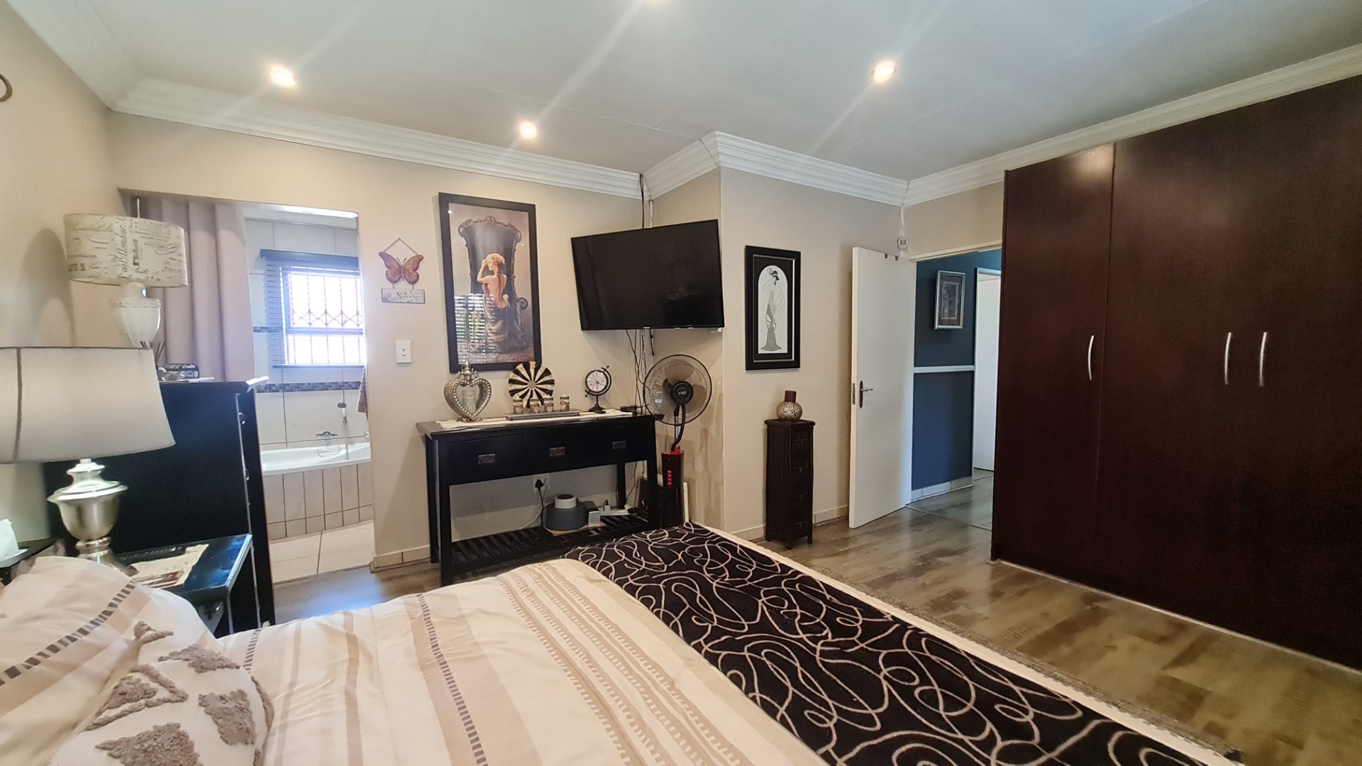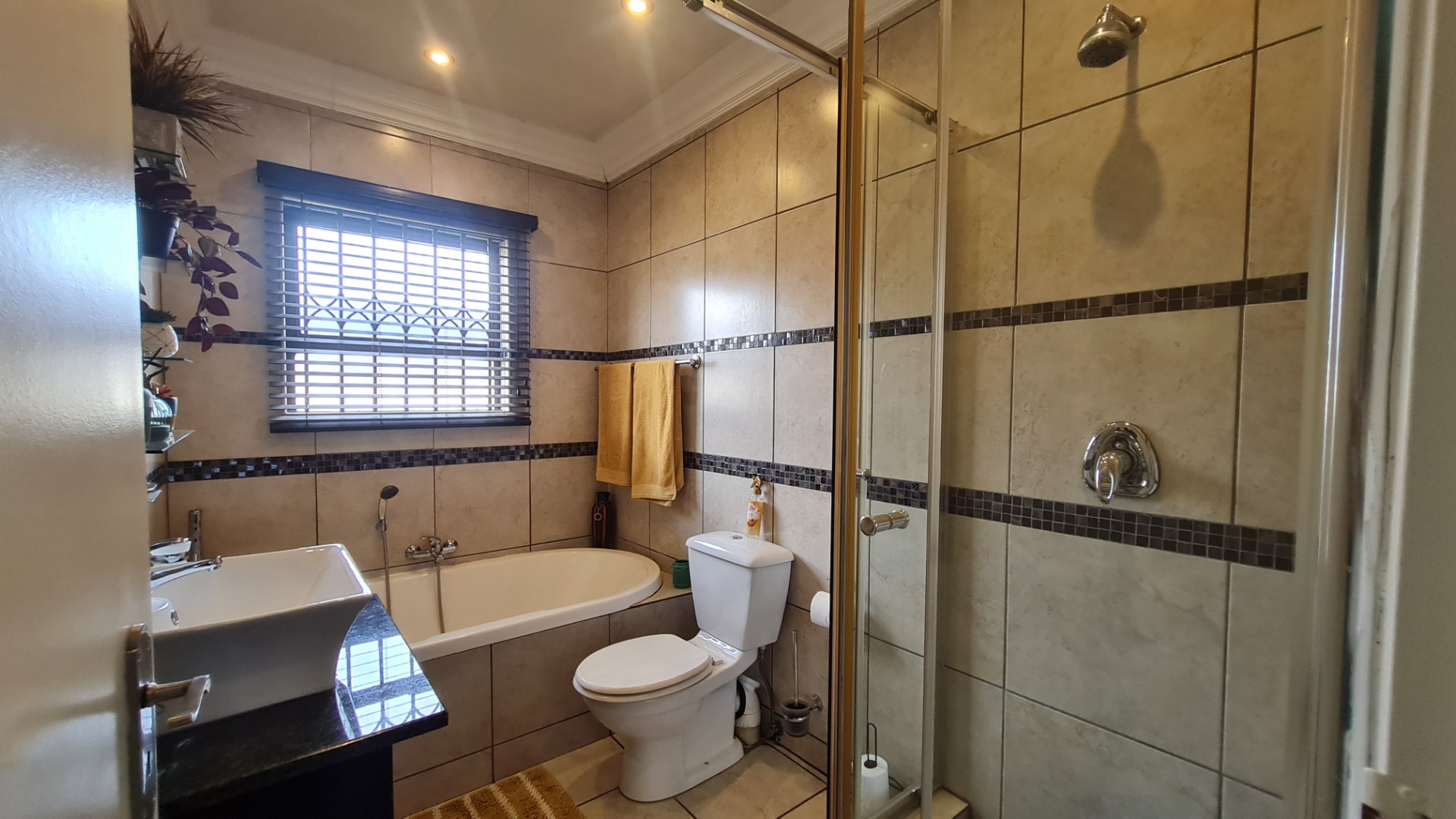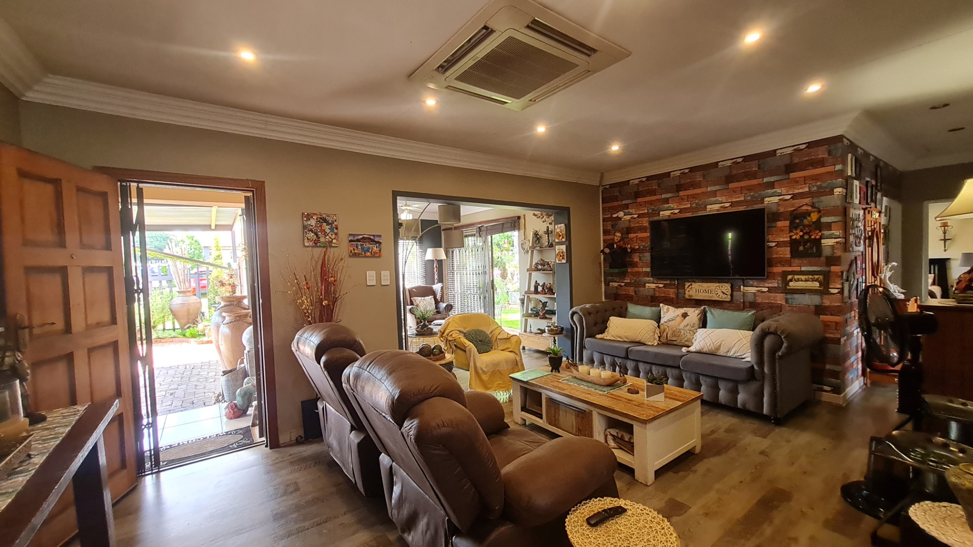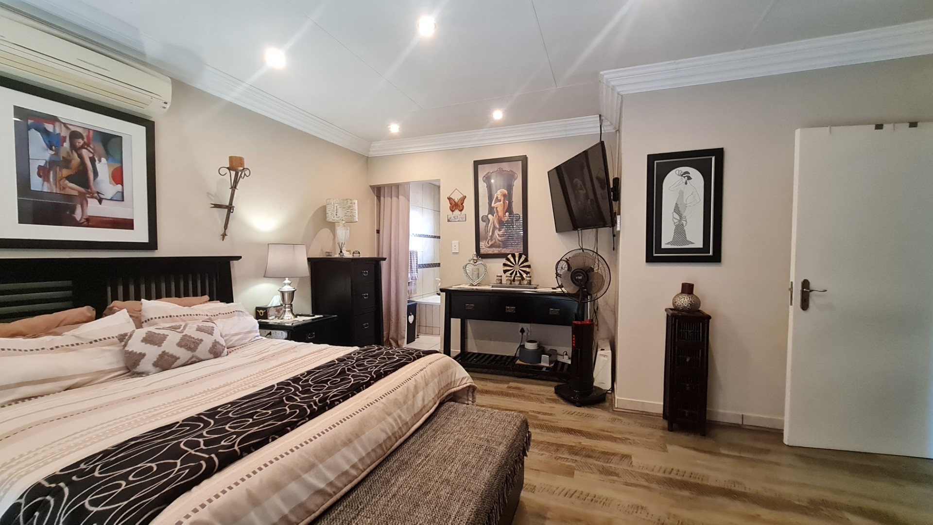 The meticulously curated outdoor spaces are a true highlight, featuring a lush, irrigated garden with diverse plantings and charming decor. Entertain with flair on the inviting patio, complete with a lapa, or enjoy the convenience of a spacious covered carport providing two dedicated parking bays. Sustainability is thoughtfully integrated with water tanks, while robust security features, including an alarm system, electric fencing, burglar bars, and an access gate within a secure complex, ensure peace of mind. This distinguished property promises a lifestyle of comfort and sophistication.