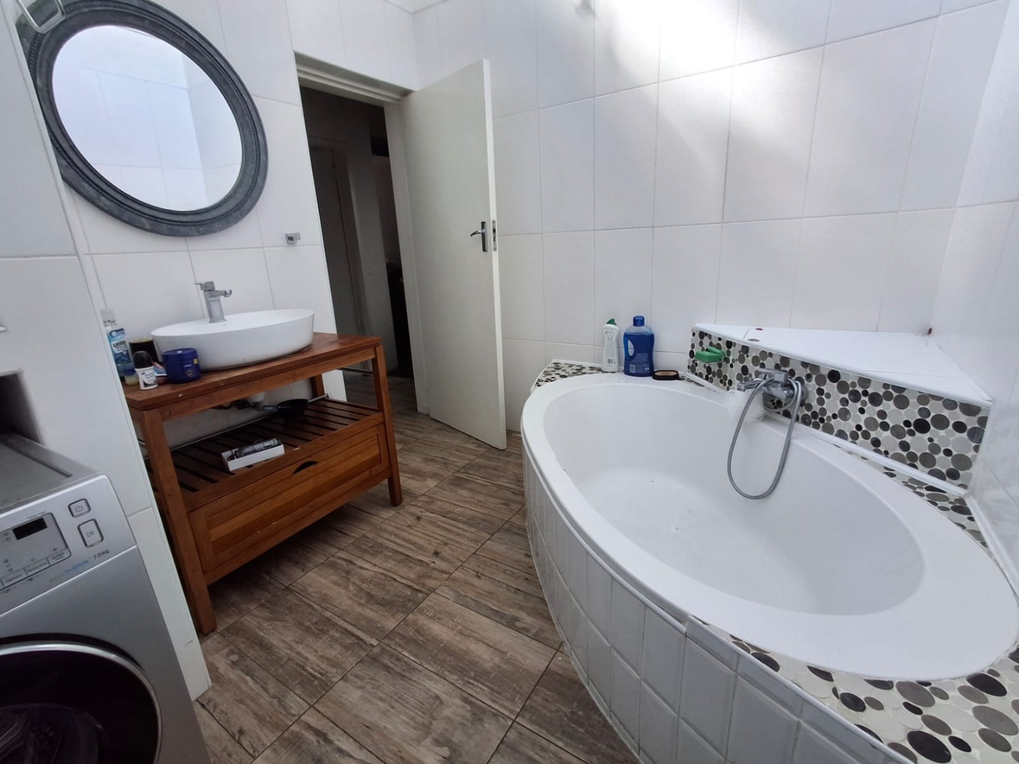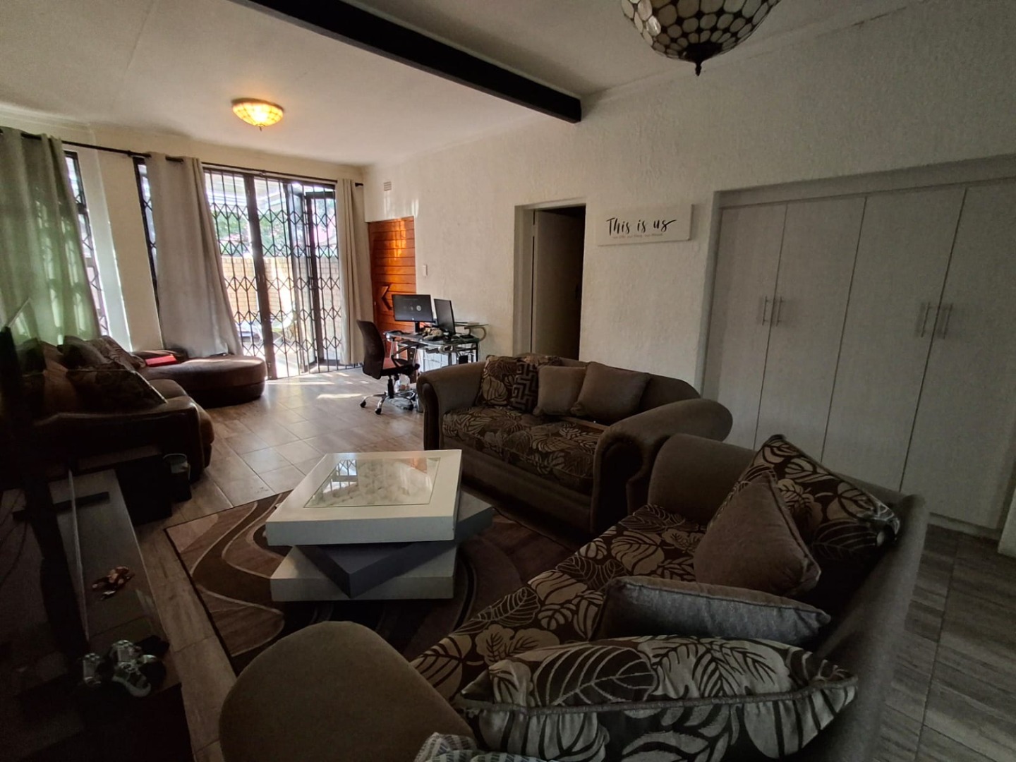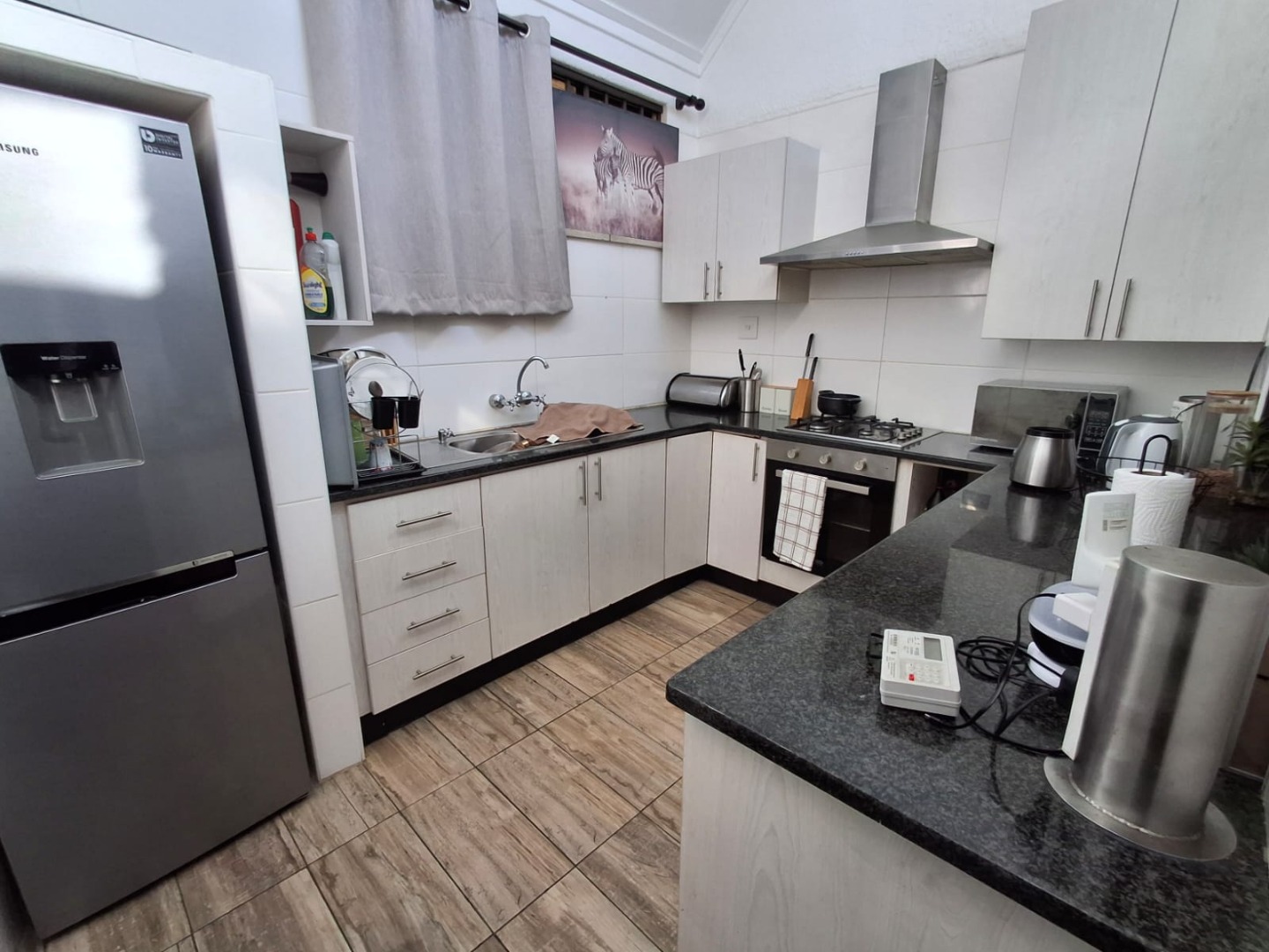 This charming ground-floor unit is located in a secure and well-maintained complex and offers the added benefit of a private garden. The home features open-plan living, dining, and kitchen areas, creating a welcoming and functional space. Sliding doors from the living room lead to a covered entertainment area with a built-in braai, overlooking a small, private garden—perfect for relaxed outdoor living.