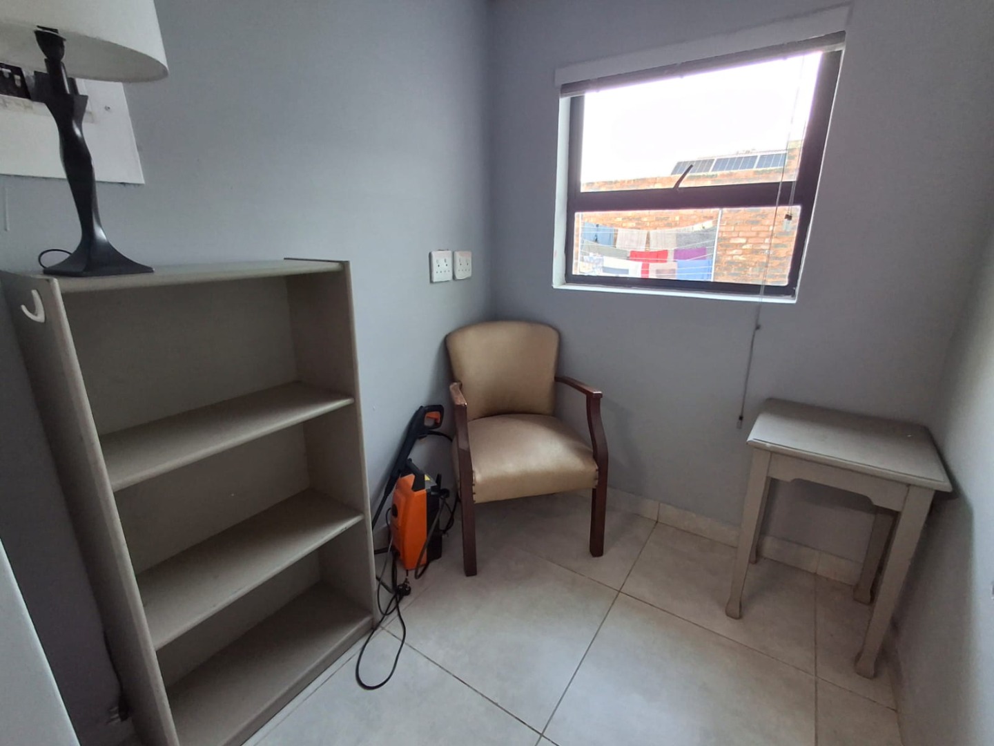 There are two well-sized bedrooms, both fitted with built-in cupboards. Two bathrooms are offered, including a full en-suite to the main bedroom.