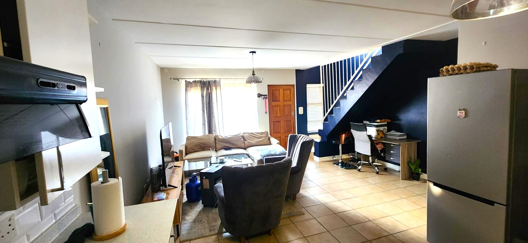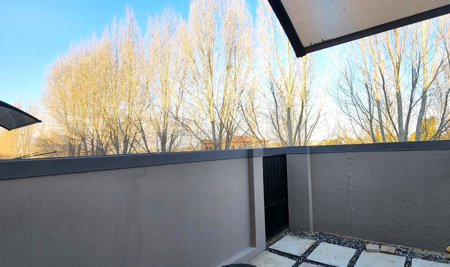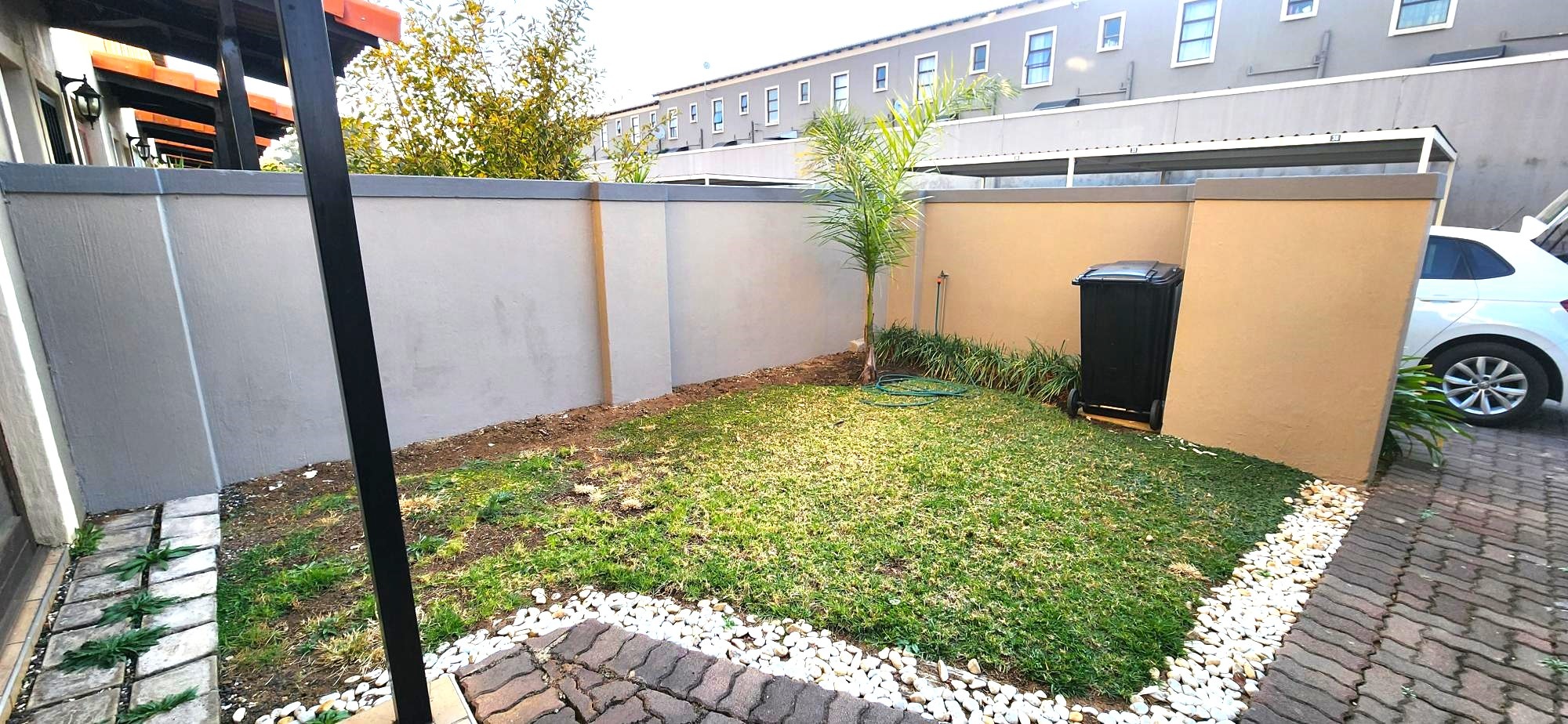 This charming residence features two generously sized bedrooms, both with built-in cupboards, and a full upstairs bathroom complimented by a convenient guest toilet on the lower level. The open-plan living area seamlessly connects the lounge to a modern kitchen equipped with sleek granite countertops. Outside, enjoy a private front garden and a cozy courtyard—perfect for entertaining or relaxing in peace. The property also includes a secure carport and visitor's parking for added convenience.