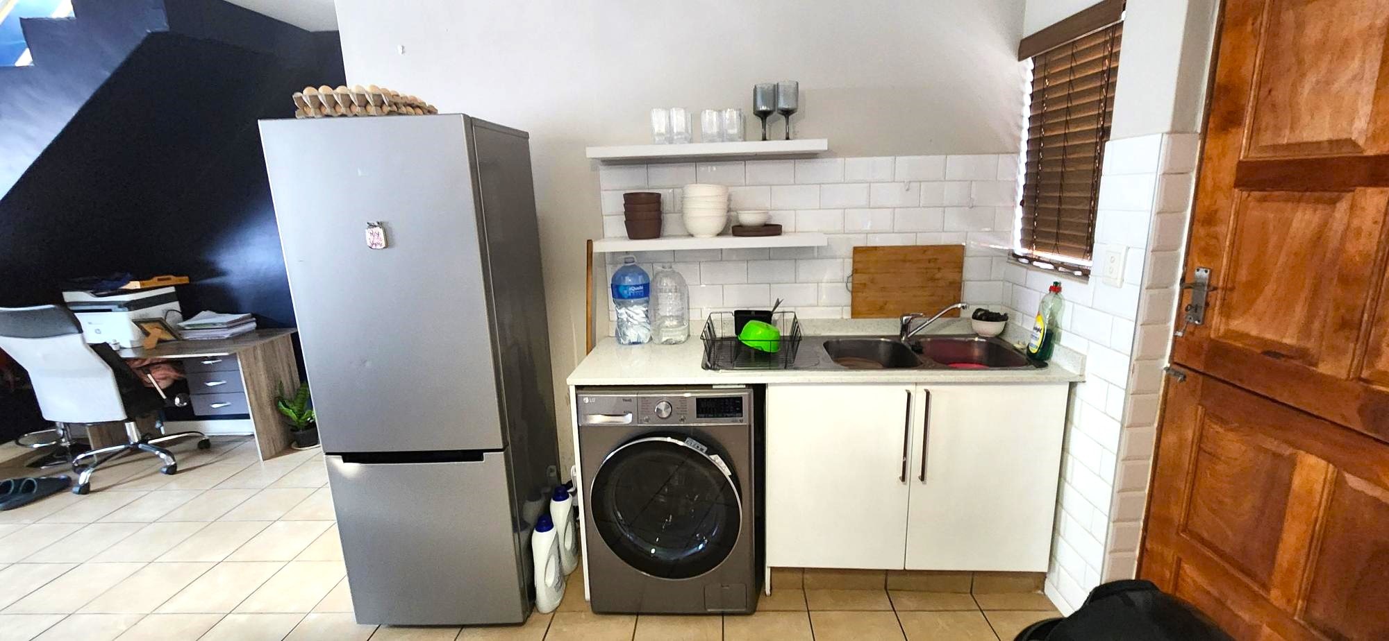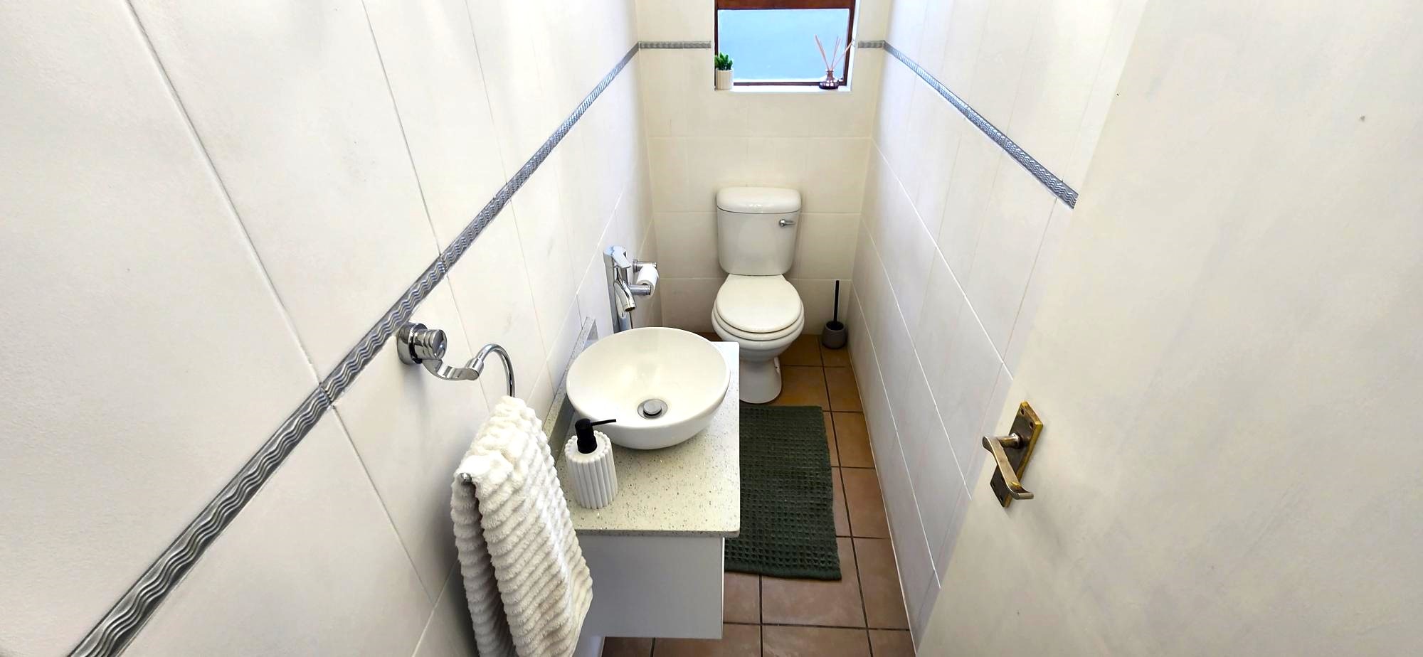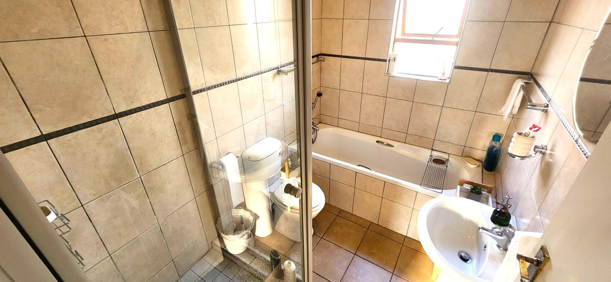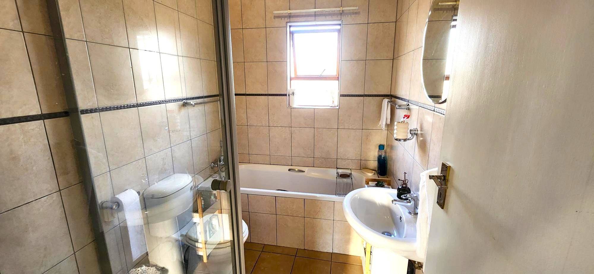 This charming residence features two generously sized bedrooms, both with built-in cupboards, and a full upstairs bathroom complimented by a convenient guest toilet on the lower level. The open-plan living area seamlessly connects the lounge to a modern kitchen equipped with sleek granite countertops. Outside, enjoy a private front garden and a cozy courtyard—perfect for entertaining or relaxing in peace. The property also includes a secure carport and visitor's parking for added convenience.