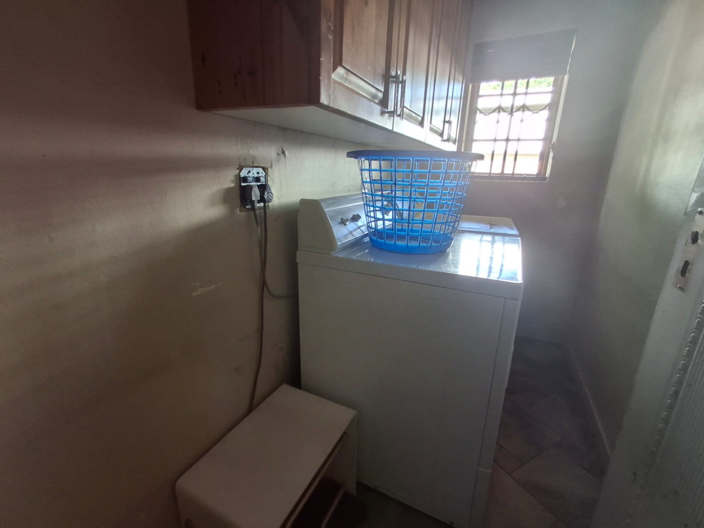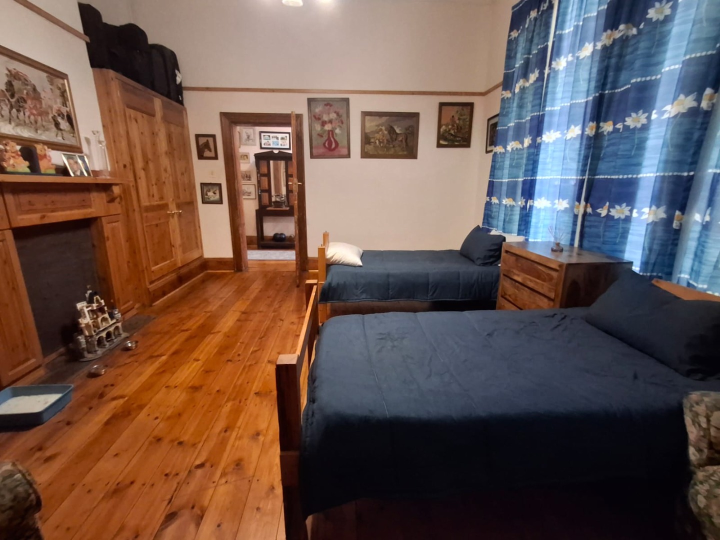 The main house is rich in character and features wooden floors throughout. A spacious living and dining area welcomes you, with two doors opening onto the front garden, creating a light and inviting atmosphere. The country-style kitchen is both practical and charming, fitted with ample built-in cupboards, granite countertops, a gas stove, eye-level oven, double sink, veggie sink, and space for a double-door fridge. A separate laundry with built-in cupboards adds convenience.