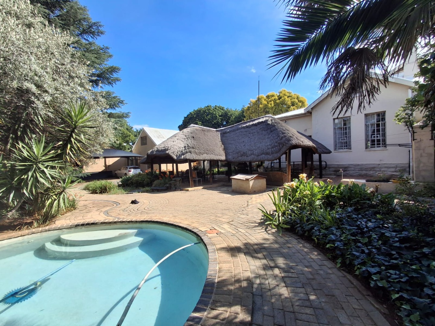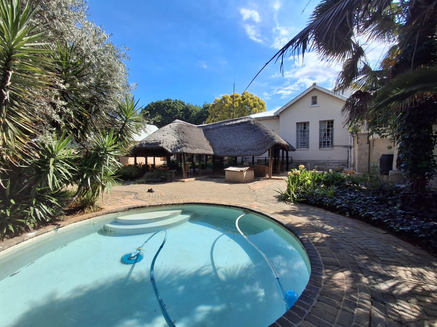 Outdoor living is ideal for entertaining, with a lapa featuring a built-in braai and a swimming pool set in a spacious garden. The property is well equipped with two boreholes, one fully operational and connected to a water tank.
