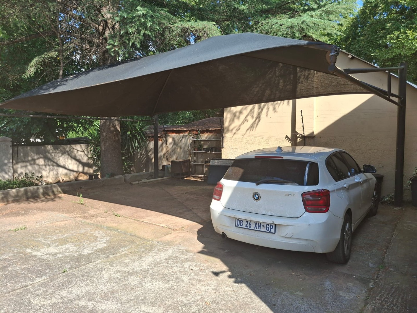 The separate flatlet, which can also be used as a home office, is accessed via a veranda and offers an open-plan living, dining, and kitchen area with three doors opening onto the veranda. It includes a spacious office or two bedrooms, a bathroom fitted with a shower, basin, and toilet, as well as a storeroom that can easily be converted into a single garage.