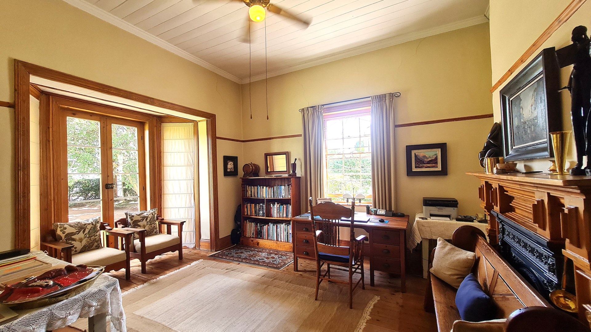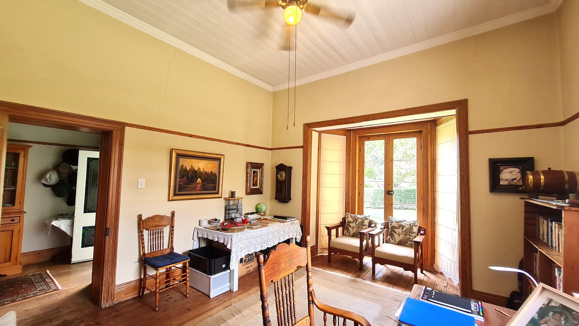 Designed for comfort, the residence features a well-appointed kitchen, dedicated dining room, and a comfortable lounge, complemented by a separate family TV room. Enjoy the warmth of a fireplace and the convenience of air conditioning. Elegant pressed ceilings add classic charm throughout.