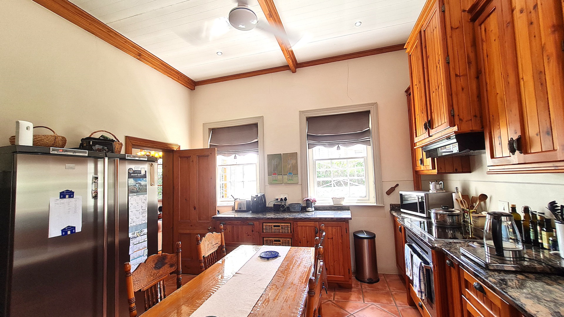Security is paramount, with 24-hour security, an alarm system, access gate, security gates, and burglar bars within a totally walled perimeter. Fibre-ready, this home in Heidelberg Central combines country living with suburban convenience, offering a tranquil yet accessible lifestyle.