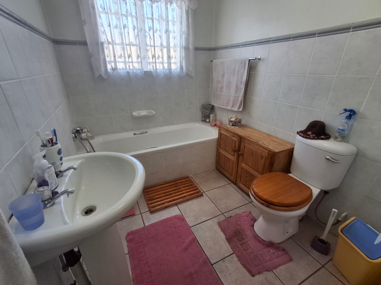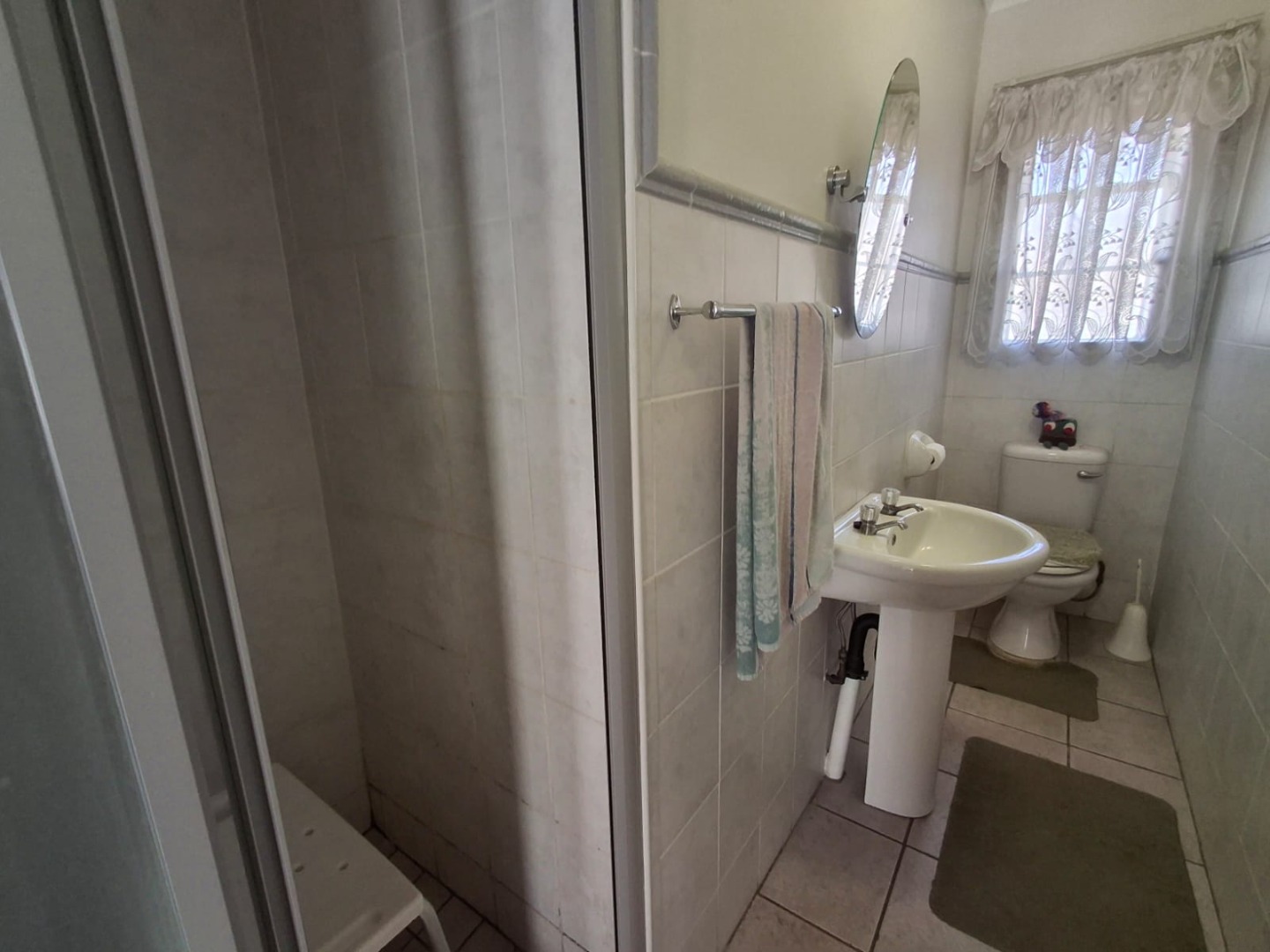 Three well-sized bedrooms with built-in cupboards. The main bedroom is spacious with ample cupboard space and an en suite bathroom. The guest bathroom offers a shower, basin, and toilet.