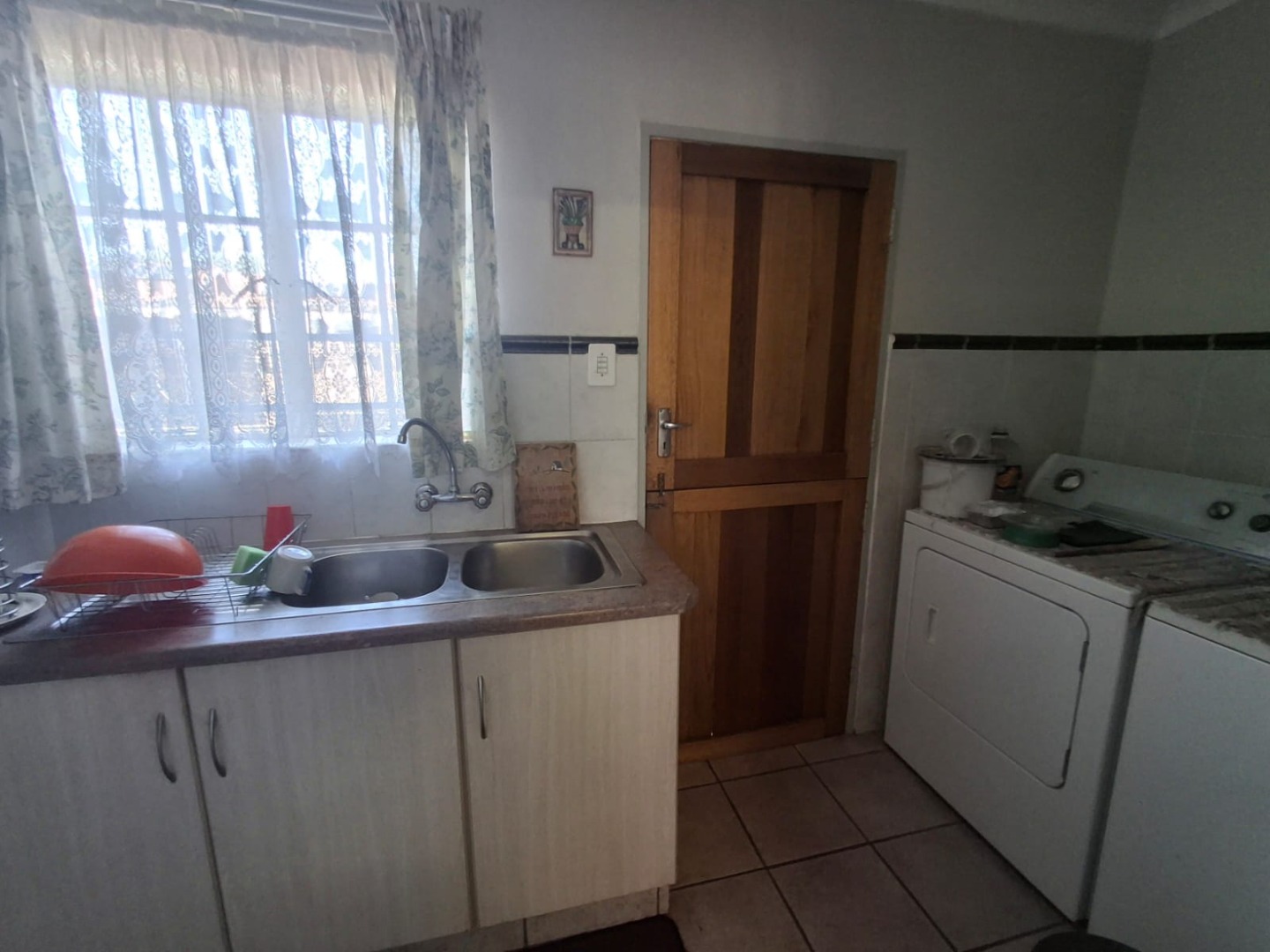 Spacious and sunny open-plan living, dining, and kitchen area with a separate scullery. Doors from the dining room lead to a covered and secure entertainment area with a built-in braai, perfect for family gatherings and relaxation. Low maintenance garden.