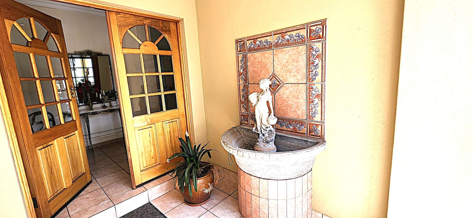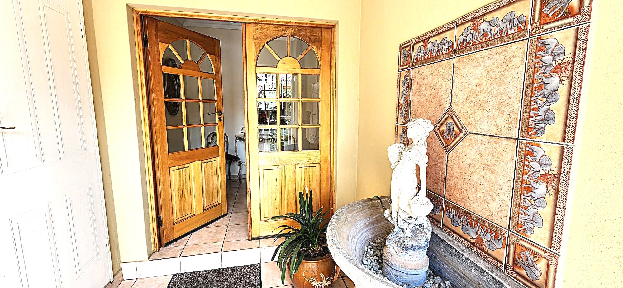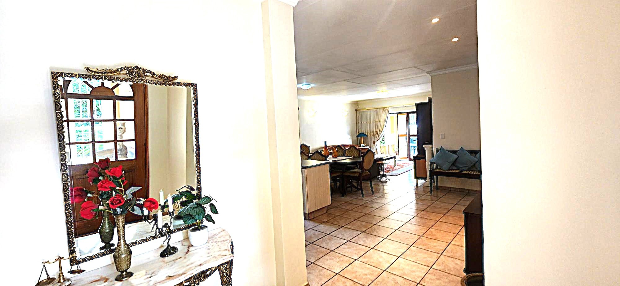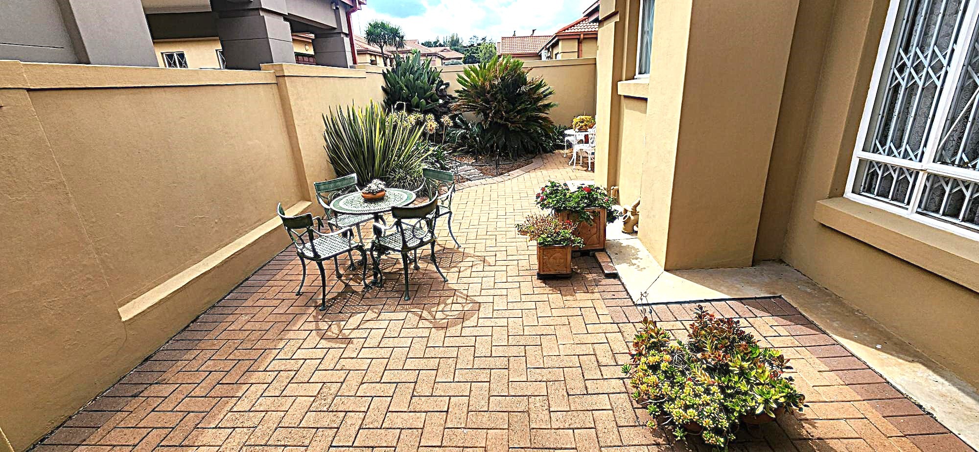 Outdoor living is a highlight, with a private garden, a dedicated patio area, and a built-in braai within a convenient braai room – perfect for year-round entertaining. The property boasts extensive security features, including 24-hour security, an alarm system, electric fencing, burglar bars, security gates, and a totally walled perimeter, ensuring peace of mind. Furthermore, the home benefits from fibre internet connectivity and a spacious driveway leading to four garages, providing secure parking and additional storage. Pets are permitted, adding to the family-friendly appeal of this secure complex.