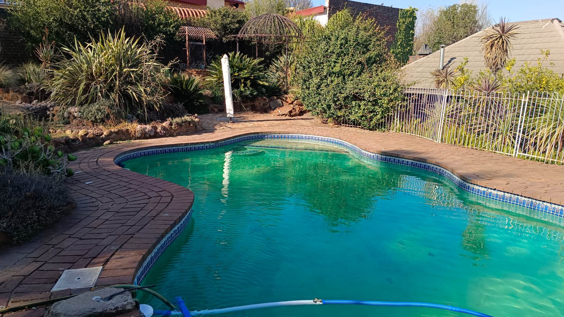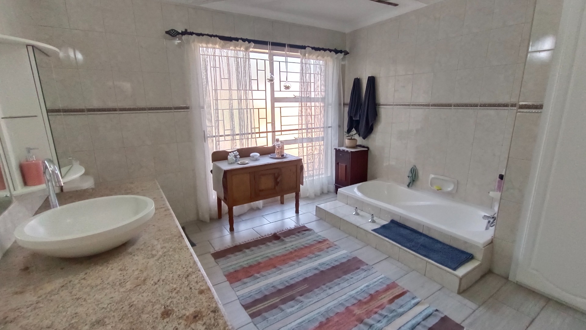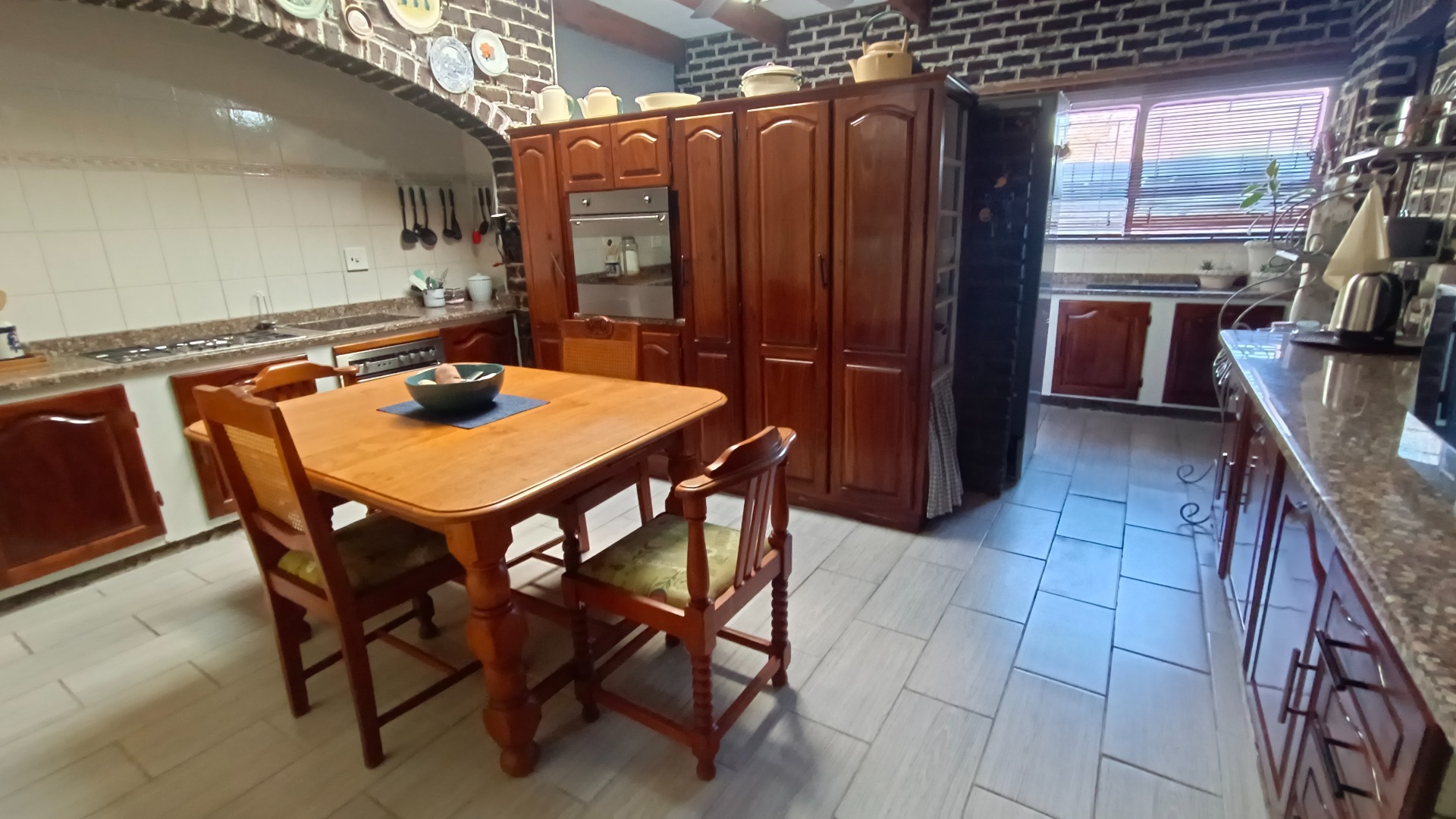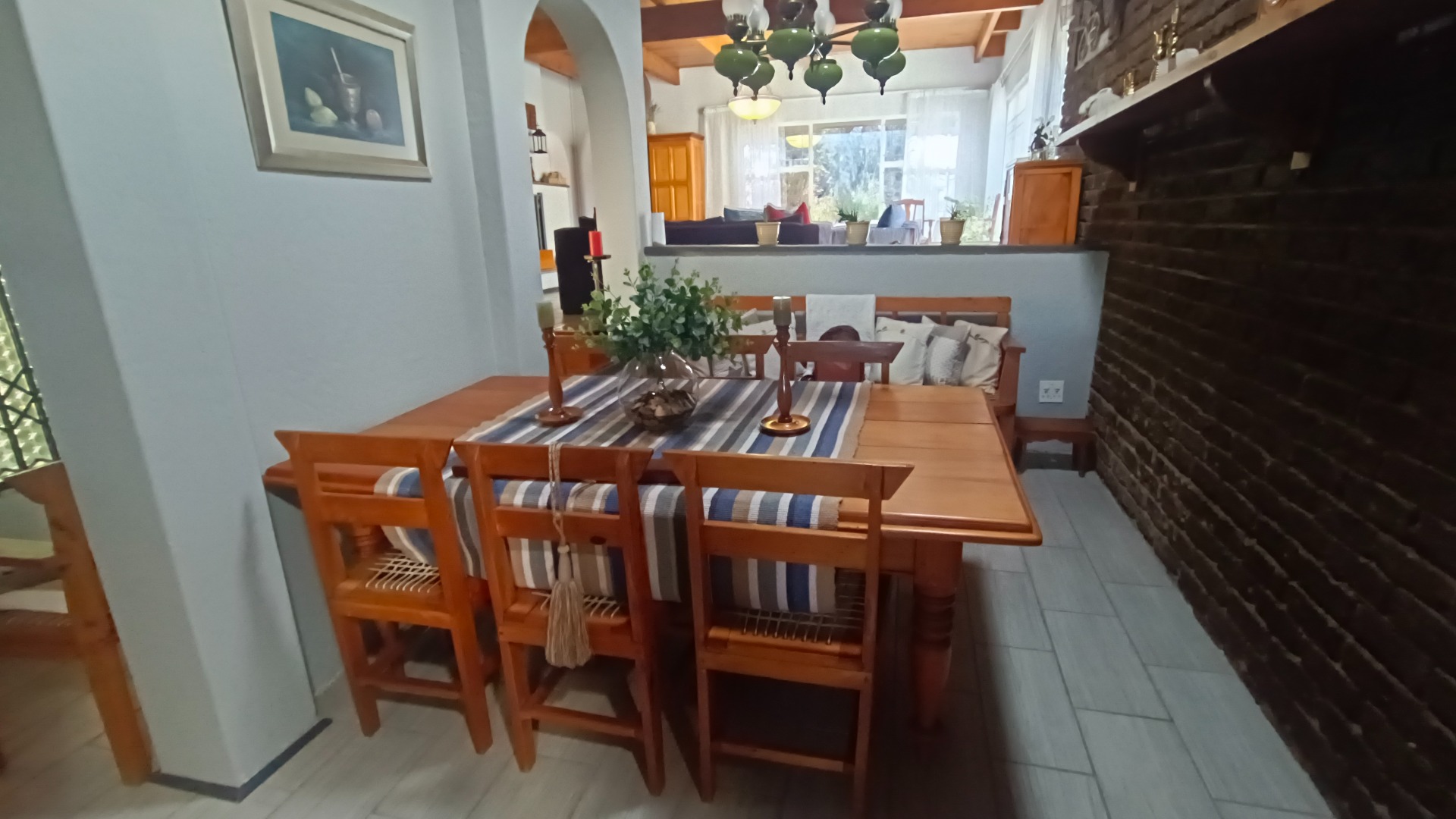 Family orientated family home for entertaining and enjoying family time together. Open plan family room and dining room with sliding doors that open to the gardens, pool and entertainment area. Lovely kitchen has ample built in cupboards, granite stops, gas stove and electric stove and eye level electric oven. Separate scullery accommodates the much needed appliances. Four well size bedrooms and two bathrooms. Main bedroom with en suite bathroom and sliding doors to a sunny court yard. Upstairs a spacious family room has a balcony with a beautiful view and guest toilet. Study.