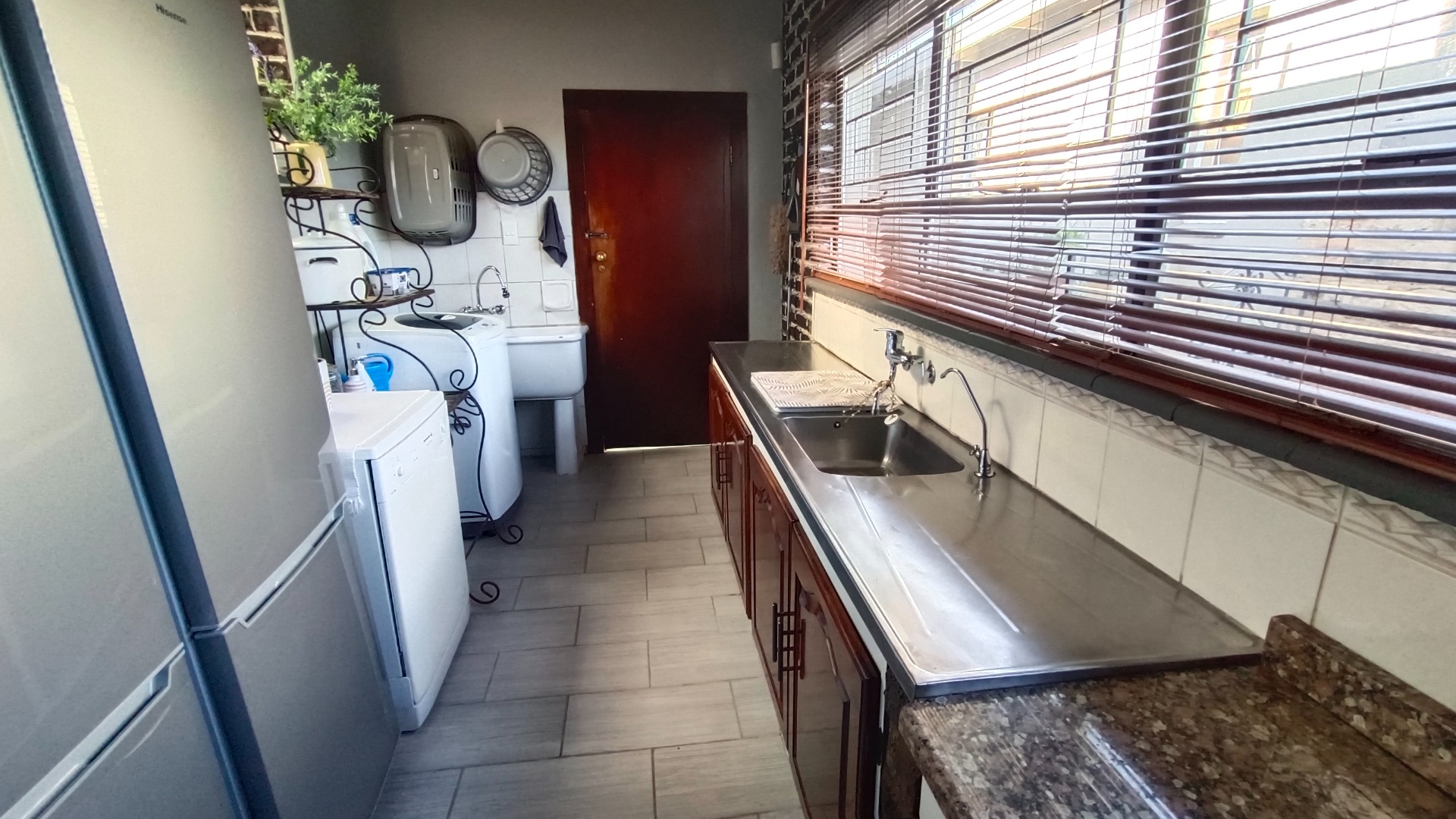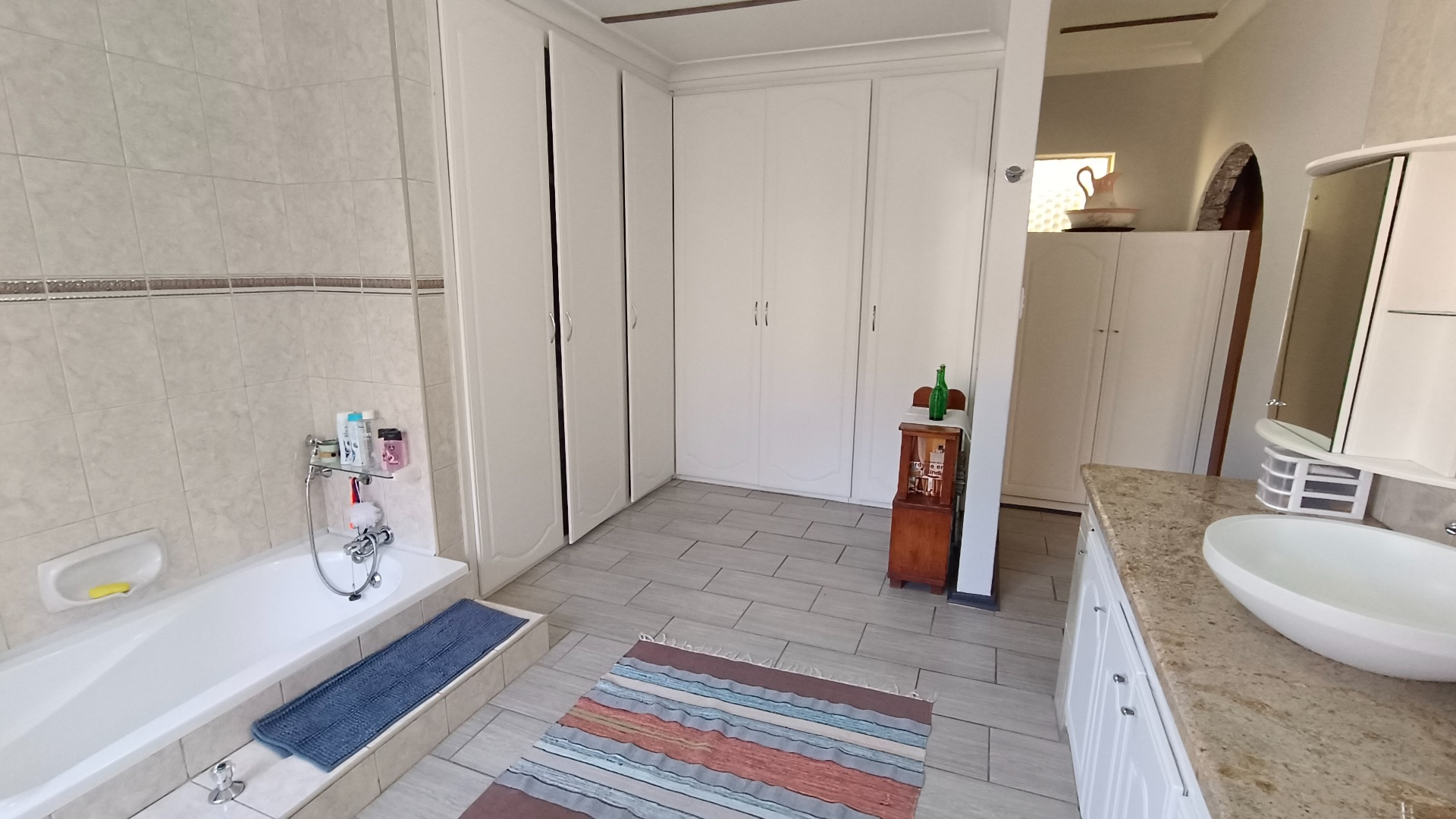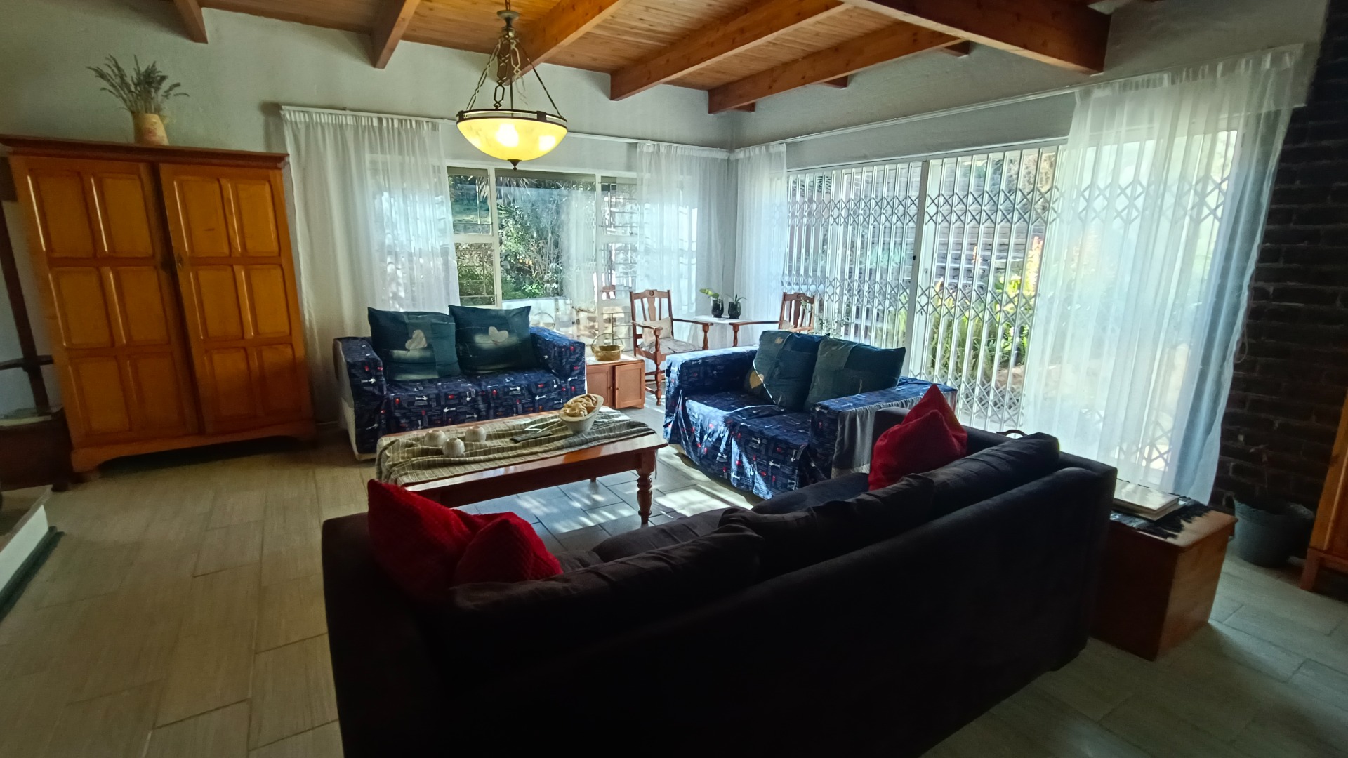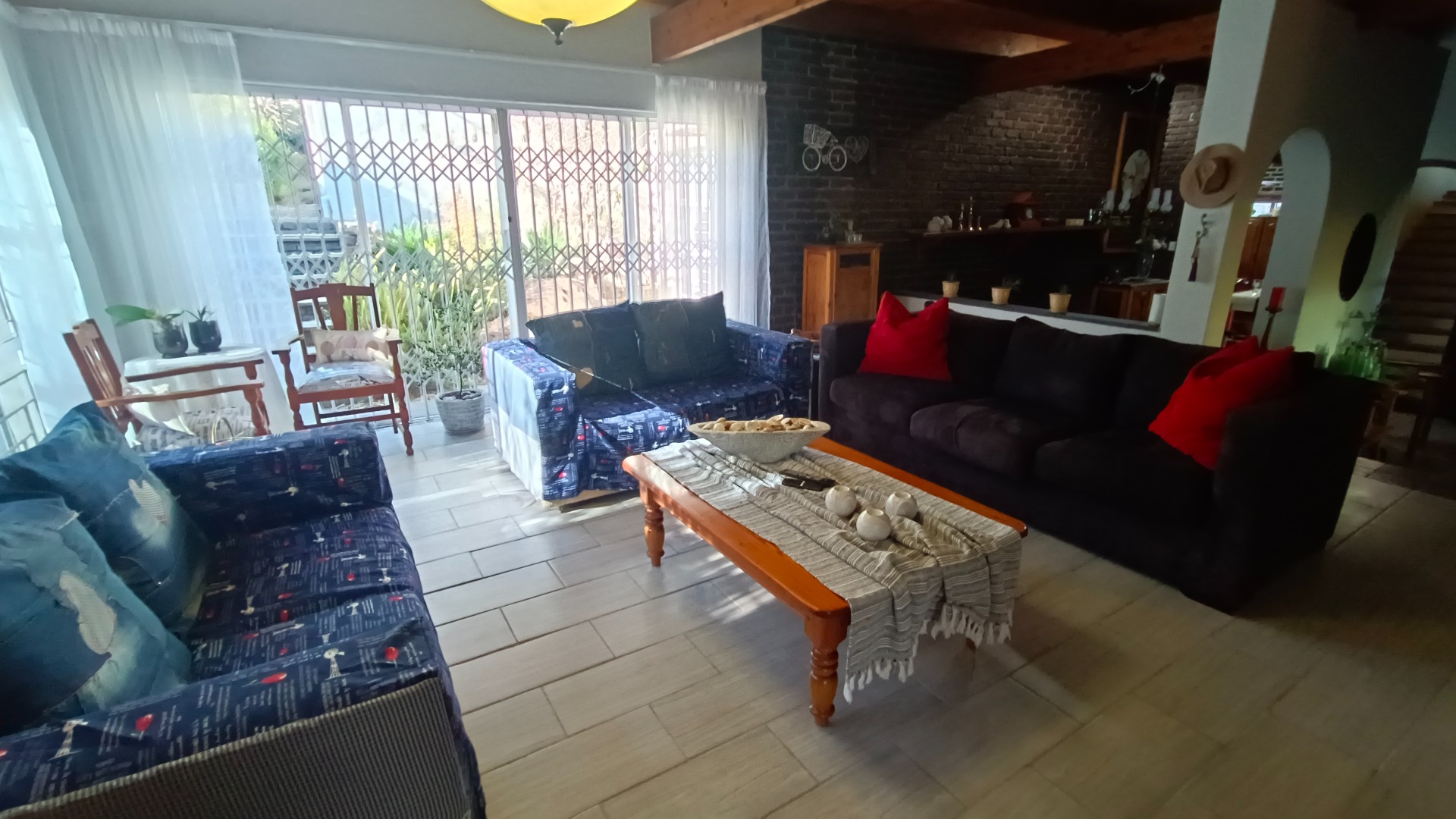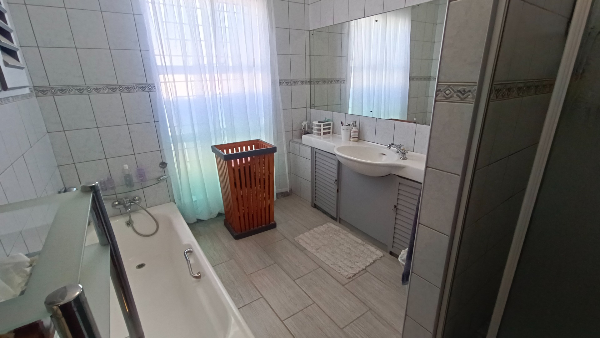 Family orientated family home for entertaining and enjoying family time together. Open plan family room and dining room with sliding doors that open to the gardens, pool and entertainment area. Lovely kitchen has ample built in cupboards, granite stops, gas stove and electric stove and eye level electric oven. Separate scullery accommodates the much needed appliances. Four well size bedrooms and two bathrooms. Main bedroom with en suite bathroom and sliding doors to a sunny court yard. Upstairs a spacious family room has a balcony with a beautiful view and guest toilet. Study.