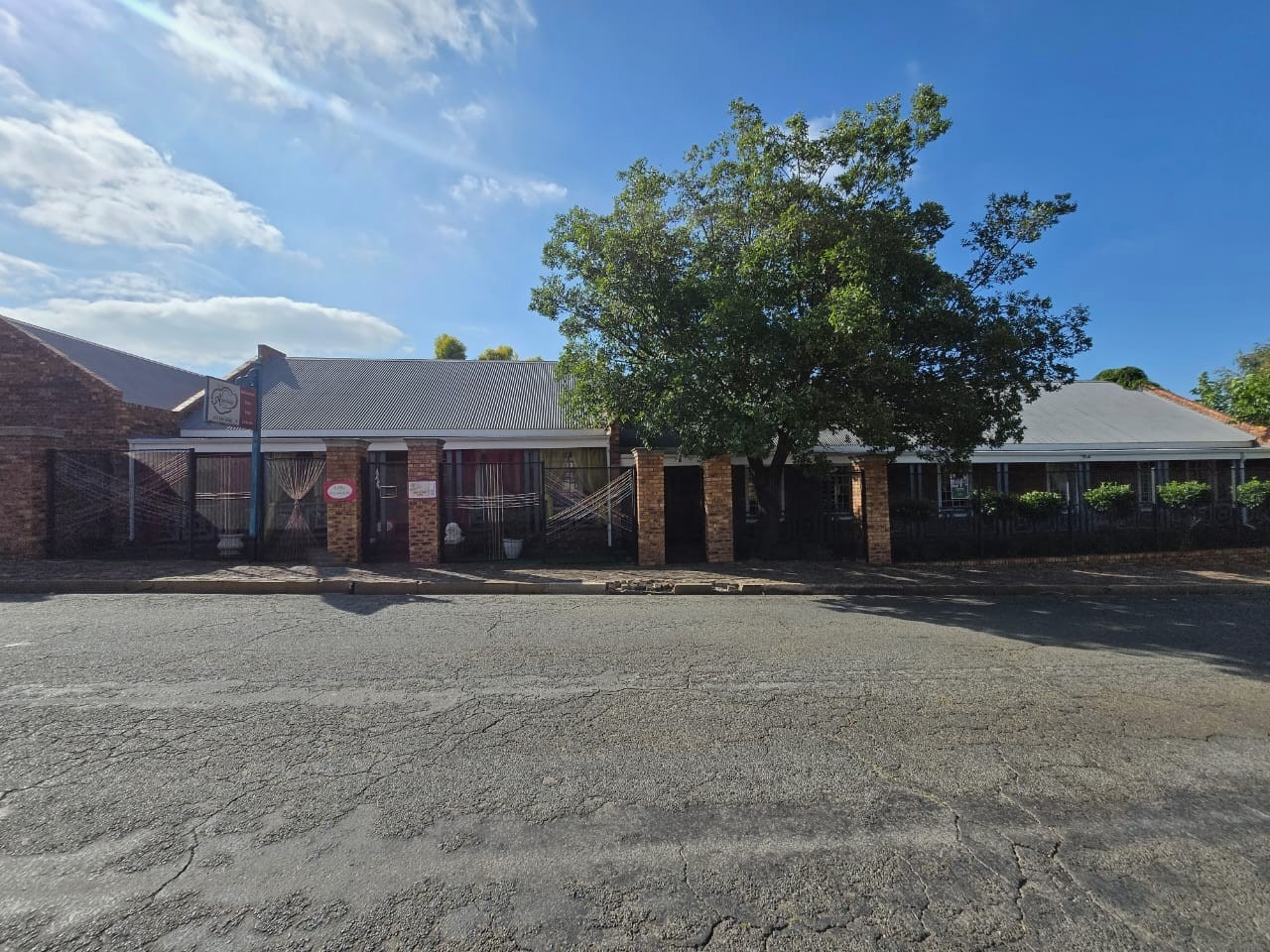 An exceptional commercial opportunity awaits in the heart of Heidelberg Central, offering a versatile property perfectly suited for a range of business ventures. This single-story building, spanning a generous 565 square meters of floor space on a 575 square meter erf, presents a robust brick exterior complemented by a durable corrugated iron roof. The property boasts a well-maintained facade with a covered veranda, established landscaping, and mature trees providing natural shade, enhancing its curb appeal.