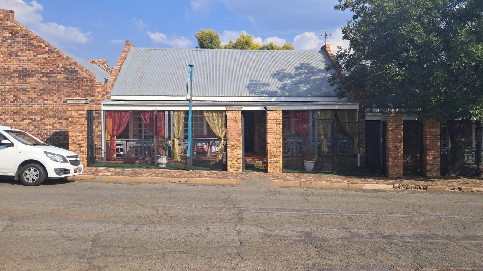 An exceptional commercial opportunity awaits in the heart of Heidelberg Central, offering a versatile property perfectly suited for a range of business ventures. This single-story building, spanning a generous 565 square meters of floor space on a 575 square meter erf, presents a robust brick exterior complemented by a durable corrugated iron roof. The property boasts a well-maintained facade with a covered veranda, established landscaping, and mature trees providing natural shade, enhancing its curb appeal.