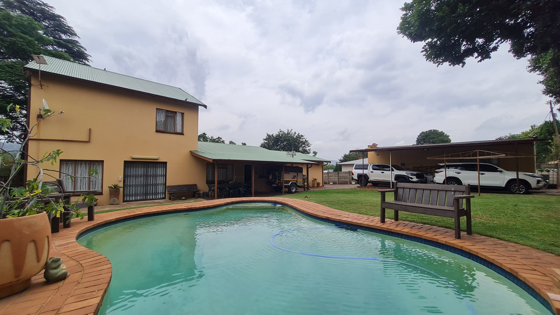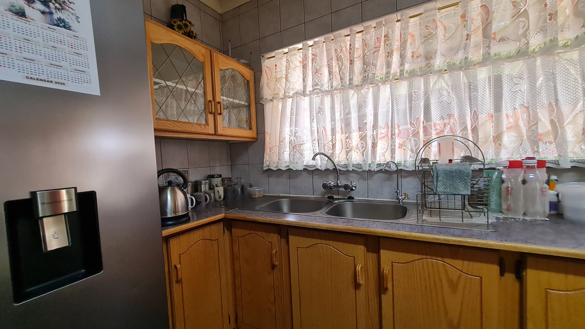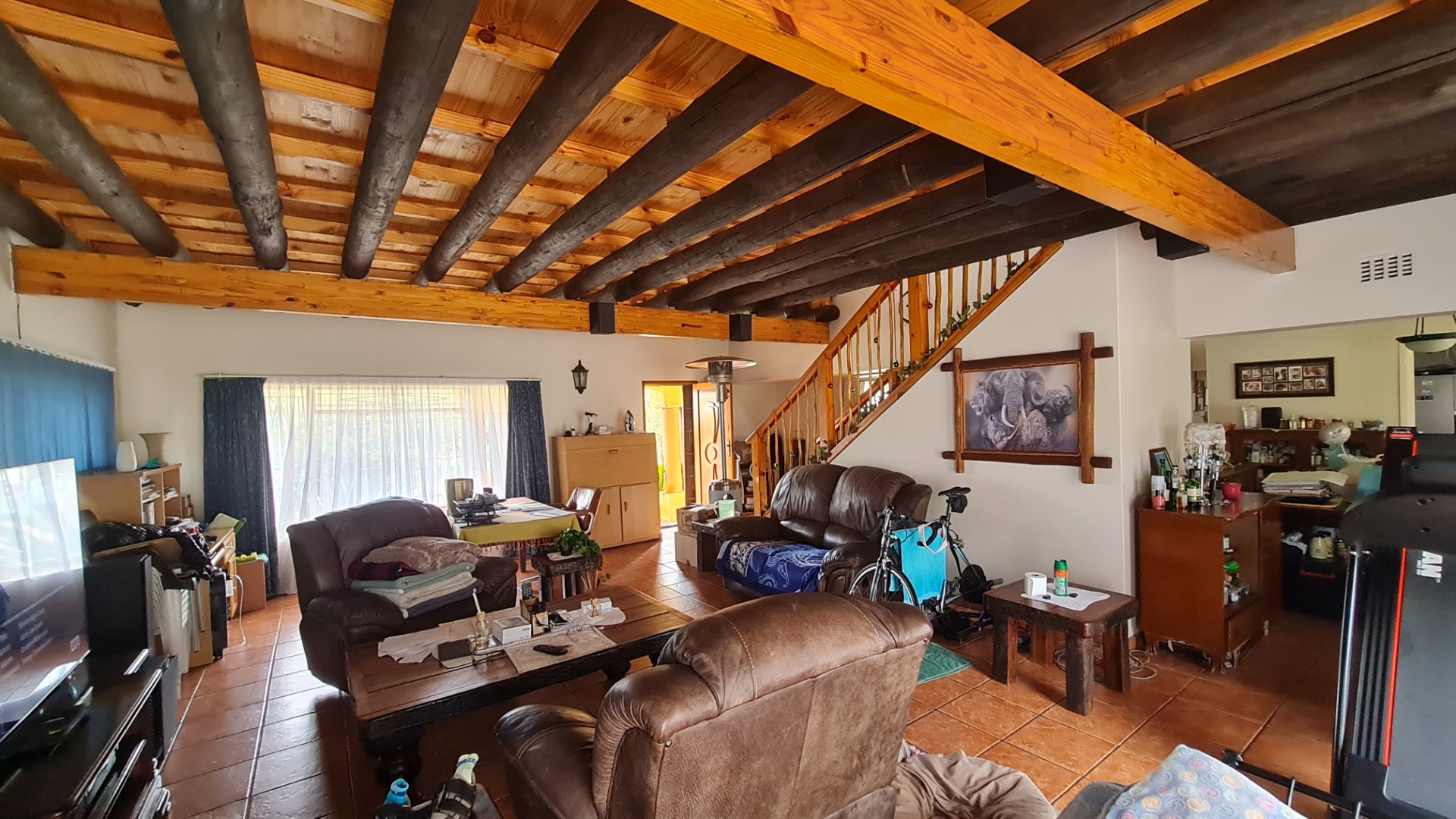 Discover this inviting two-story family home in Heidelberg Ext 5, perfect for a relaxed lifestyle. Inside, enjoy a spacious living area with a distinctive wooden beam ceiling, a second lounge, and a dedicated dining room. The functional kitchen offers ample cabinets and a tiled backsplash, ready for your culinary creations.