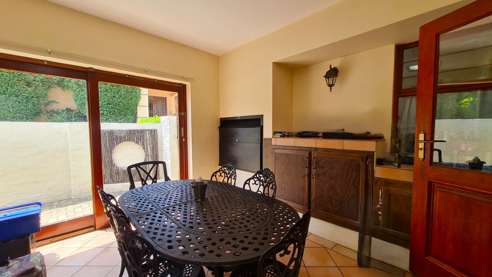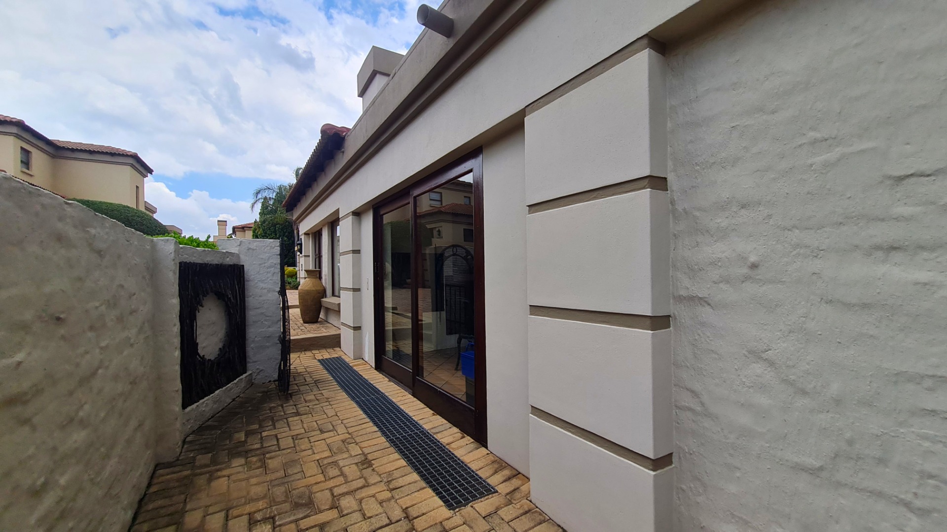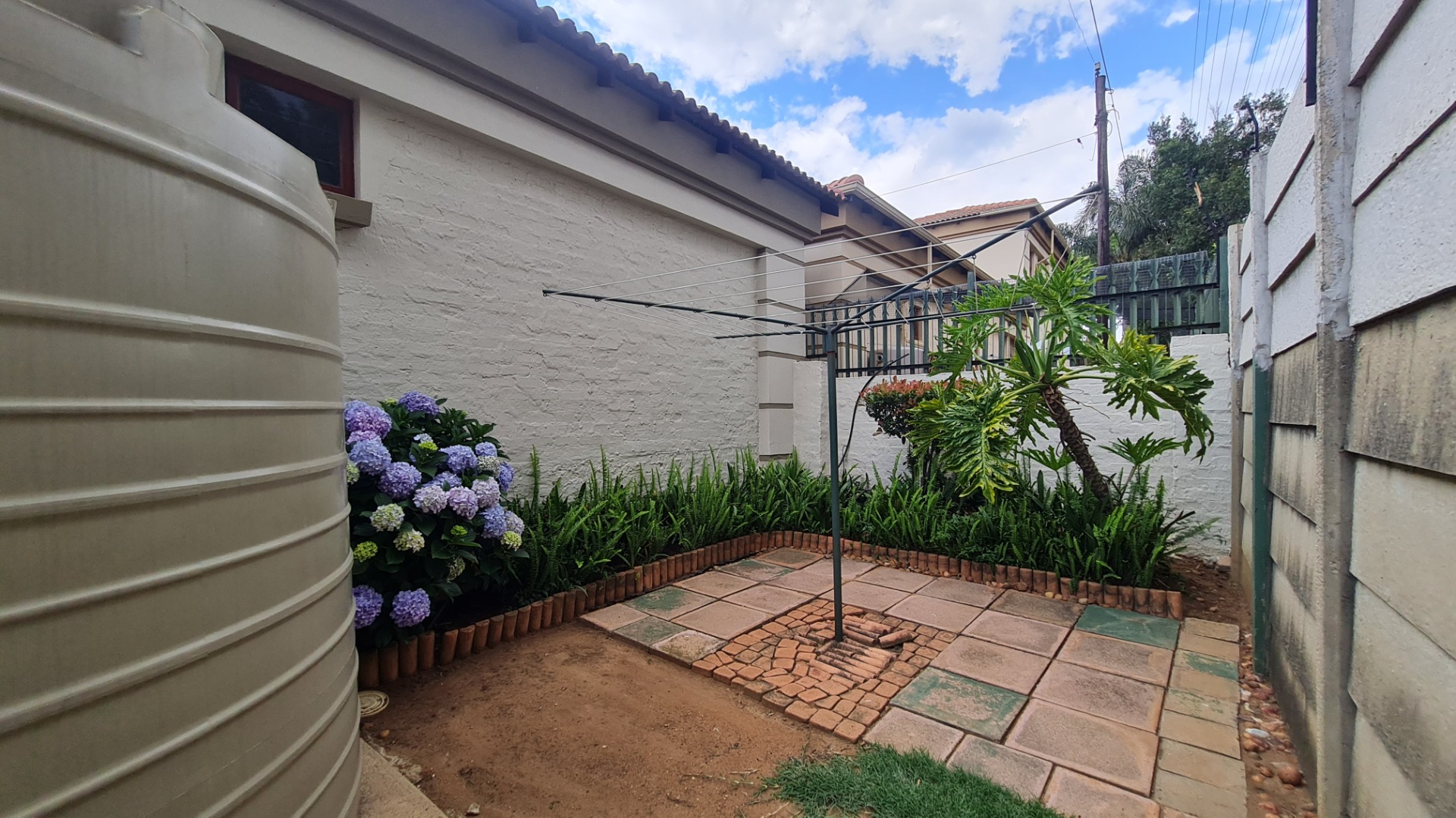 Accommodation comprises three well-appointed bedrooms and three bathrooms, including a private en-suite and a guest toilet. The meticulously maintained outdoor spaces feature neat brick paving and a garden, suitable for pet owners. Security is paramount, with the residence benefiting from its location within a gated community and security complex, further enhanced by an alarm system, electric fencing, and an access gate. The property is totally walled, ensuring privacy. Equipped with water tanks and fibre ready, this home addresses modern lifestyle demands.