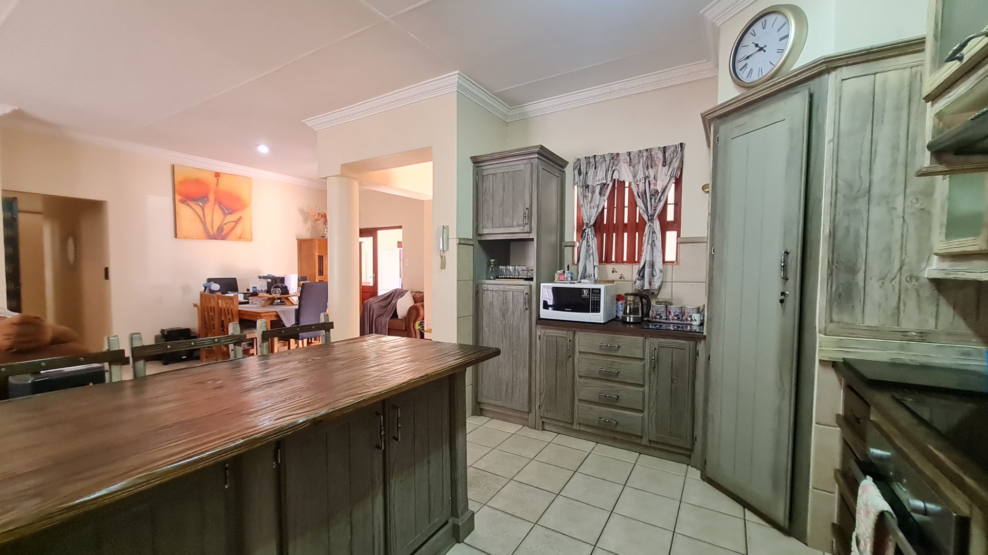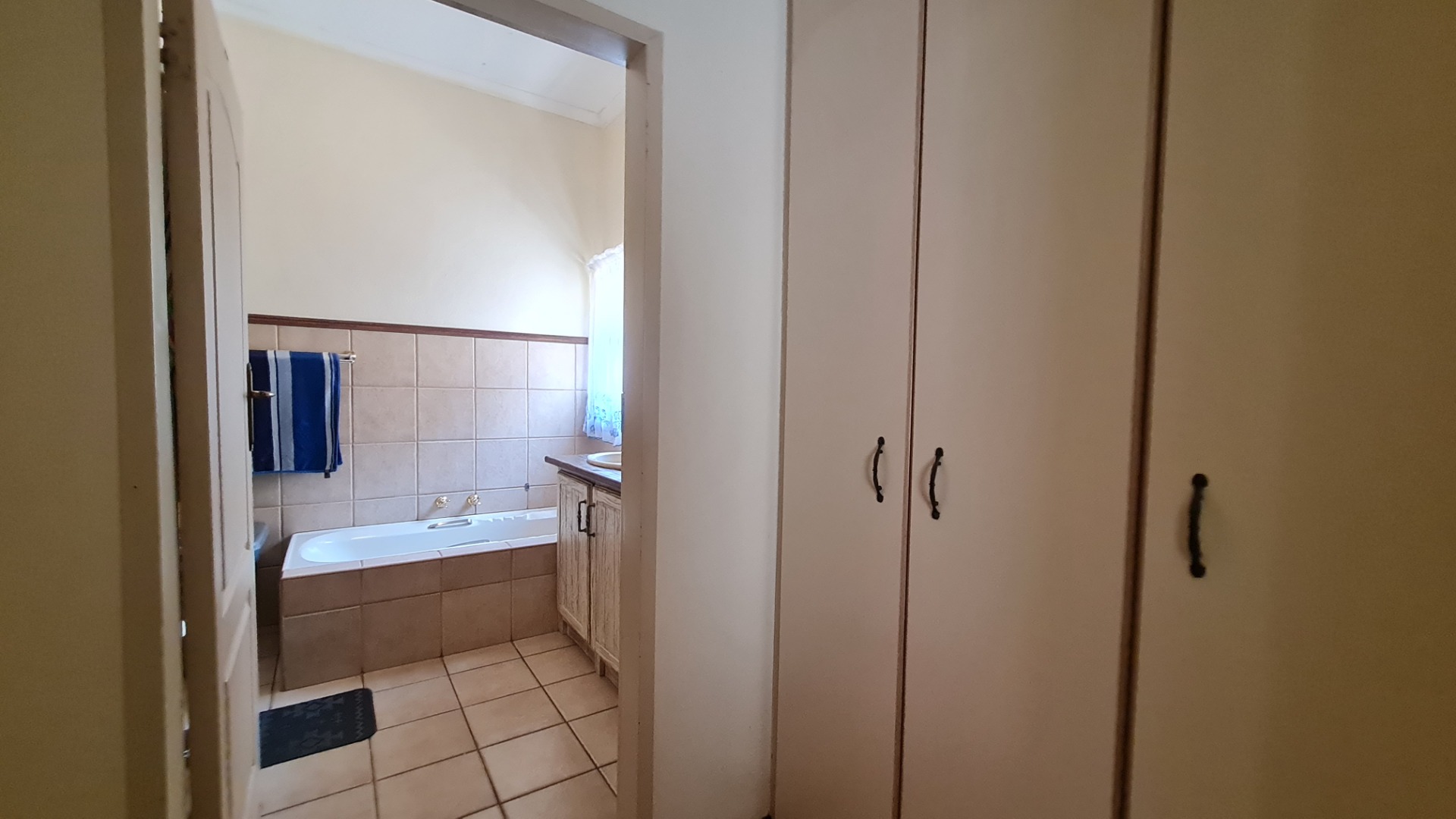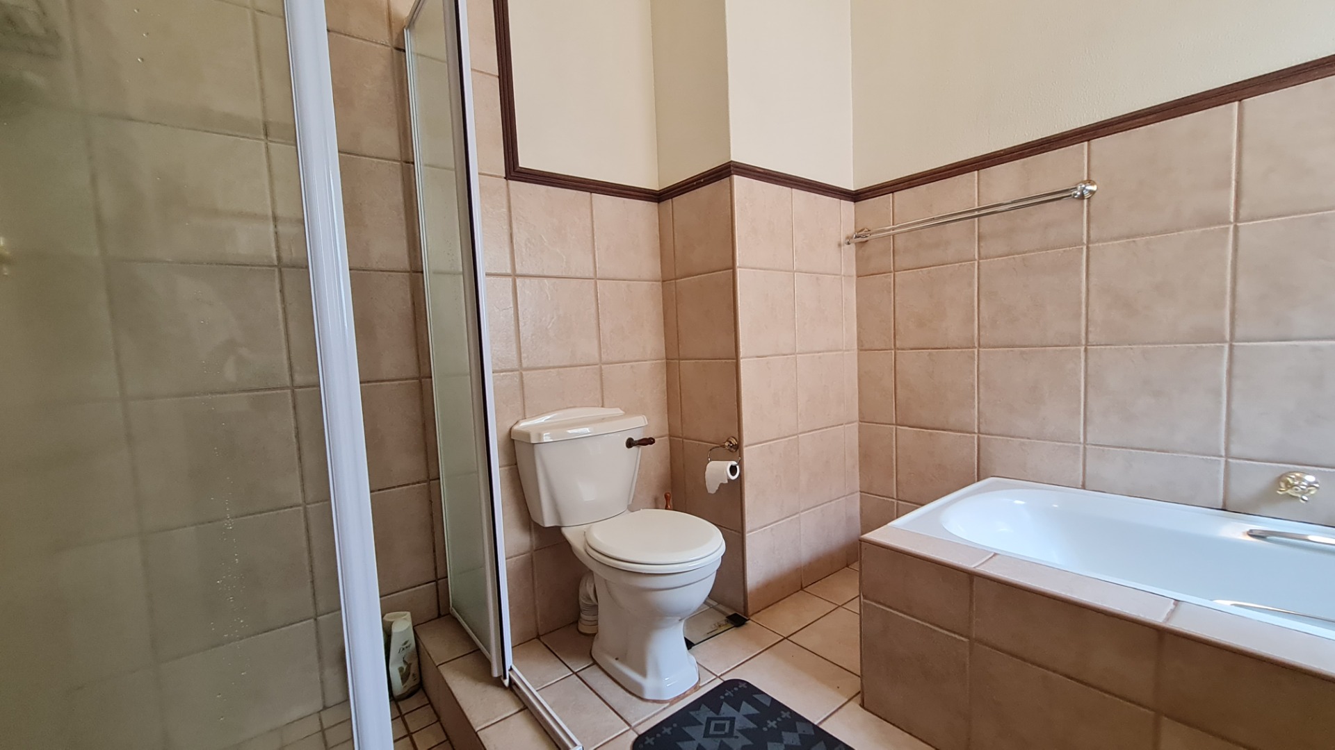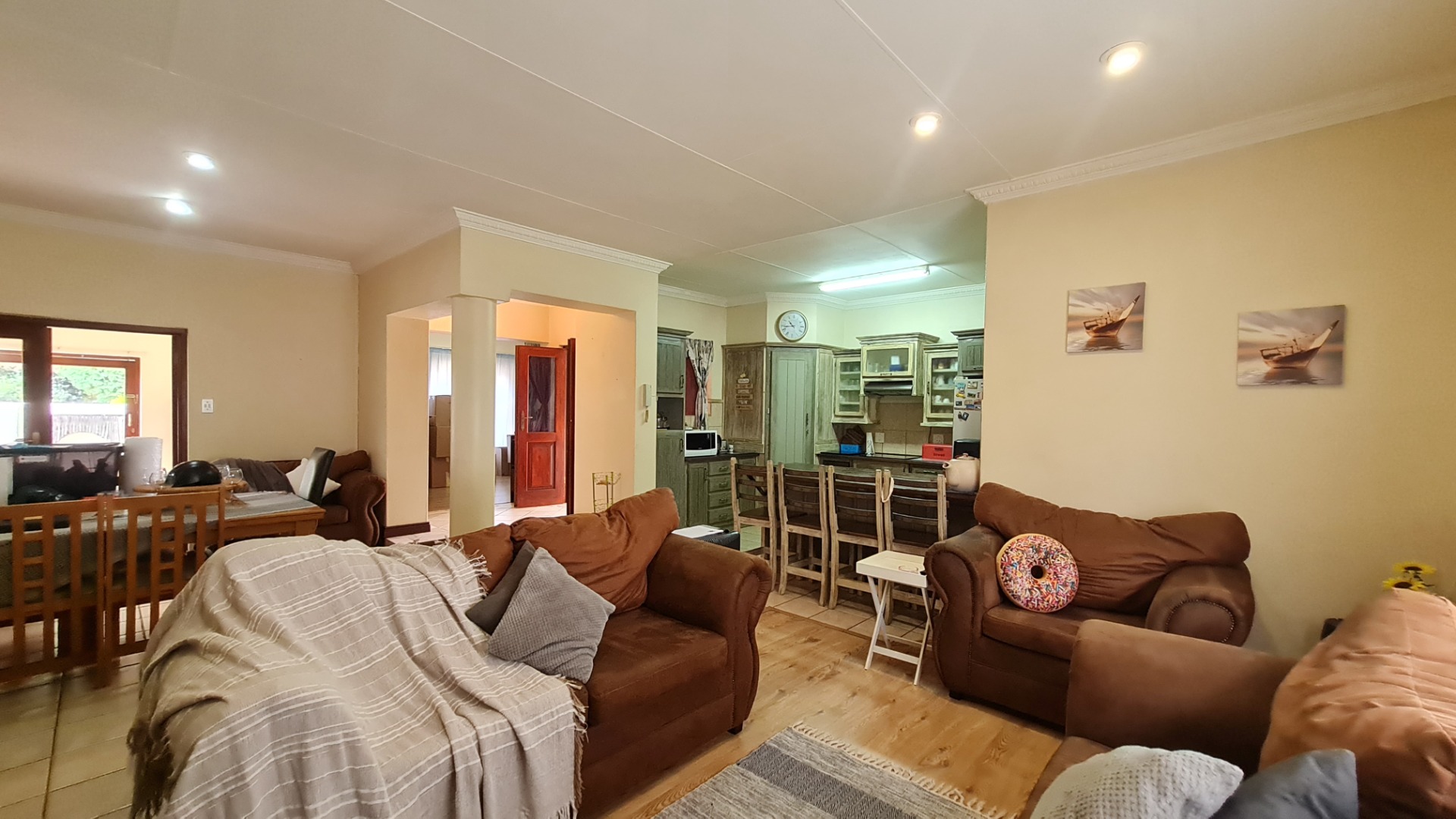 Accommodation comprises three well-appointed bedrooms and three bathrooms, including a private en-suite and a guest toilet. The meticulously maintained outdoor spaces feature neat brick paving and a garden, suitable for pet owners. Security is paramount, with the residence benefiting from its location within a gated community and security complex, further enhanced by an alarm system, electric fencing, and an access gate. The property is totally walled, ensuring privacy. Equipped with water tanks and fibre ready, this home addresses modern lifestyle demands.