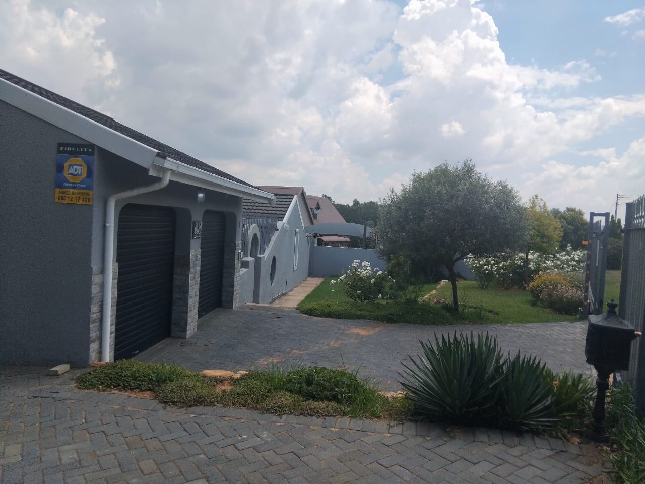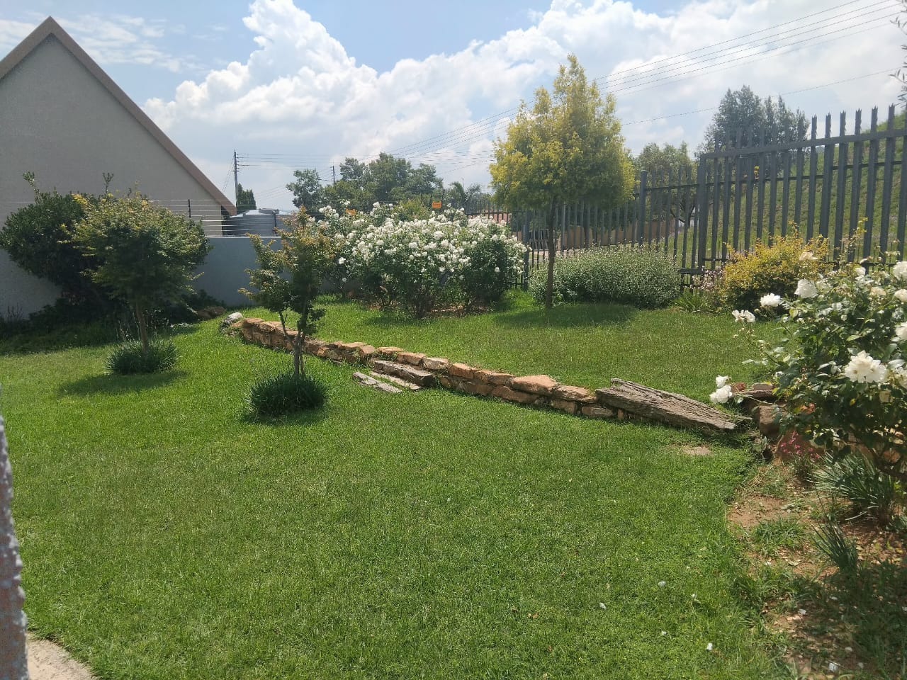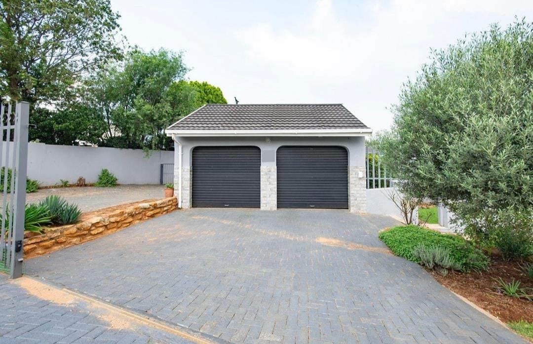 Spanning an impressive 1288 sqm erf, the property offers extensive outdoor amenities. The meticulously maintained garden features lush lawns, mature trees, flowering plants, and decorative stone borders, providing a serene environment. A private patio offers an ideal setting for outdoor enjoyment, complemented by ample paving. Practical elements include two garages, additional storage, and outside toilets, enhancing convenience.