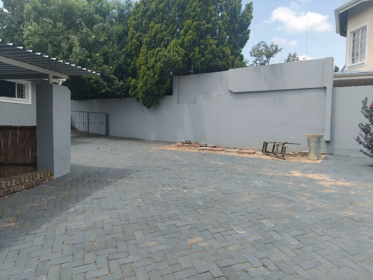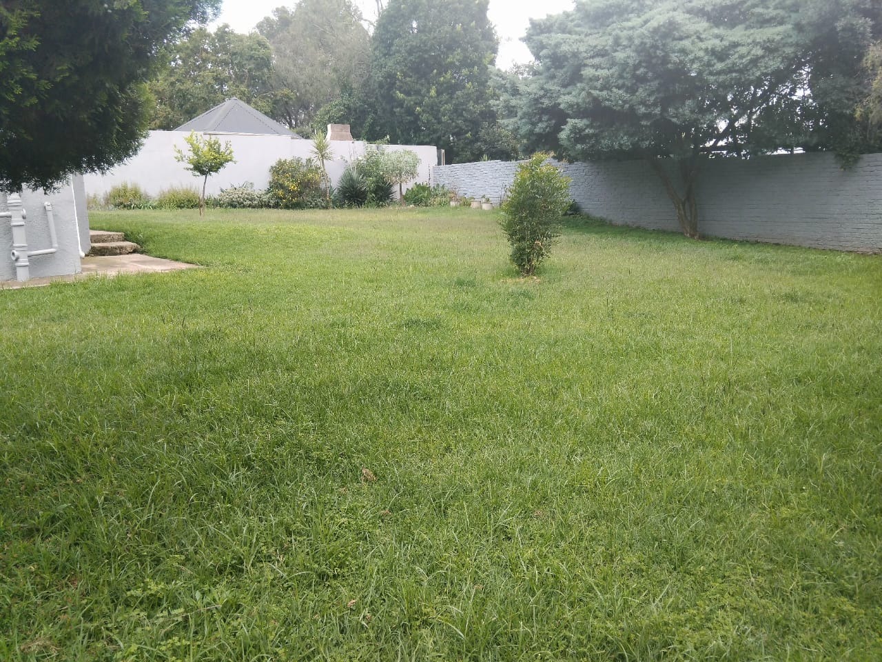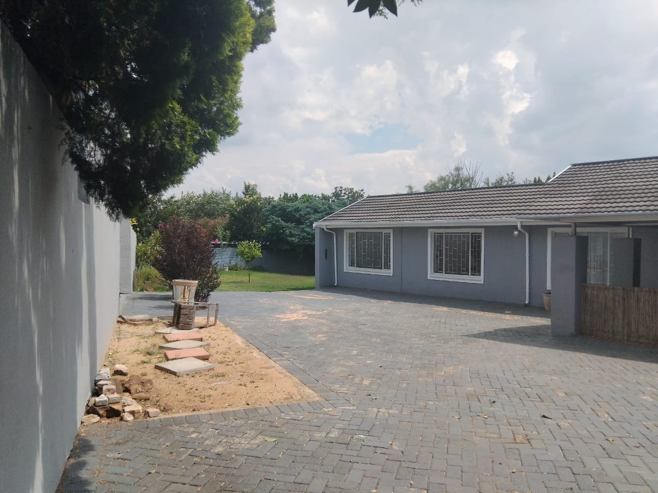 Spanning an impressive 1288 sqm erf, the property offers extensive outdoor amenities. The meticulously maintained garden features lush lawns, mature trees, flowering plants, and decorative stone borders, providing a serene environment. A private patio offers an ideal setting for outdoor enjoyment, complemented by ample paving. Practical elements include two garages, additional storage, and outside toilets, enhancing convenience.