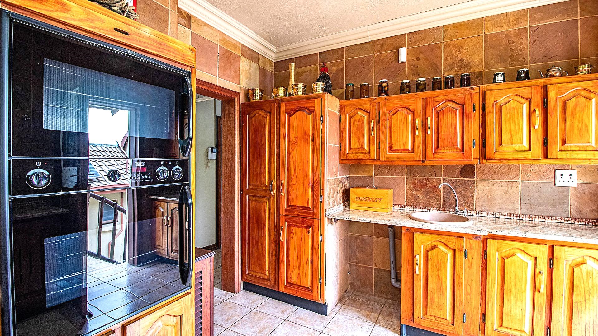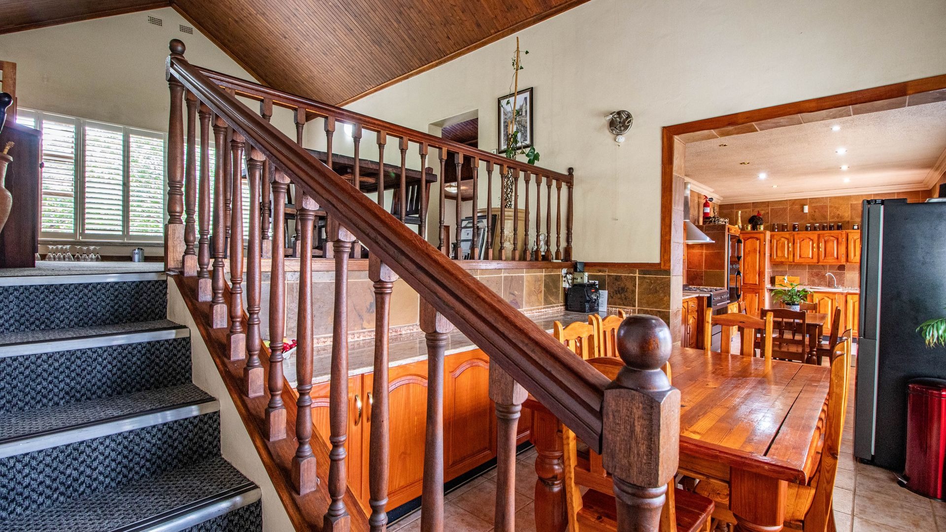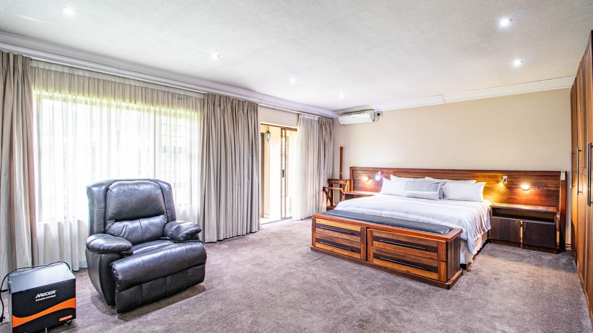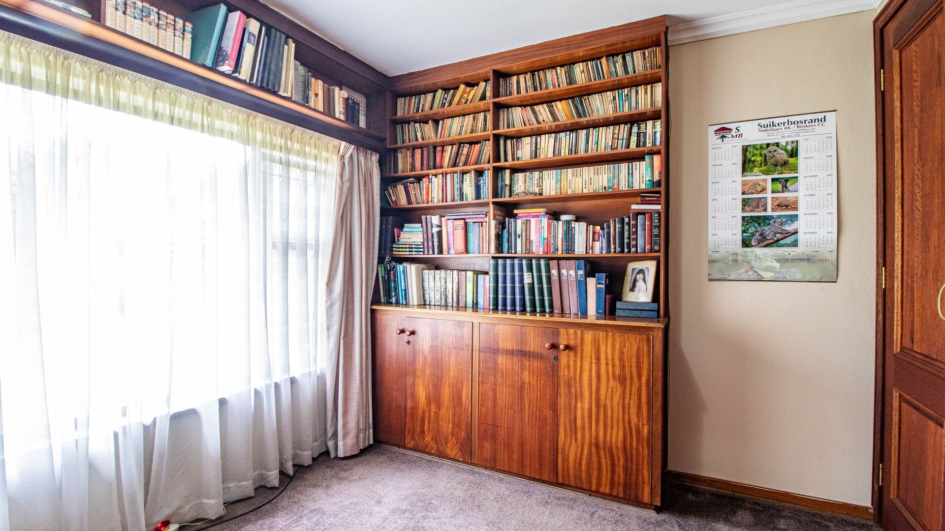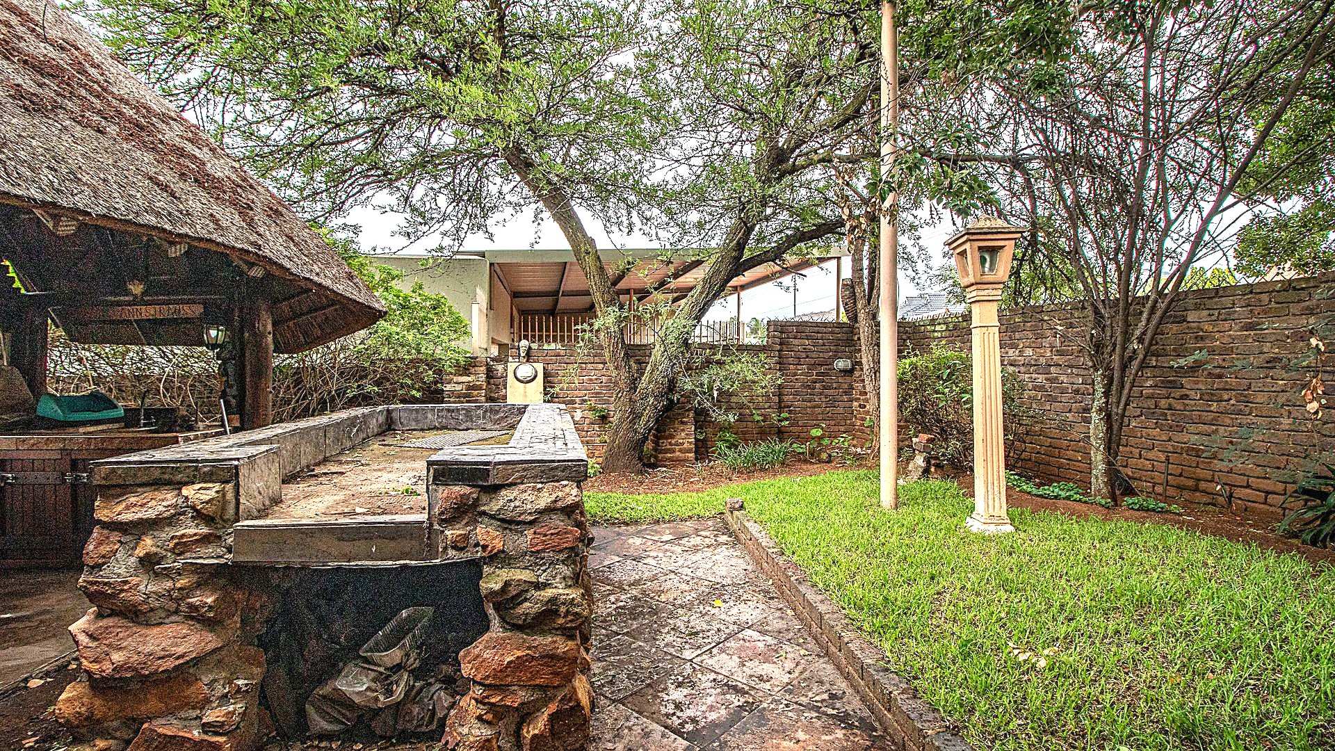 This residence comprises four spacious bedrooms and four bathrooms, two of which are en-suite, ensuring comfort and privacy for all occupants. A dedicated study provides an ideal space for work or quiet contemplation. The property extends its appeal outdoors with a large 1469 sqm erf, featuring a sparkling swimming pool, a lapa, and a built-in braai, perfect for outdoor entertaining. Additional amenities include a built-in bar, air conditioning, along with domestic rooms. The home is further enhanced by modern conveniences such as fibre connectivity, a battery inverter, and water tanks, ensuring a sustainable and connected lifestyle. With three garages and four parking spaces, there is ample room for vehicles. This suburban and country living property offers a blend of comfort, space, and security.