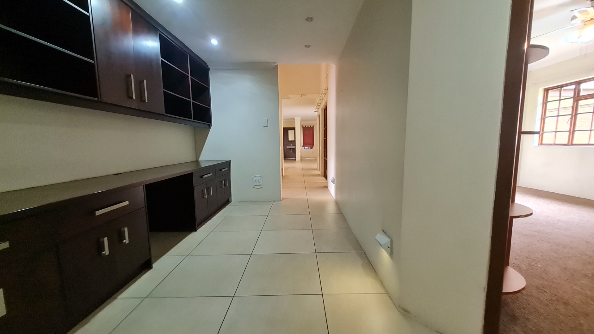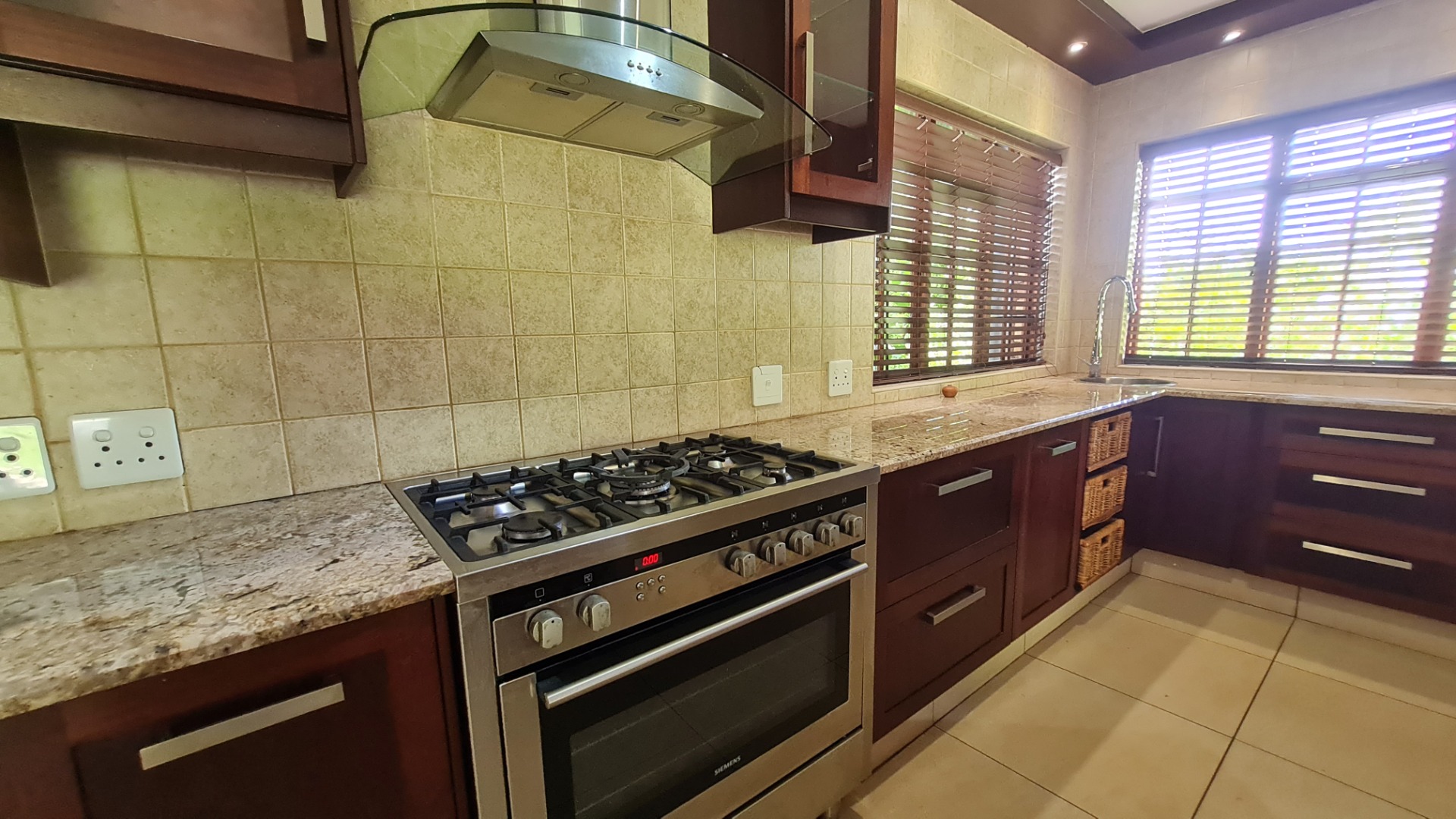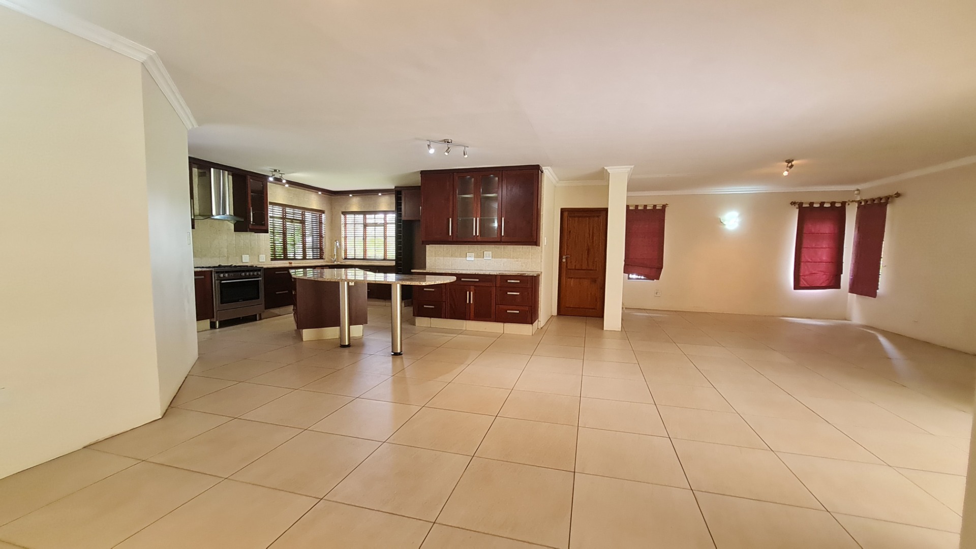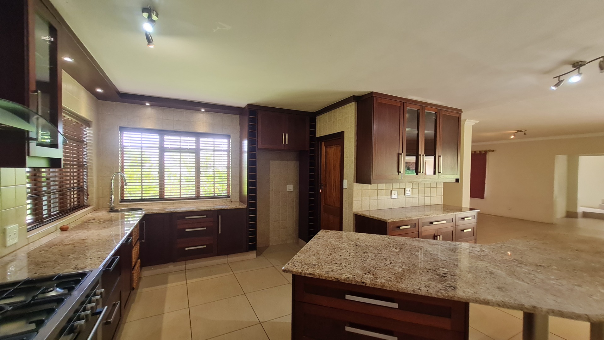 Stay connected with family and guests in the open-plan family and dining area, seamlessly integrated with a gourmet kitchen designed to inspire culinary excellence. Solid wood cabinetry and sleek granite countertops complement a premium stove with a gas hob and electric oven, as well as a spacious walk-in pantry. The generous scullery, complete with washing machine and dishwasher connections, offers ample storage and simplifies housekeeping.
