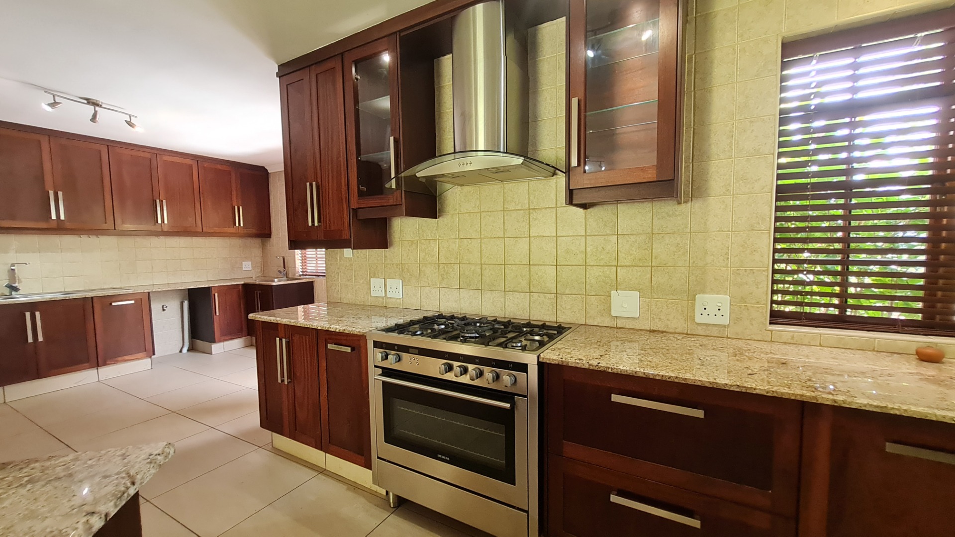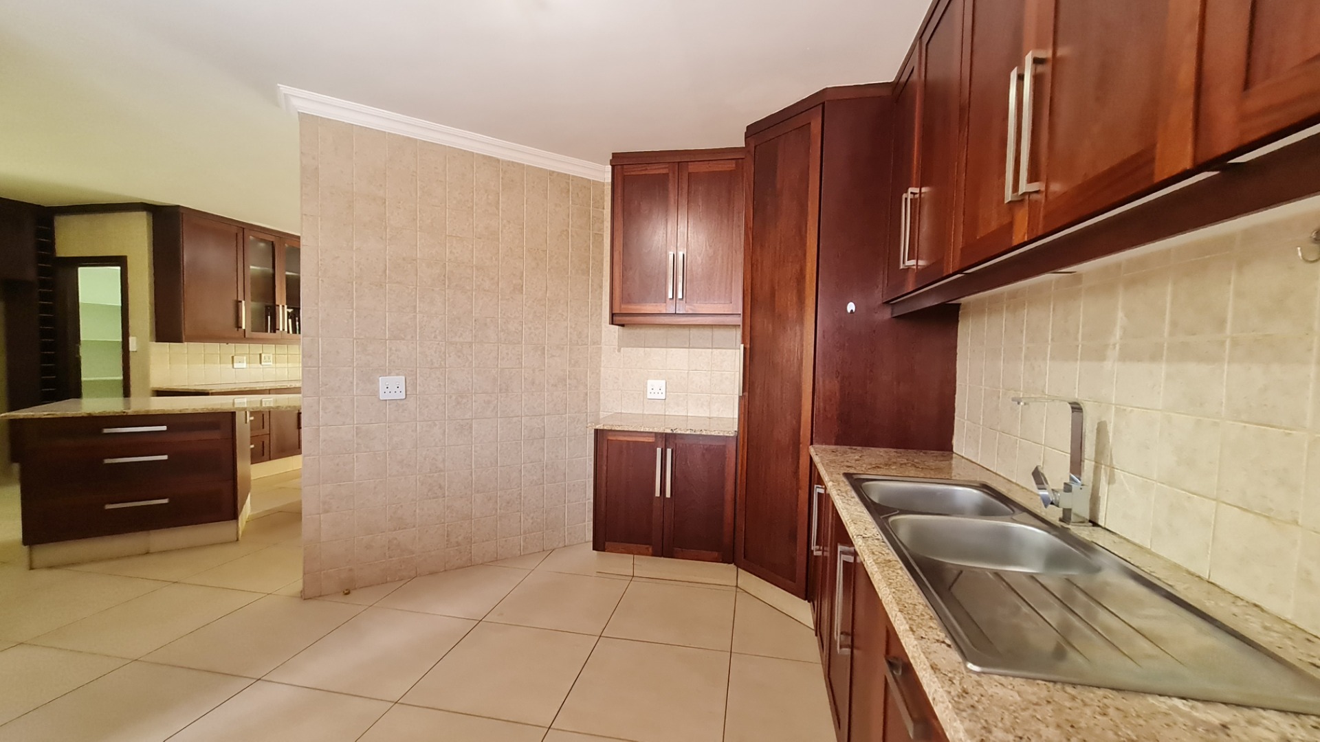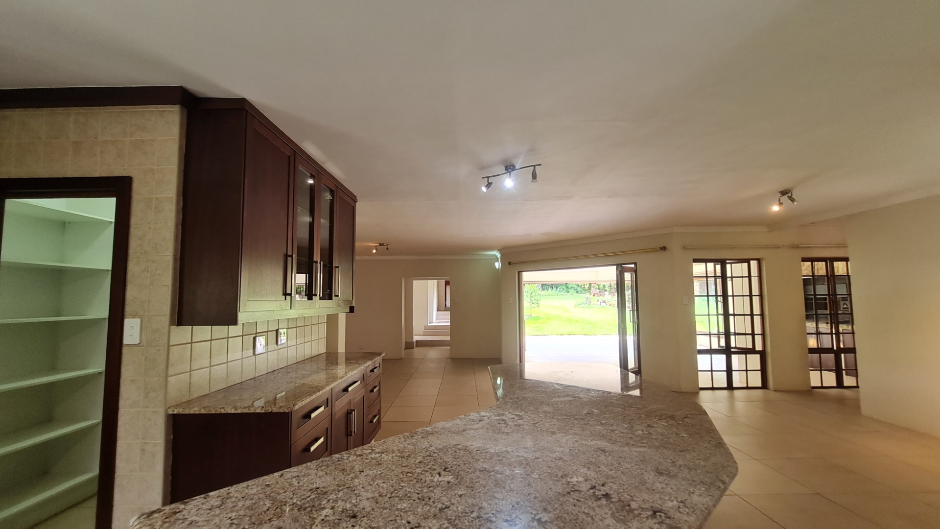 Stay connected with family and guests in the open-plan family and dining area, seamlessly integrated with a gourmet kitchen designed to inspire culinary excellence. Solid wood cabinetry and sleek granite countertops complement a premium stove with a gas hob and electric oven, as well as a spacious walk-in pantry. The generous scullery, complete with washing machine and dishwasher connections, offers ample storage and simplifies housekeeping.