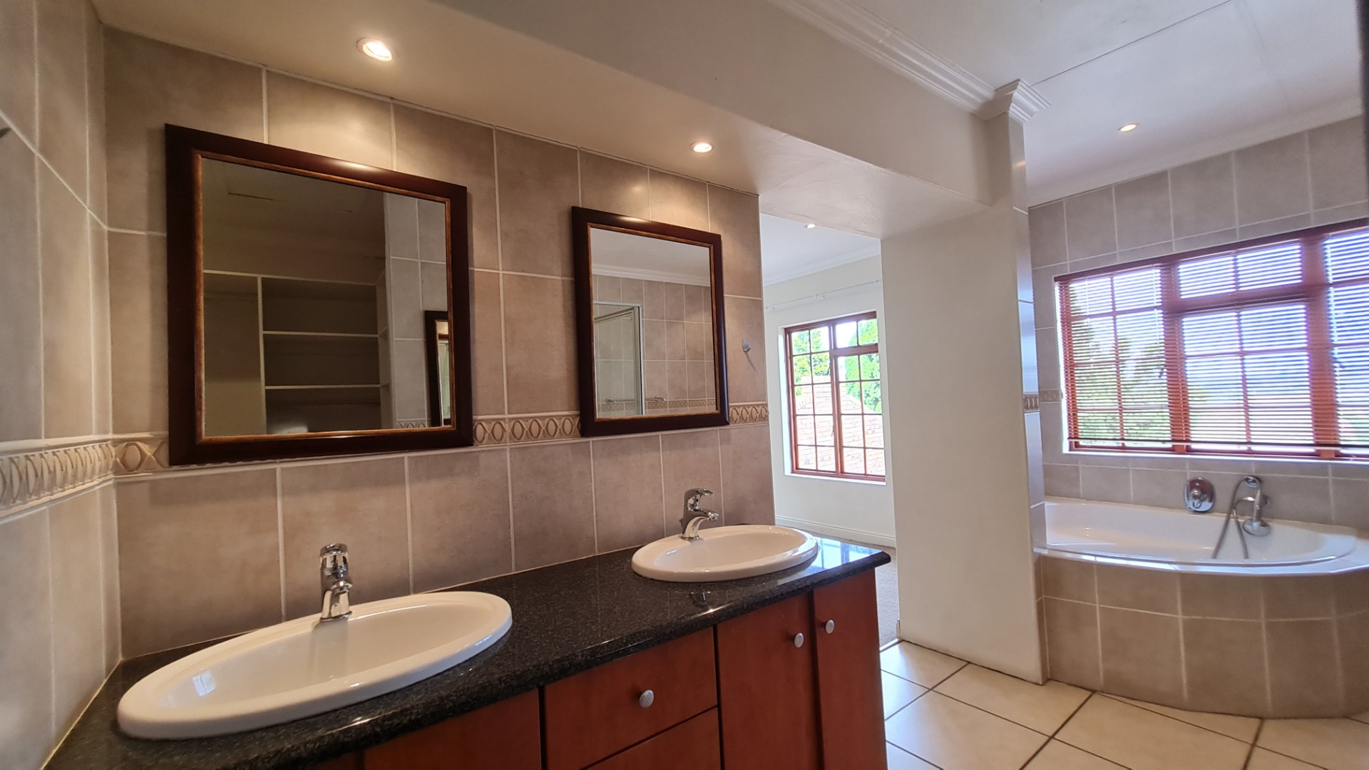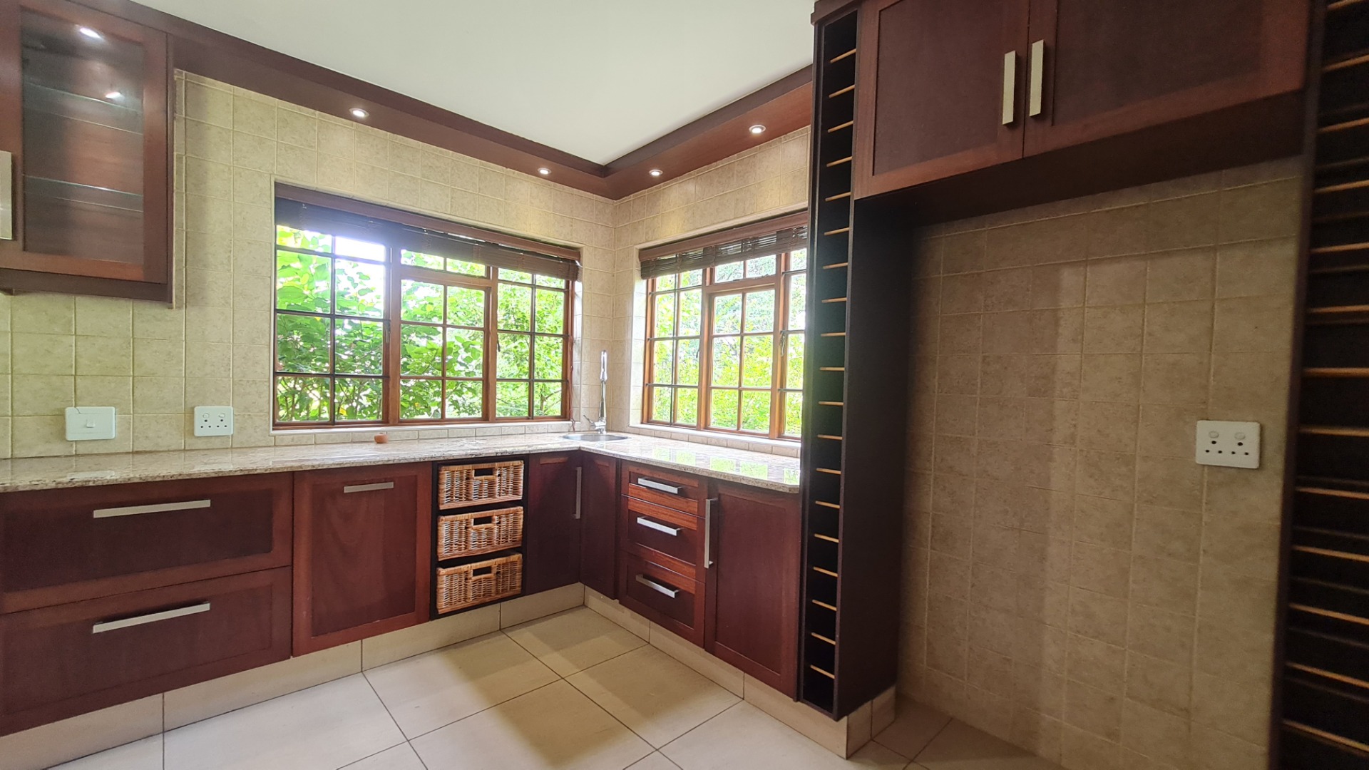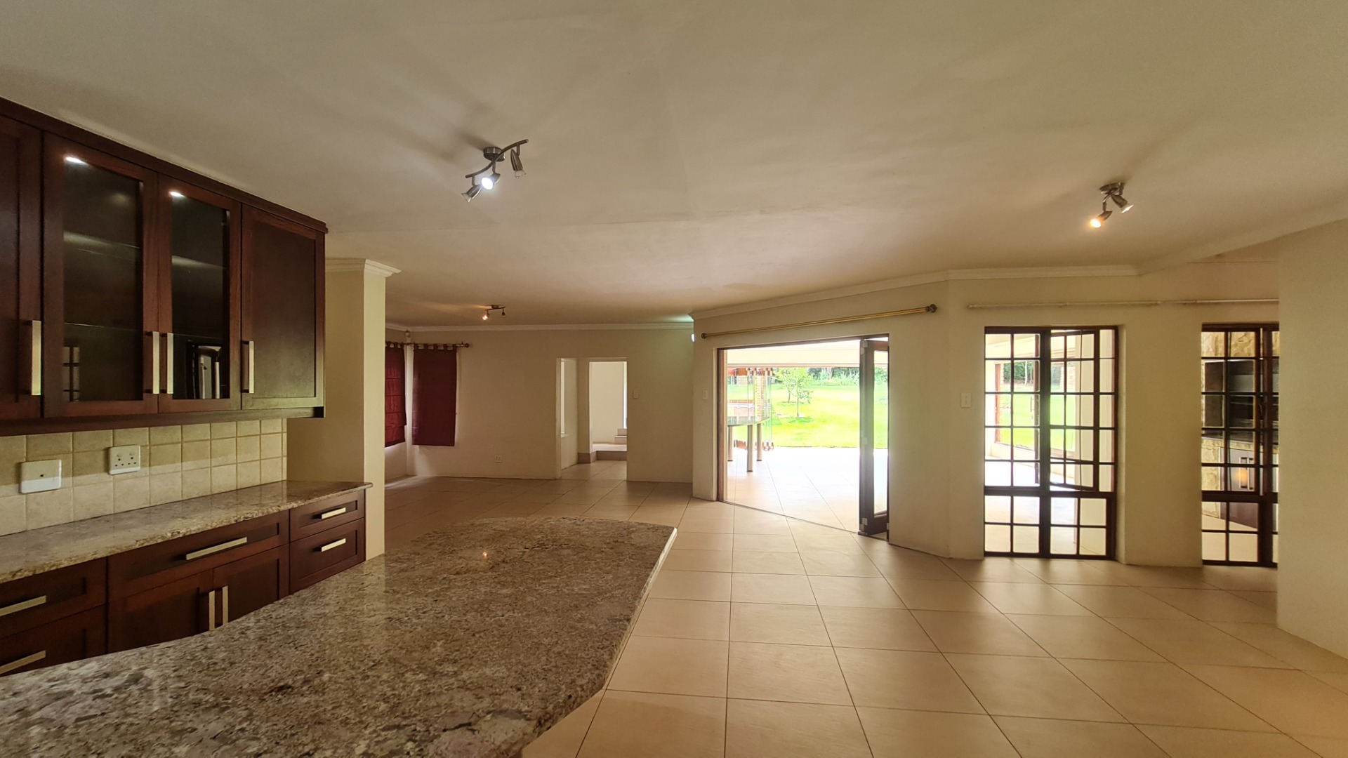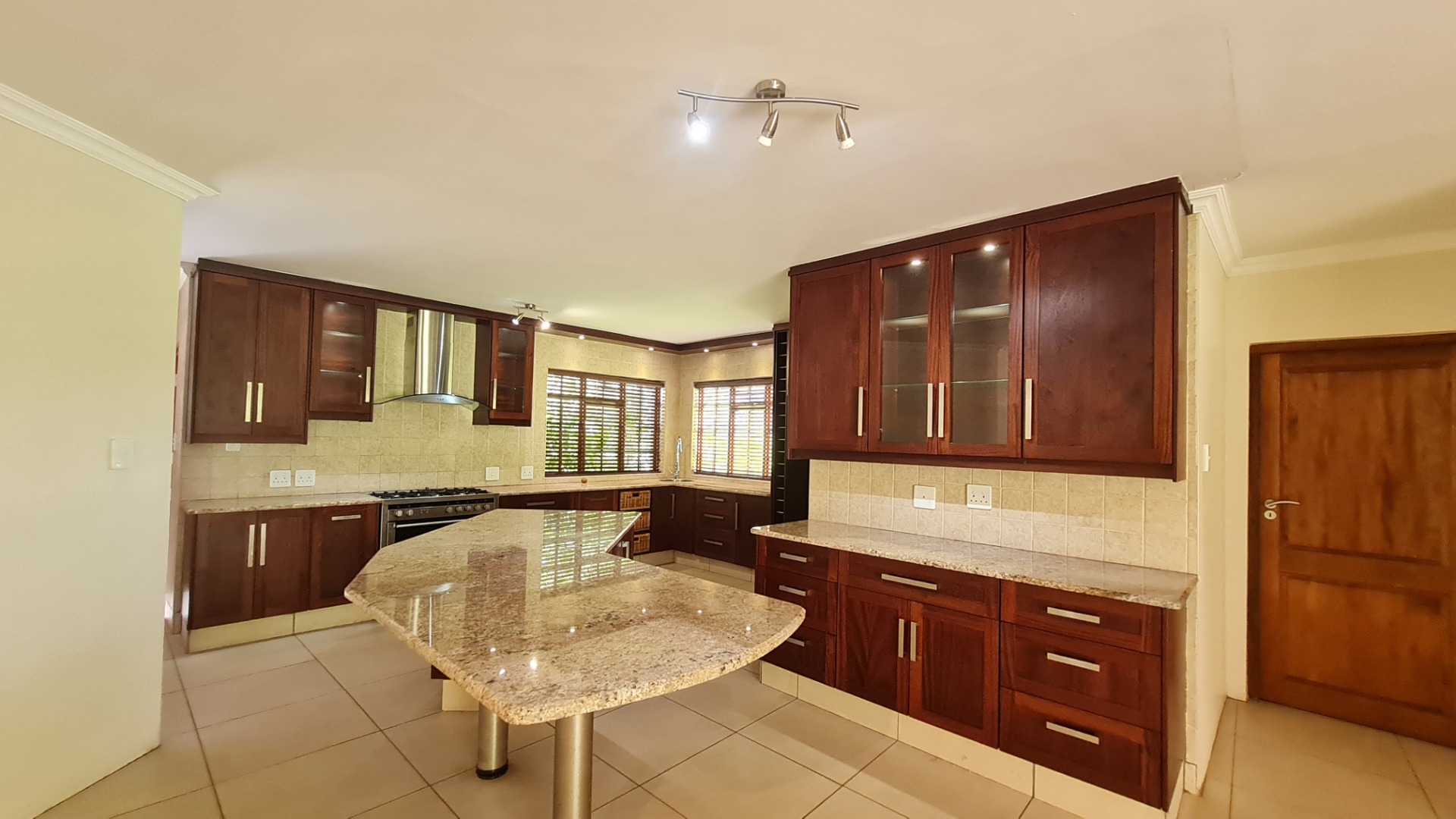 Stay connected with family and guests in the open-plan family and dining area, seamlessly integrated with a gourmet kitchen designed to inspire culinary excellence. Solid wood cabinetry and sleek granite countertops complement a premium stove with a gas hob and electric oven, as well as a spacious walk-in pantry. The generous scullery, complete with washing machine and dishwasher connections, offers ample storage and simplifies housekeeping.