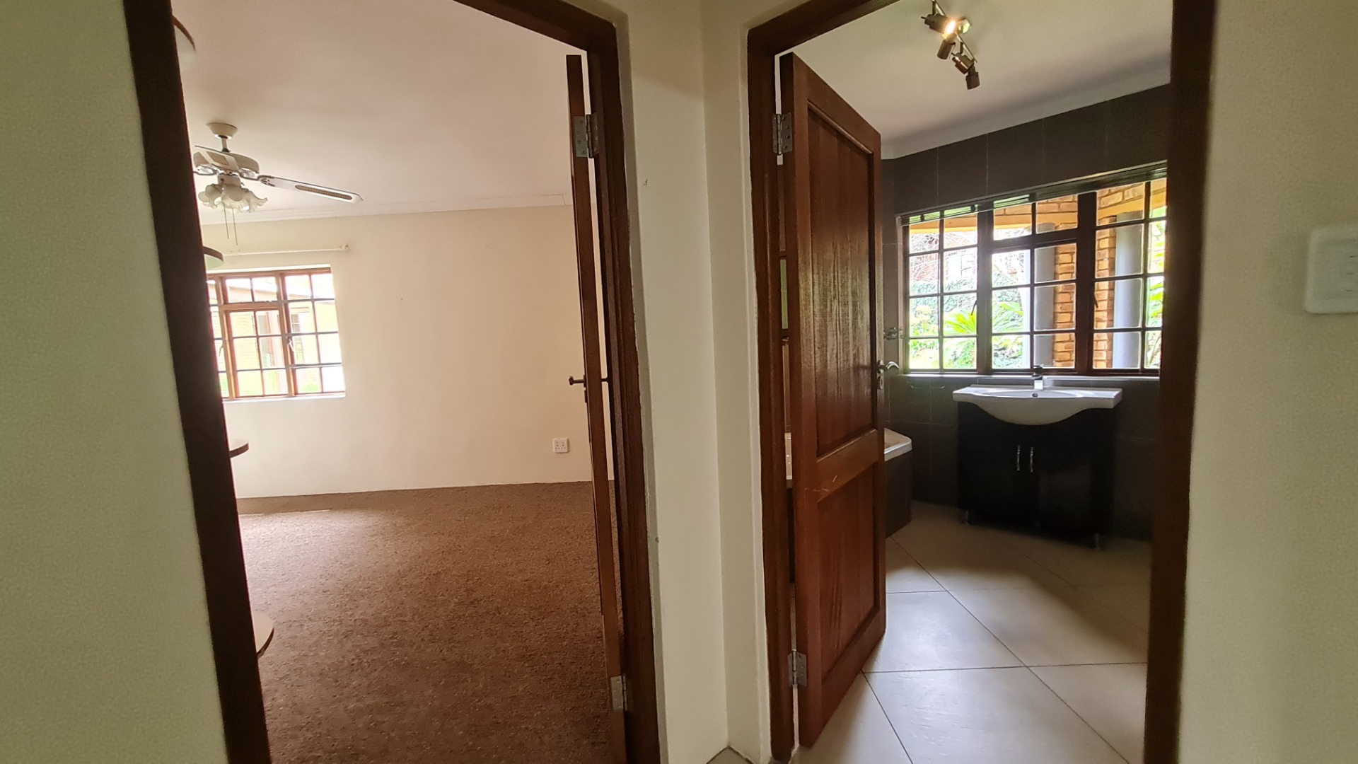 The remaining two bedrooms share another modern, full bathroom.