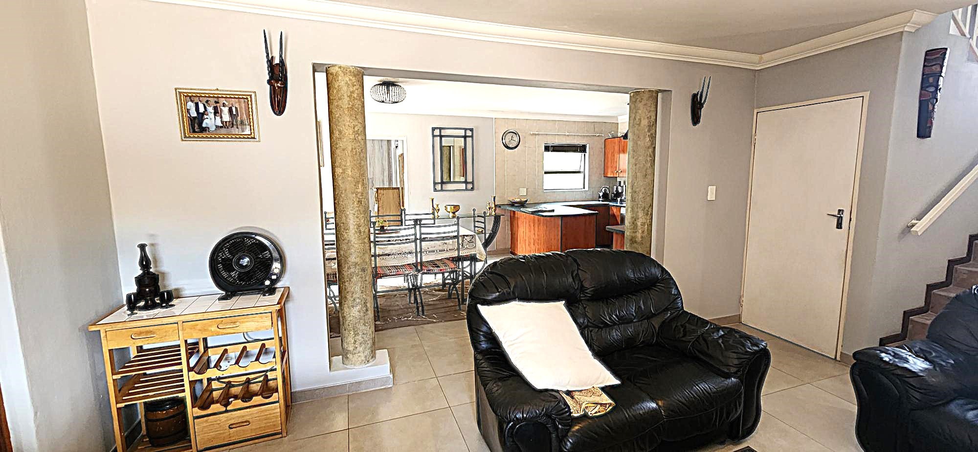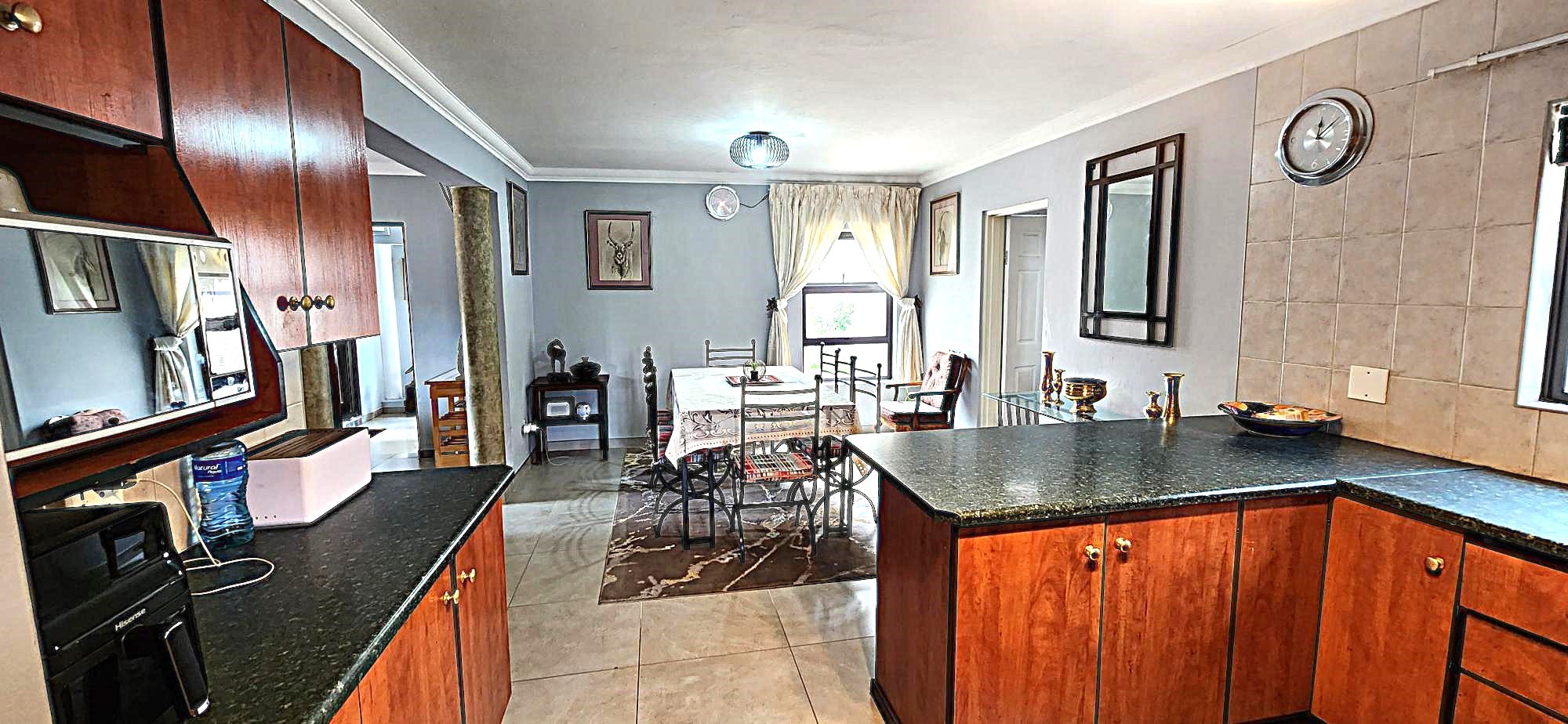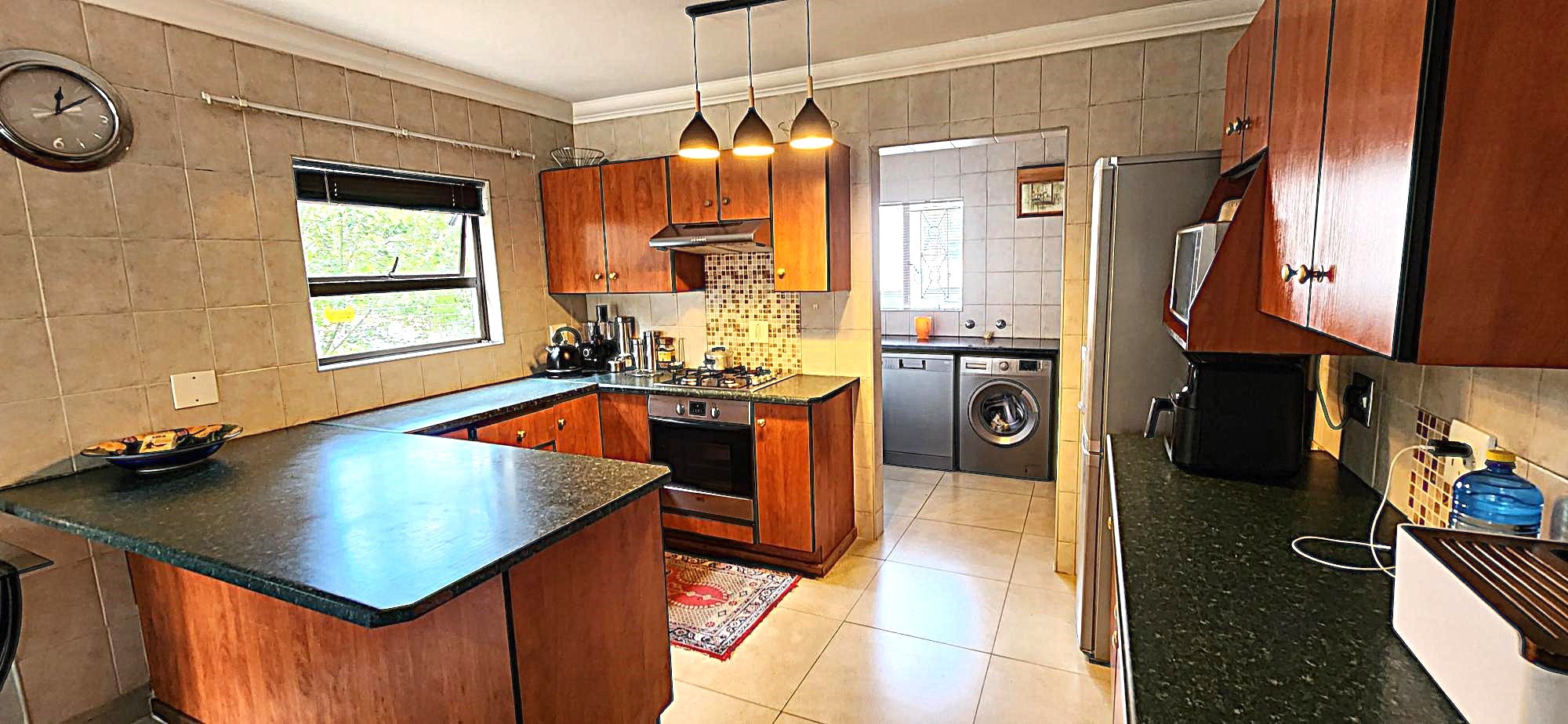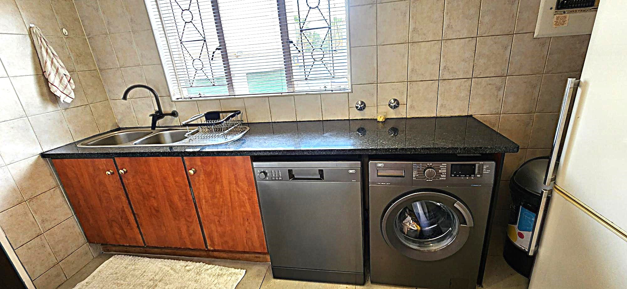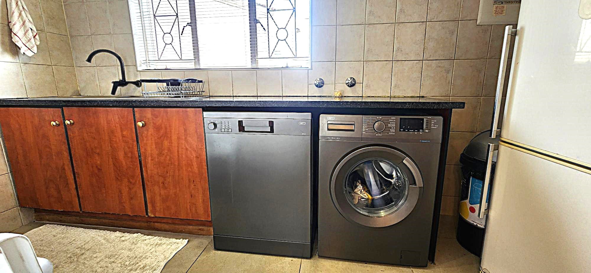 Security is a priority, with features such as burglar bars, a security gate, and spiked boundary walls, providing peace of mind. The home also embraces sustainability with a solar geyser and water tanks, contributing to reduced utility costs. Fibre connectivity is available, ensuring high-speed internet access for work and entertainment.