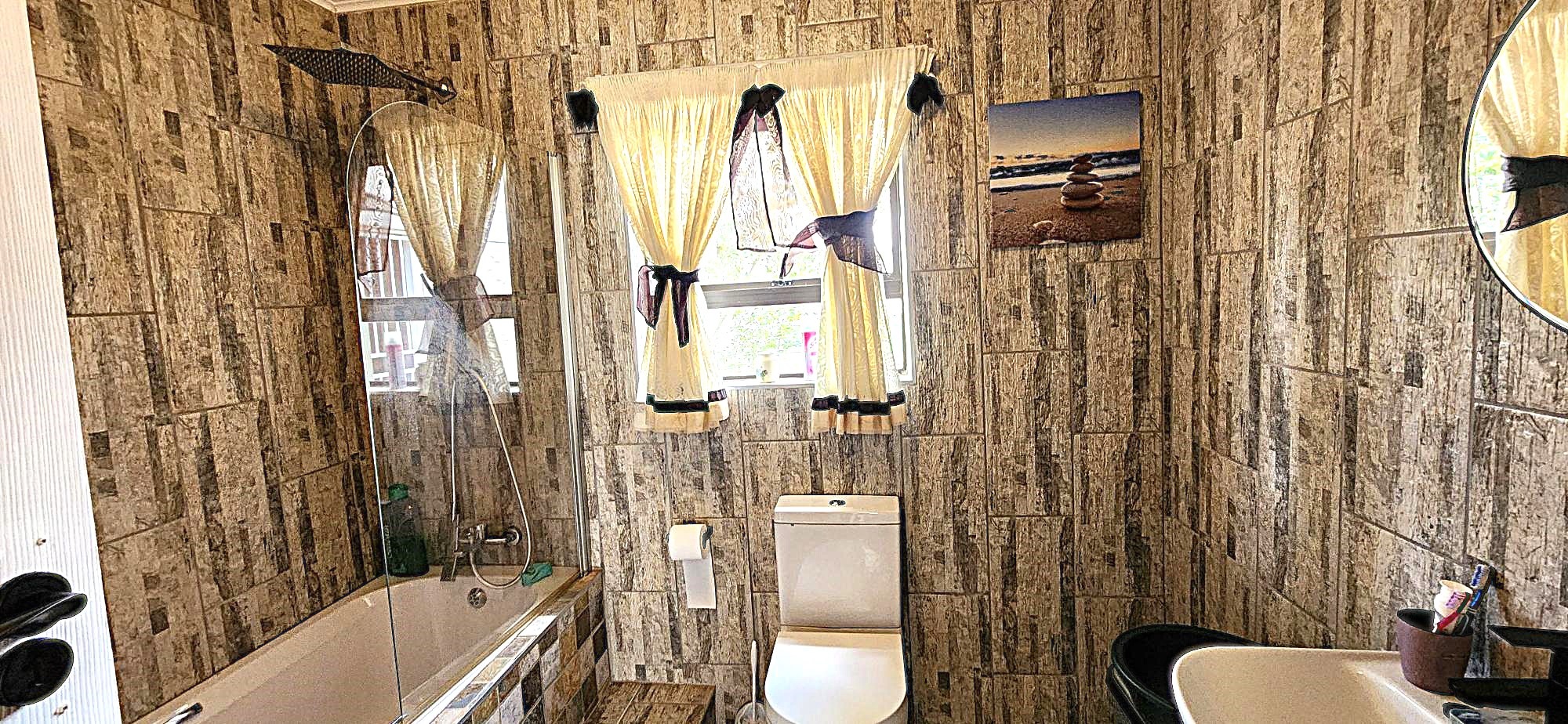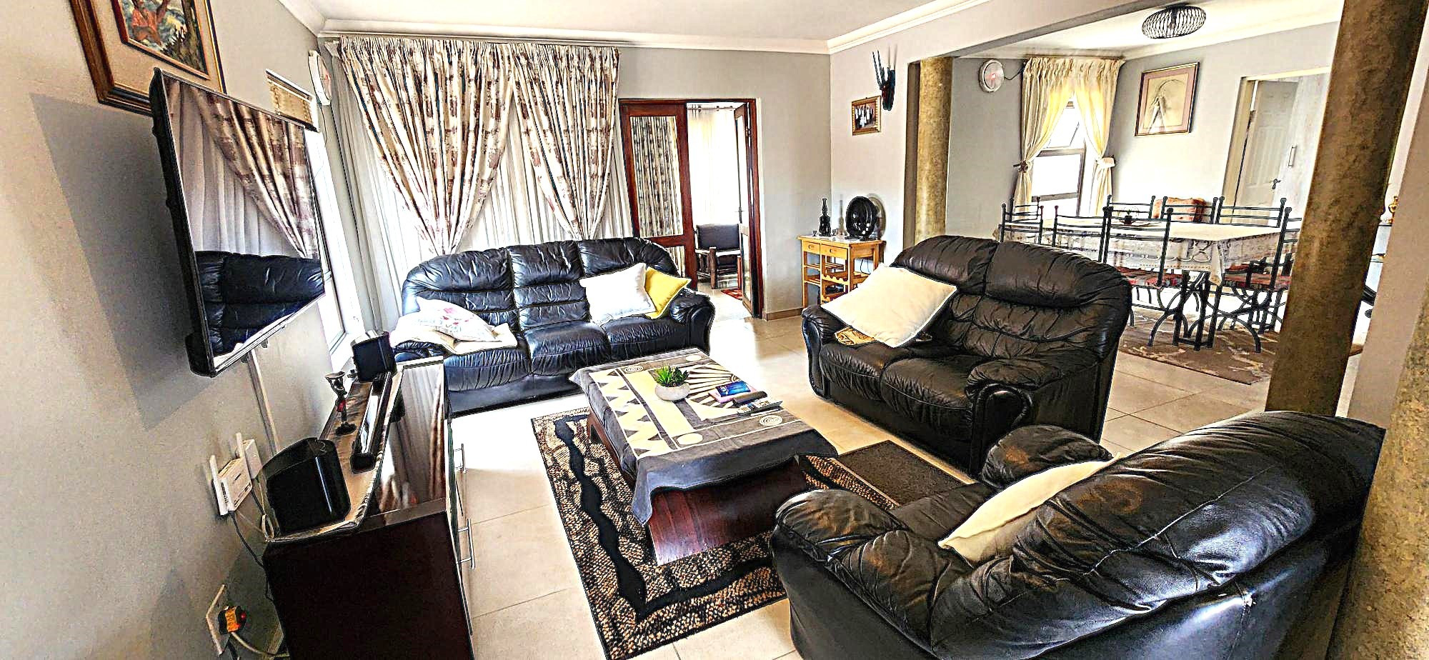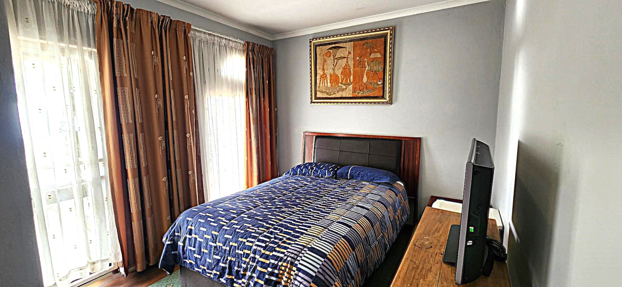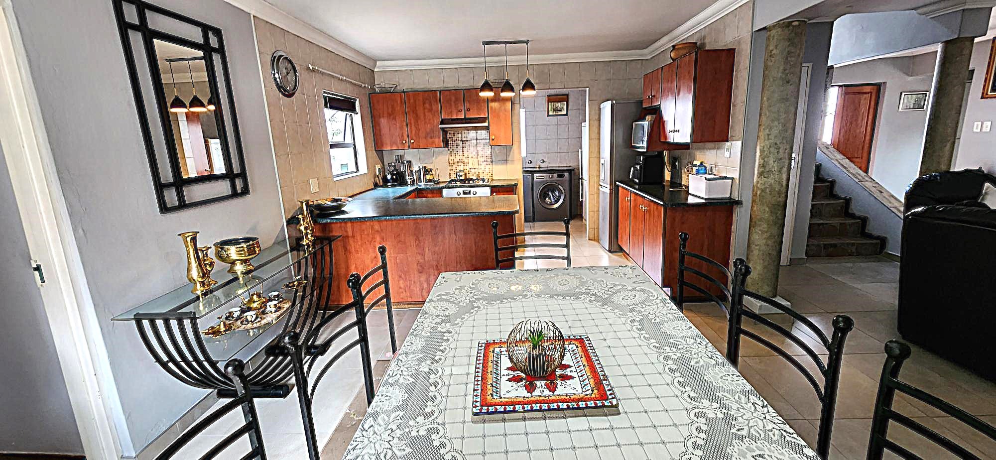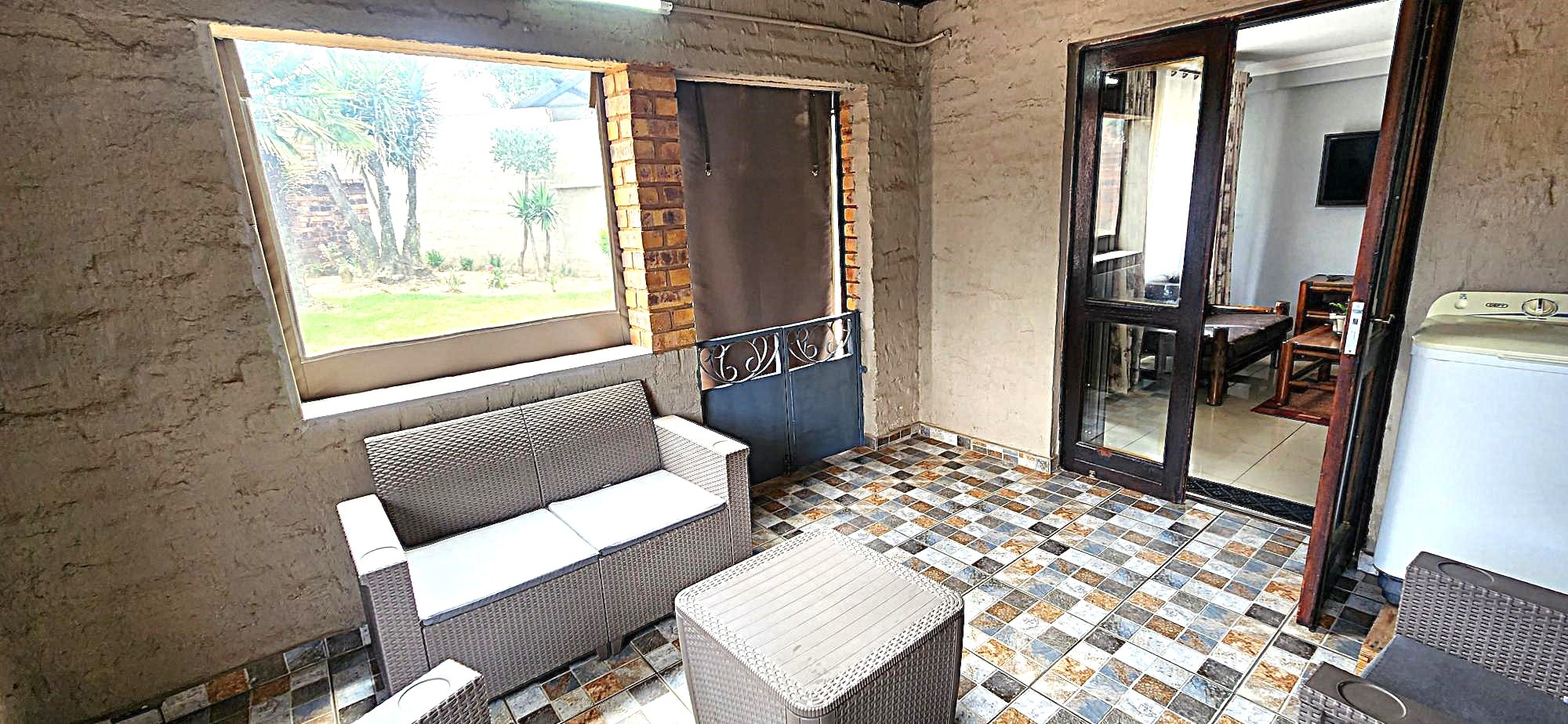 Security is a priority, with features such as burglar bars, a security gate, and spiked boundary walls, providing peace of mind. The home also embraces sustainability with a solar geyser and water tanks, contributing to reduced utility costs. Fibre connectivity is available, ensuring high-speed internet access for work and entertainment.