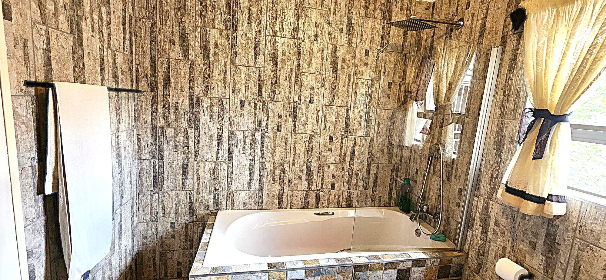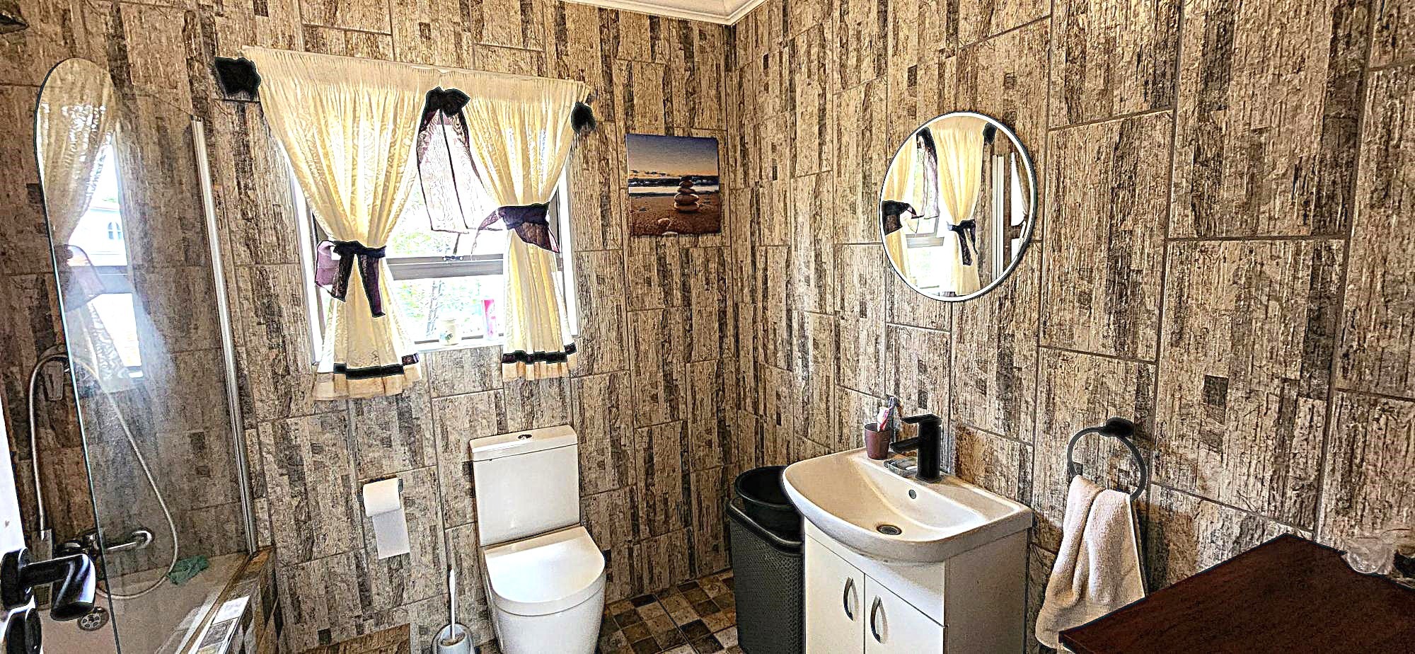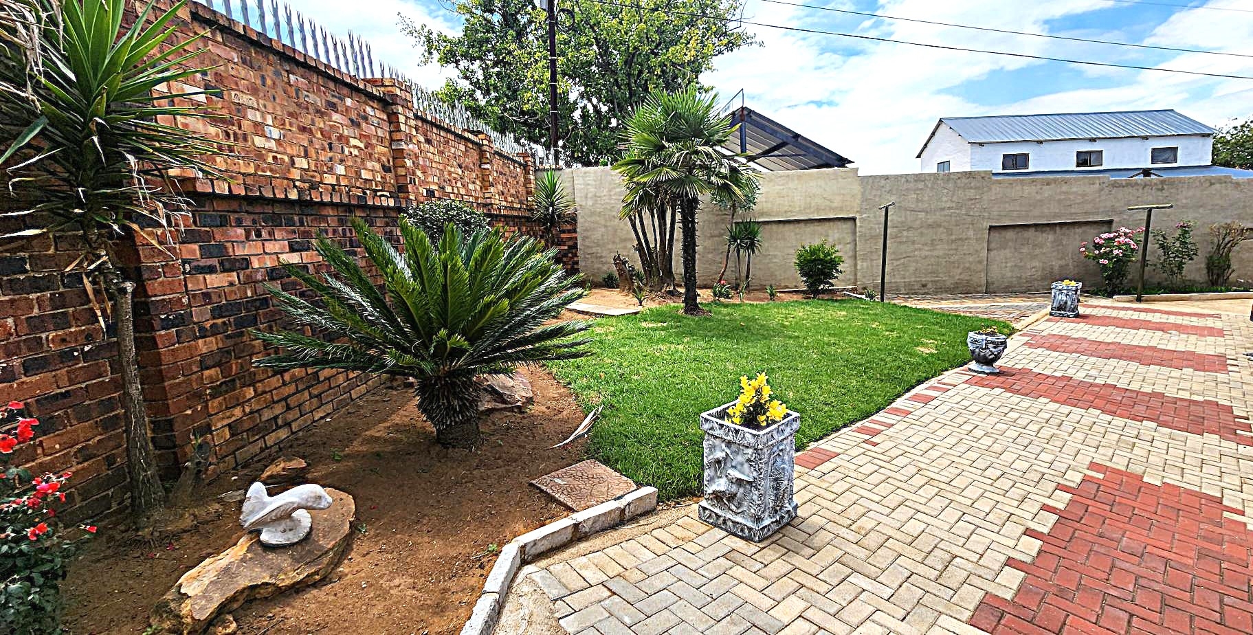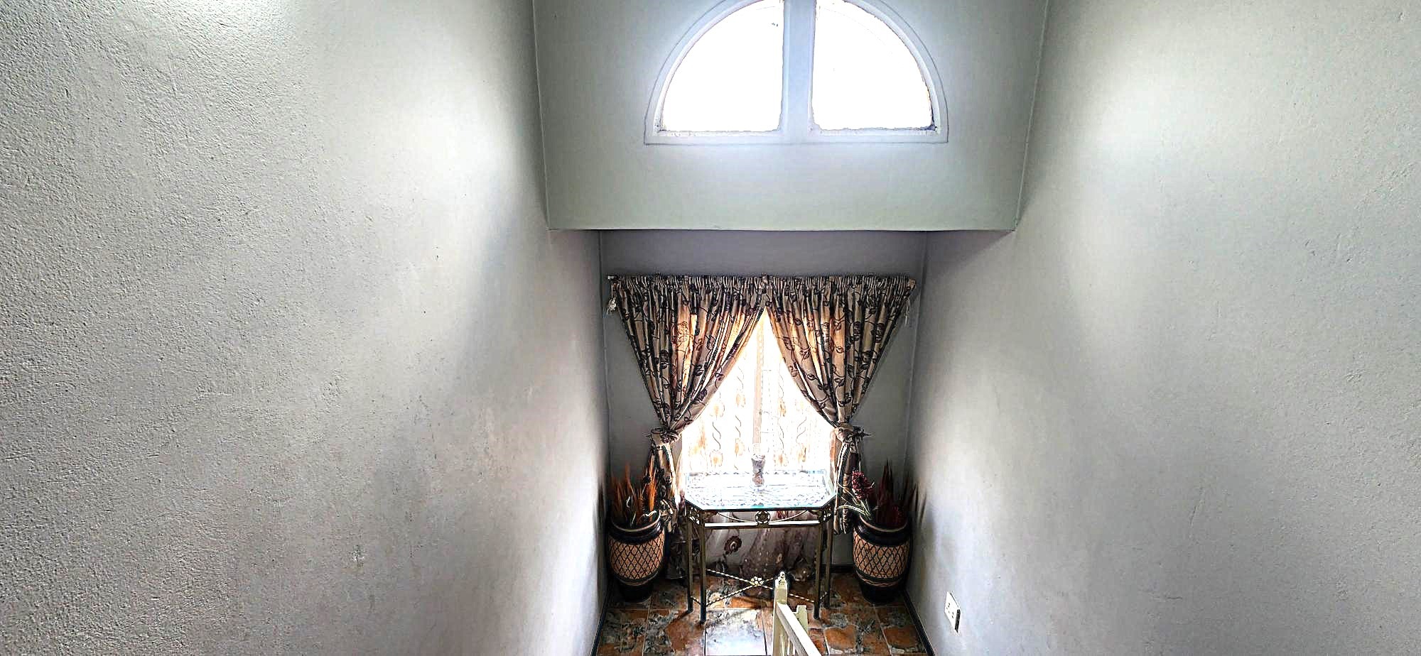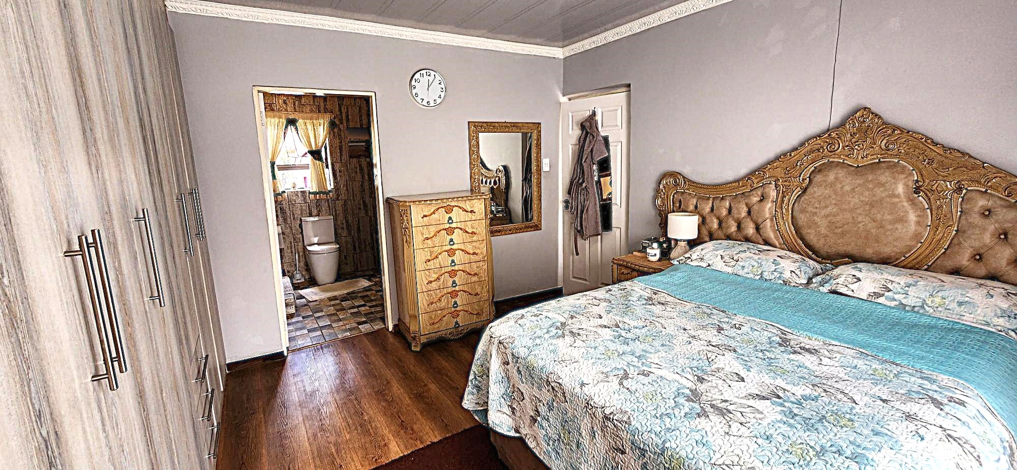 Security is a priority, with features such as burglar bars, a security gate, and spiked boundary walls, providing peace of mind. The home also embraces sustainability with a solar geyser and water tanks, contributing to reduced utility costs. Fibre connectivity is available, ensuring high-speed internet access for work and entertainment.